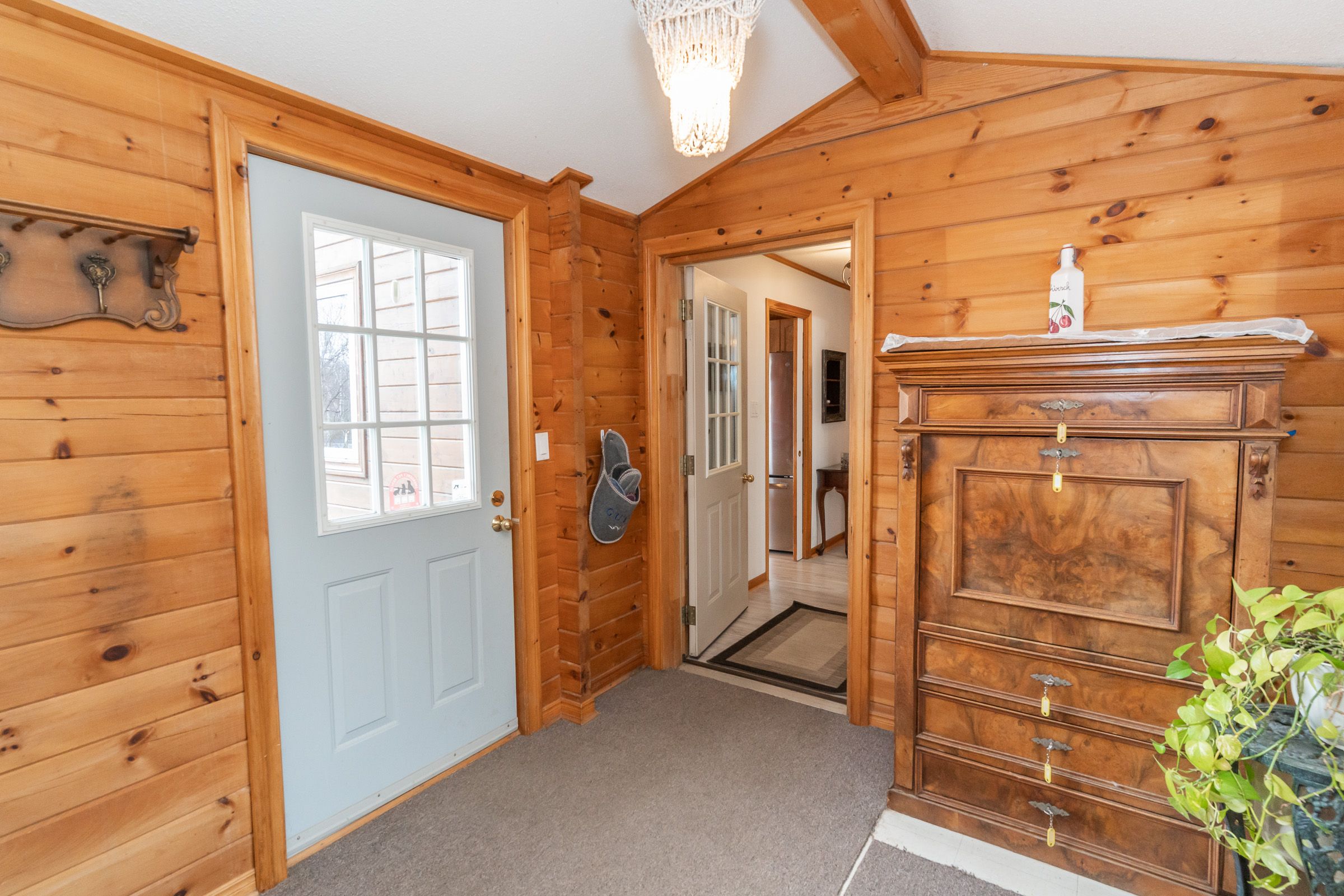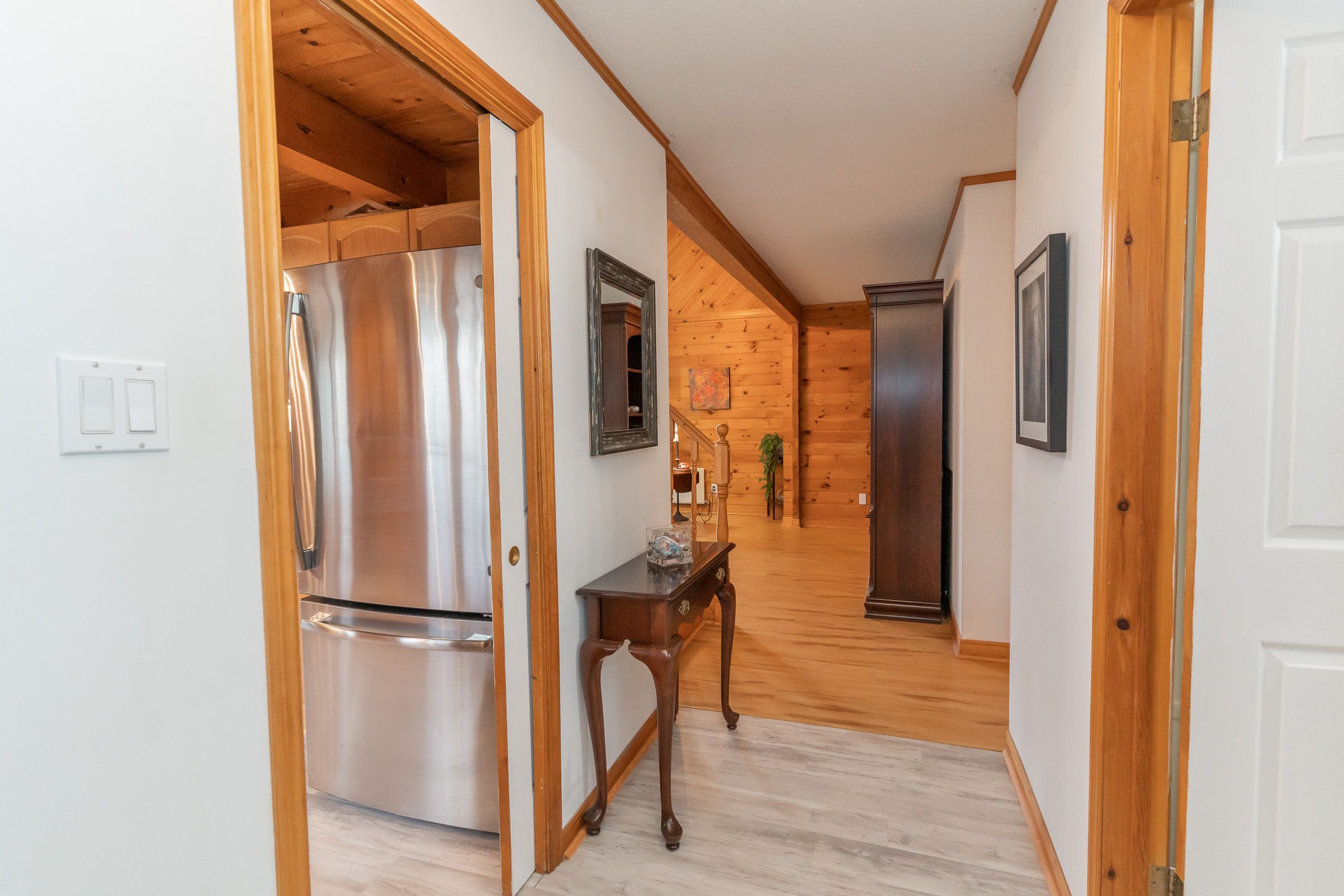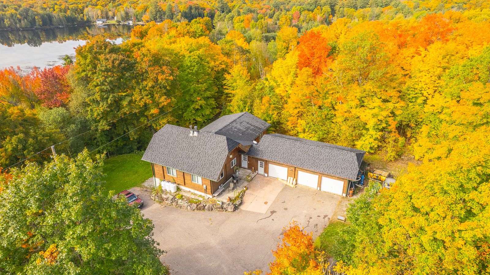 Waterfront home with income potential. This spacious 3-bedroom, 2-bathroom panabode home sits on 8. 2 acres along the shores of beautiful ahmic lake, featuring a 3-bay garage. The large eat-in kitchen offers ample counter with cupboard storage, perfect for family gatherings. The living room boasts a cathedral ceiling and walkout to a lakefront deck. A mezzanine level provides space for a home office or studio. The entry foyer provides abundant storage which connects the home to the garage. The lower level features two additional bedrooms, two bathrooms, a shared kitchenette, all accessible via a separate entrance ideal for extended family, guests, or as a bed and breakfast for additional income. Enjoy this stunning property as your new lakefront family home.