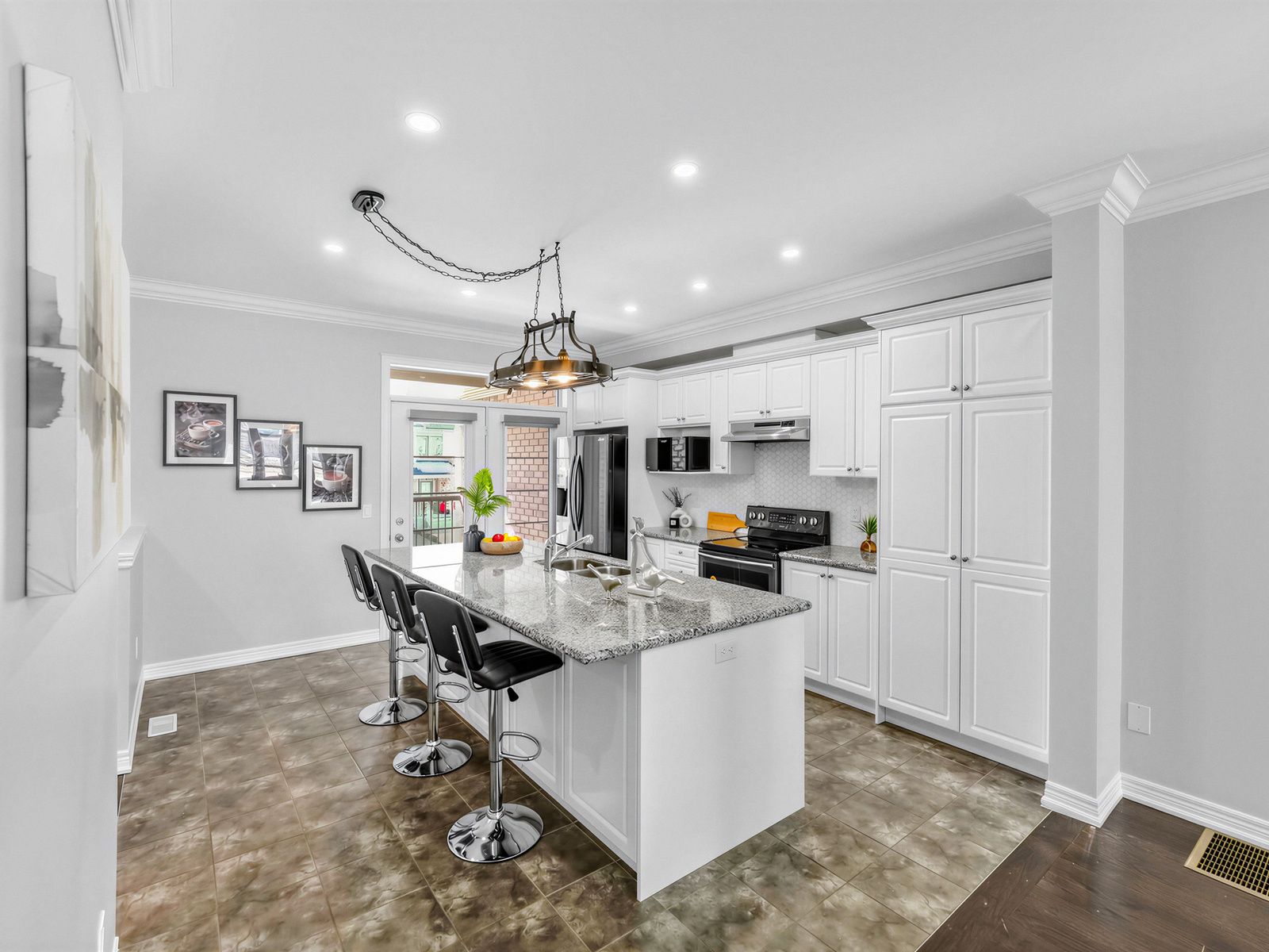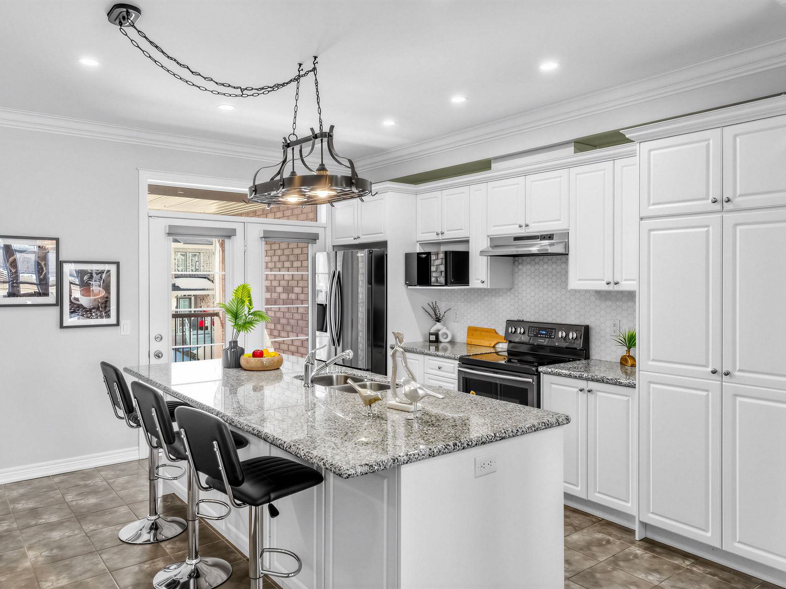 Welcome to this beautifully maintained 3+1 bedroom, 4-bathroom, 2-storey freehold townhome in the highly desirable woodland trails community of north oakville - a perfect opportunity for first-time buyers and growing families. Offering approximately 2,700 sq ft of bright and functional living space, this home features an inviting open-concept layout with peaceful greenspace views, creating a warm and welcoming atmosphere for everyday living and entertaining. The spacious upgraded kitchen is truly the heart of the home, offering abundant cabinetry, generous counter space, and a grand breakfast bar with storage on both sides - ideal for busy mornings, casual dining, or extra organization. A walk-out to the covered terrace extends your living space outdoors, perfect for summer gatherings and family time. Hardwood floors, a cozy gas fireplace, pot lights, and a solid wood staircase with wrought iron spindles add elegance and warmth throughout. The main level family room features very high ceilings and is above grade, filling the space with natural light and an open feel. This versatile area can serve as a fourth bedroom, home office, or private suite, and presents excellent income-generating potential - a valuable asset for first-time buyers looking to offset mortgage costs. With ample storage, an extra-deep and wide garage, and proximity to top-rated schools, parks, and trails, this move-in-ready home offers space to grow and the flexibility today's families need. A wonderful place to begin your homeownership journey