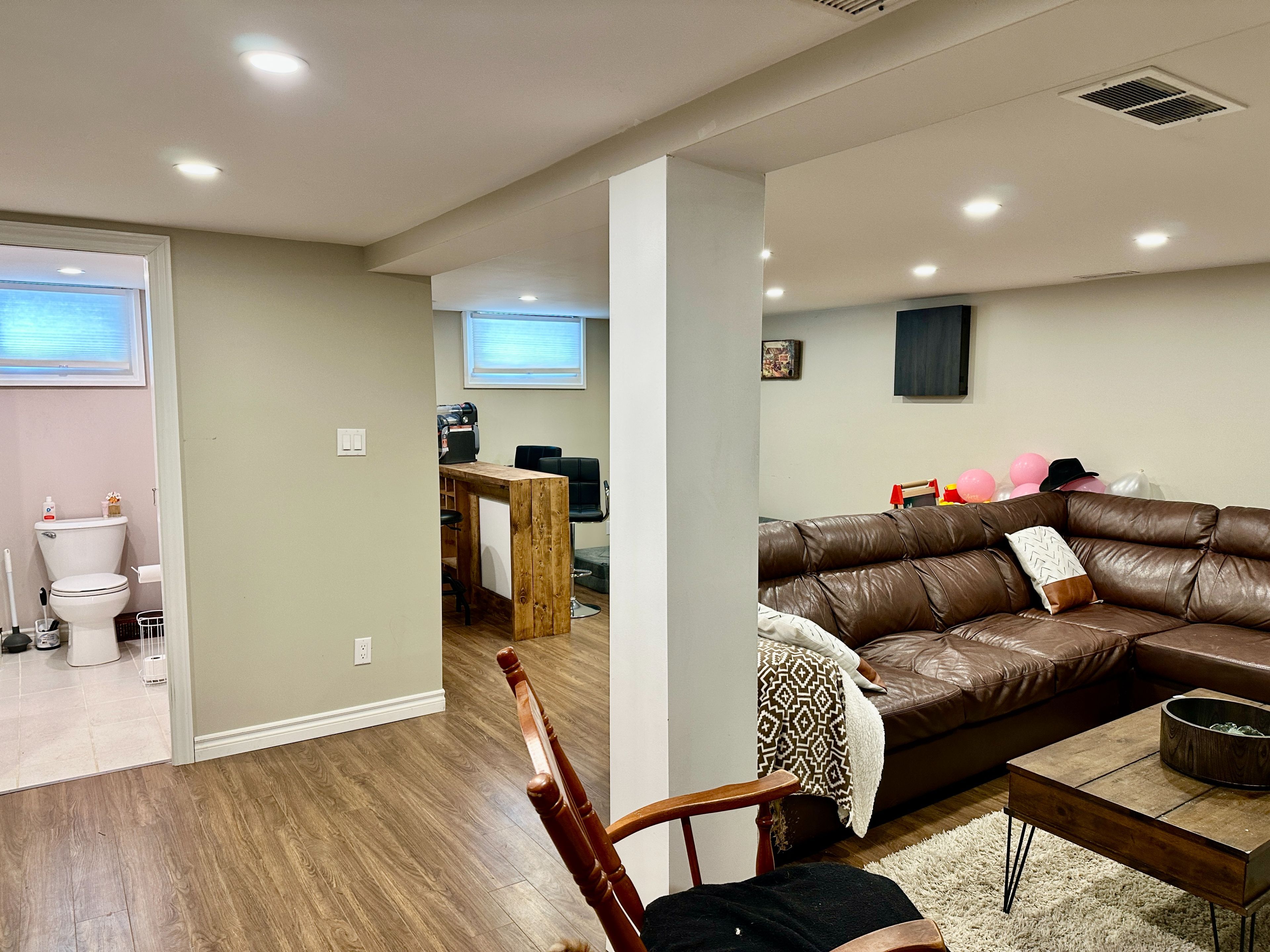 • Bright rec room with wet bar and additional bath.