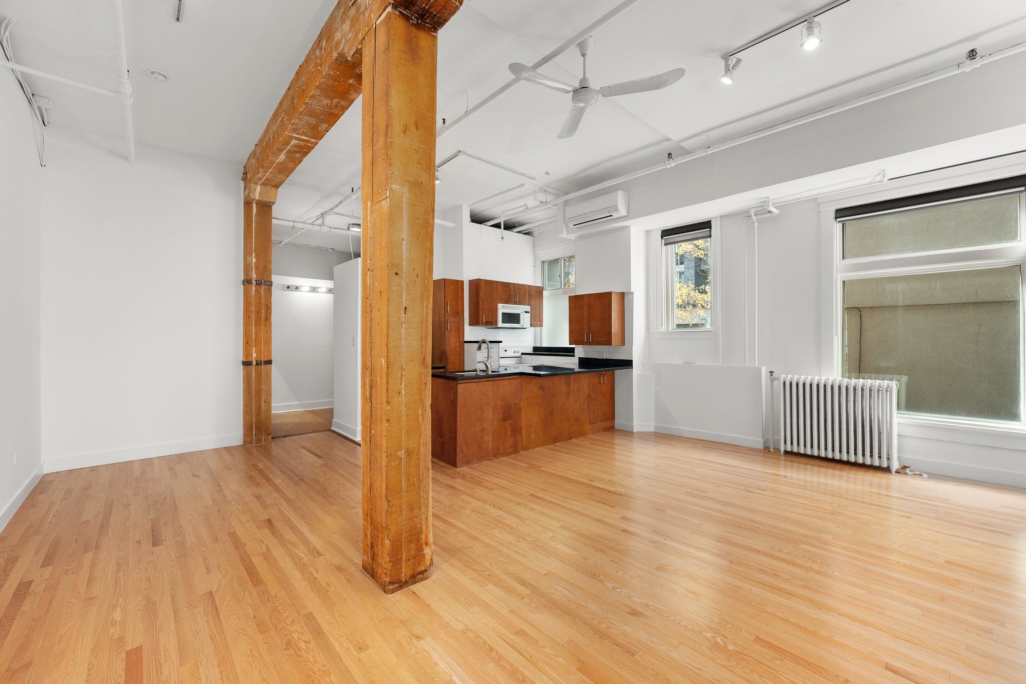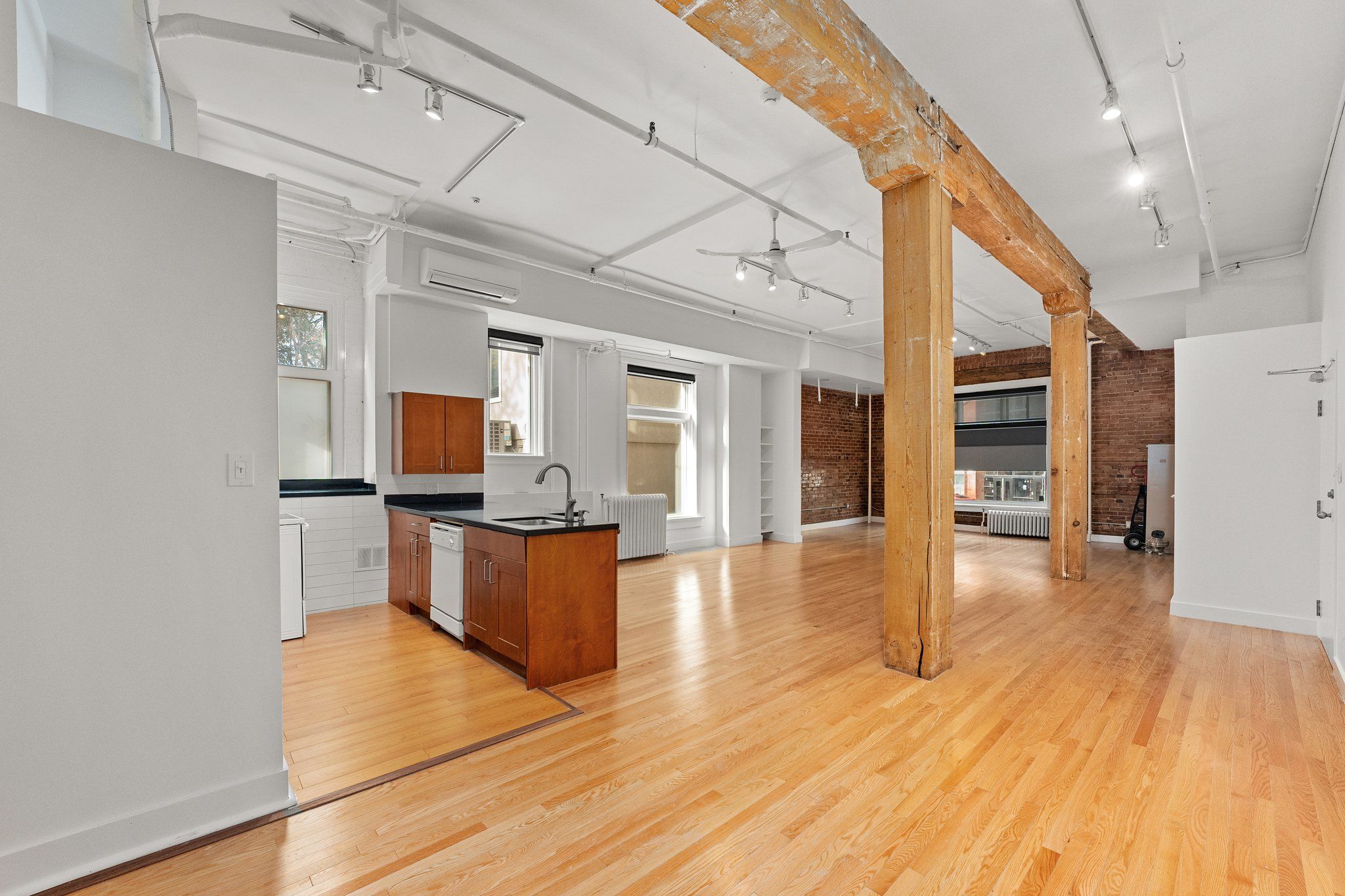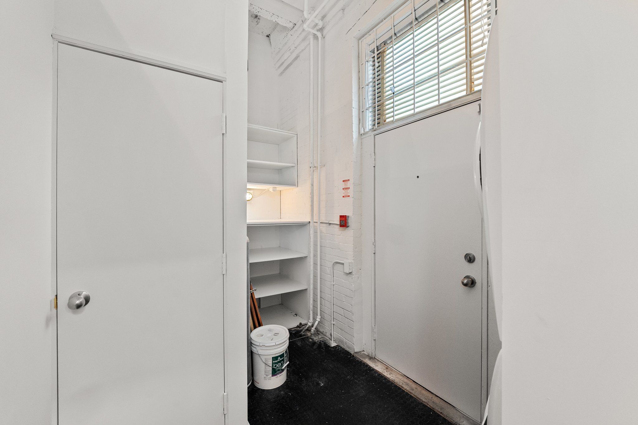 Welcome to this contemporary rare use space with an open-concept layout, boasting 12-foot ceilings and charming exposed brick walls. Sunlight floods the primary space through expansive windows, illuminating the entire area. The kitchenette features stylish wood cabinets, enhancing the aesthetic appeal. Hardwood floors throughout the unit, seamlessly connect the space. Versatility is key with a rear room, providing flexibility to suit your needs. Situated in close proximity to the downtown core, this property offers convenient access to transit and highways, ensuring you're well-connected to the pulse of the city. Embrace the modern charm and functionality of this unique space, perfect for an office or living space. Dual access with private side entrance!