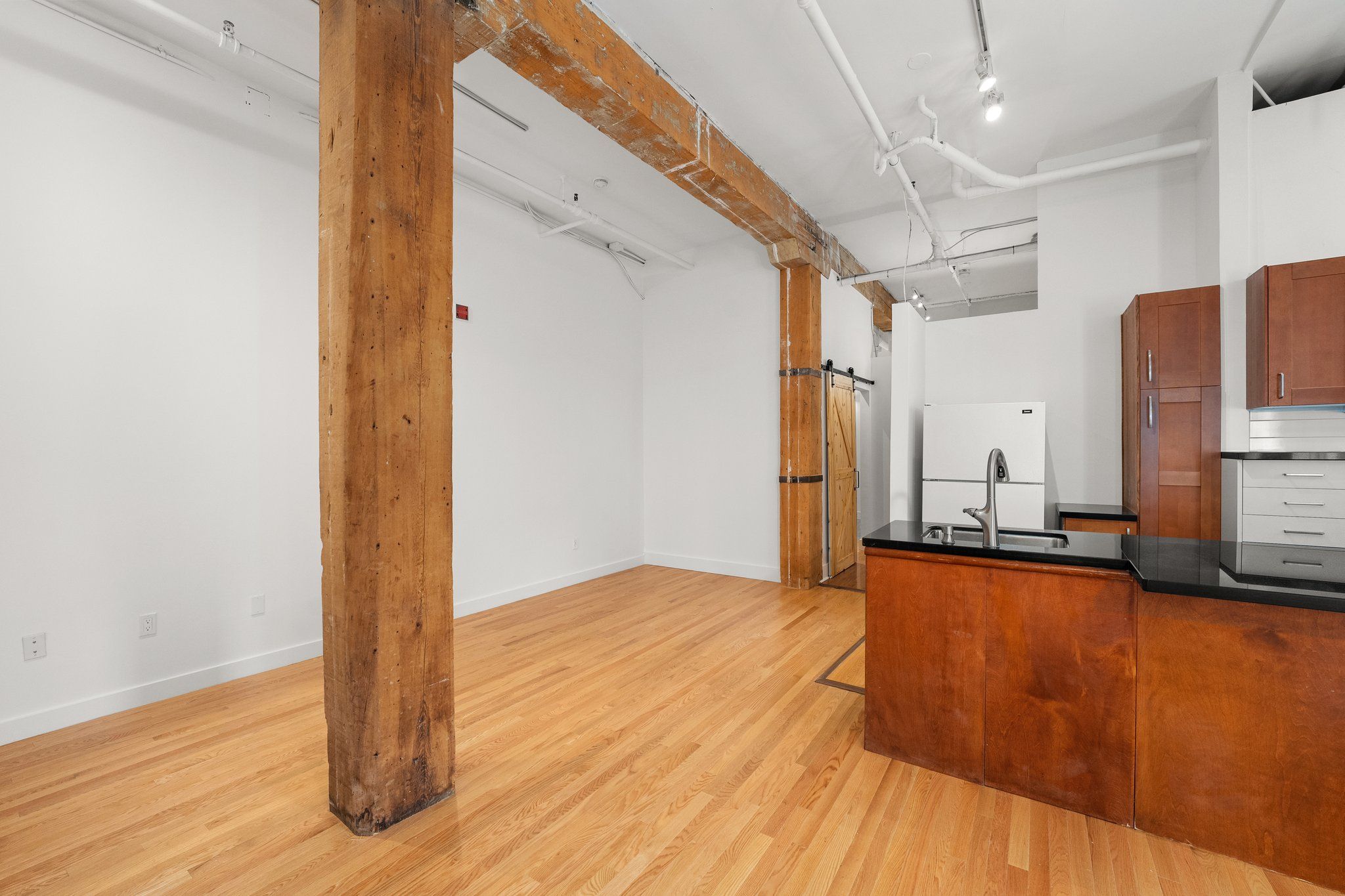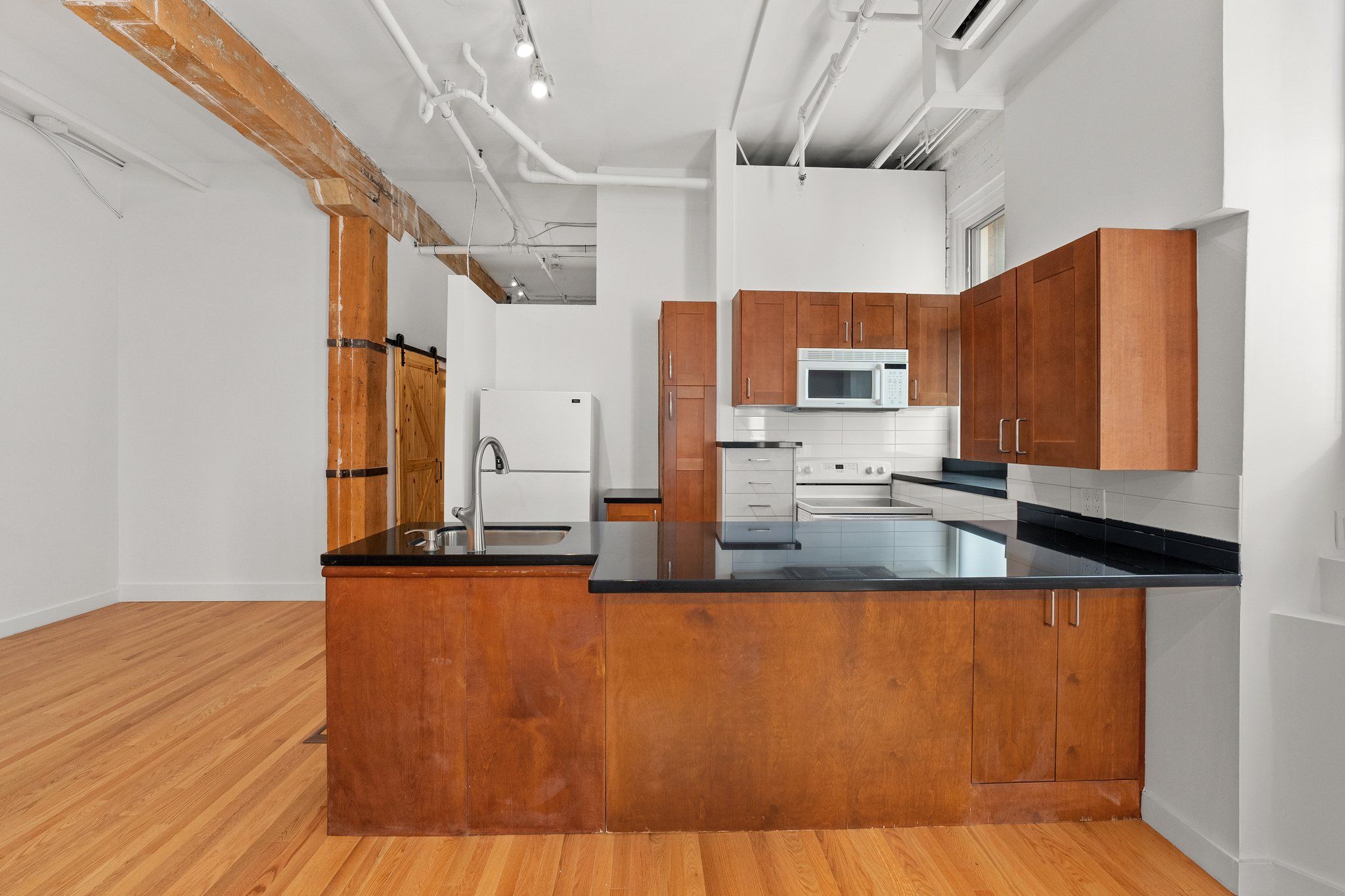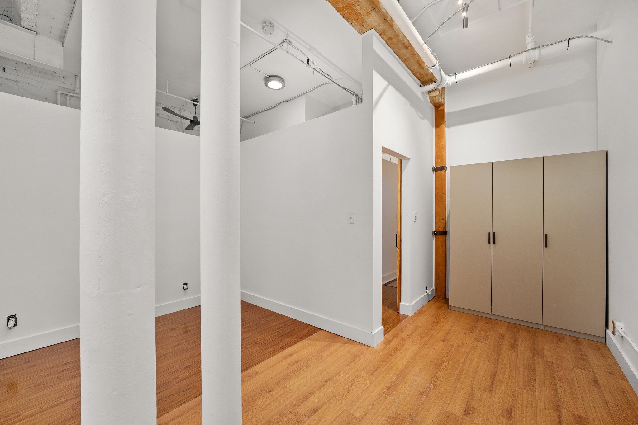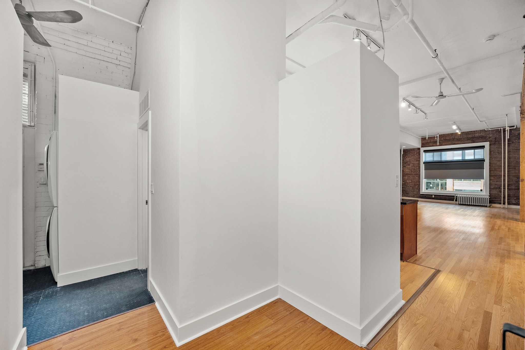 Welcome to this contemporary rare use space with an open-concept layout, boasting 12-foot ceilings and charming exposed brick walls. Sunlight floods the primary space through expansive windows, illuminating the entire area. The kitchenette features stylish wood cabinets, enhancing the aesthetic appeal. Hardwood floors throughout the unit, seamlessly connect the space. Versatility is key with a rear room, providing flexibility to suit your needs. Situated in close proximity to the downtown core, this property offers convenient access to transit and highways, ensuring you're well-connected to the pulse of the city. Embrace the modern charm and functionality of this unique space, perfect for an office or living space. Dual access with private side entrance!