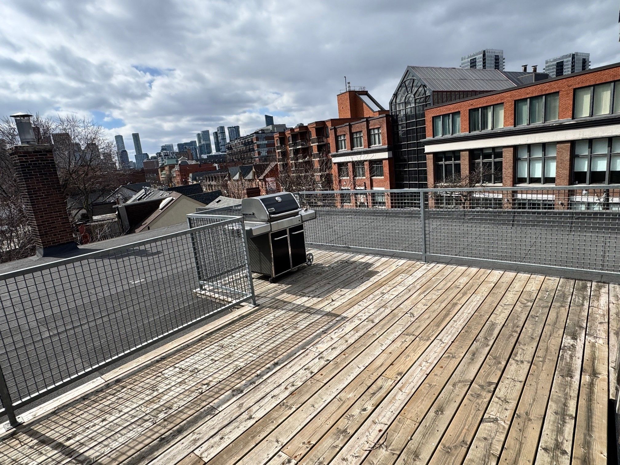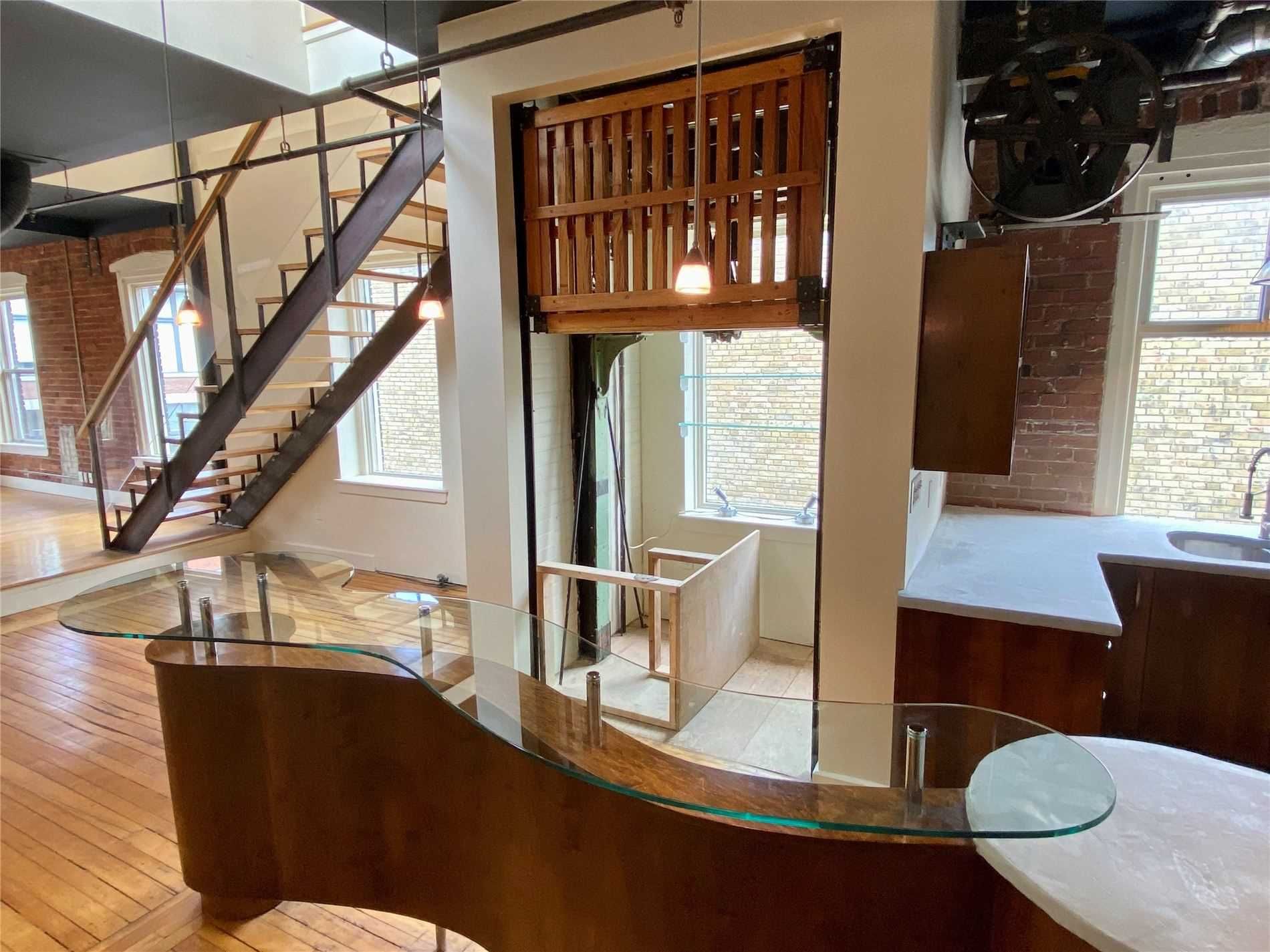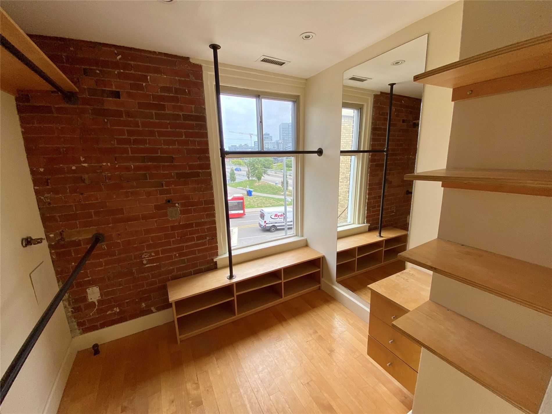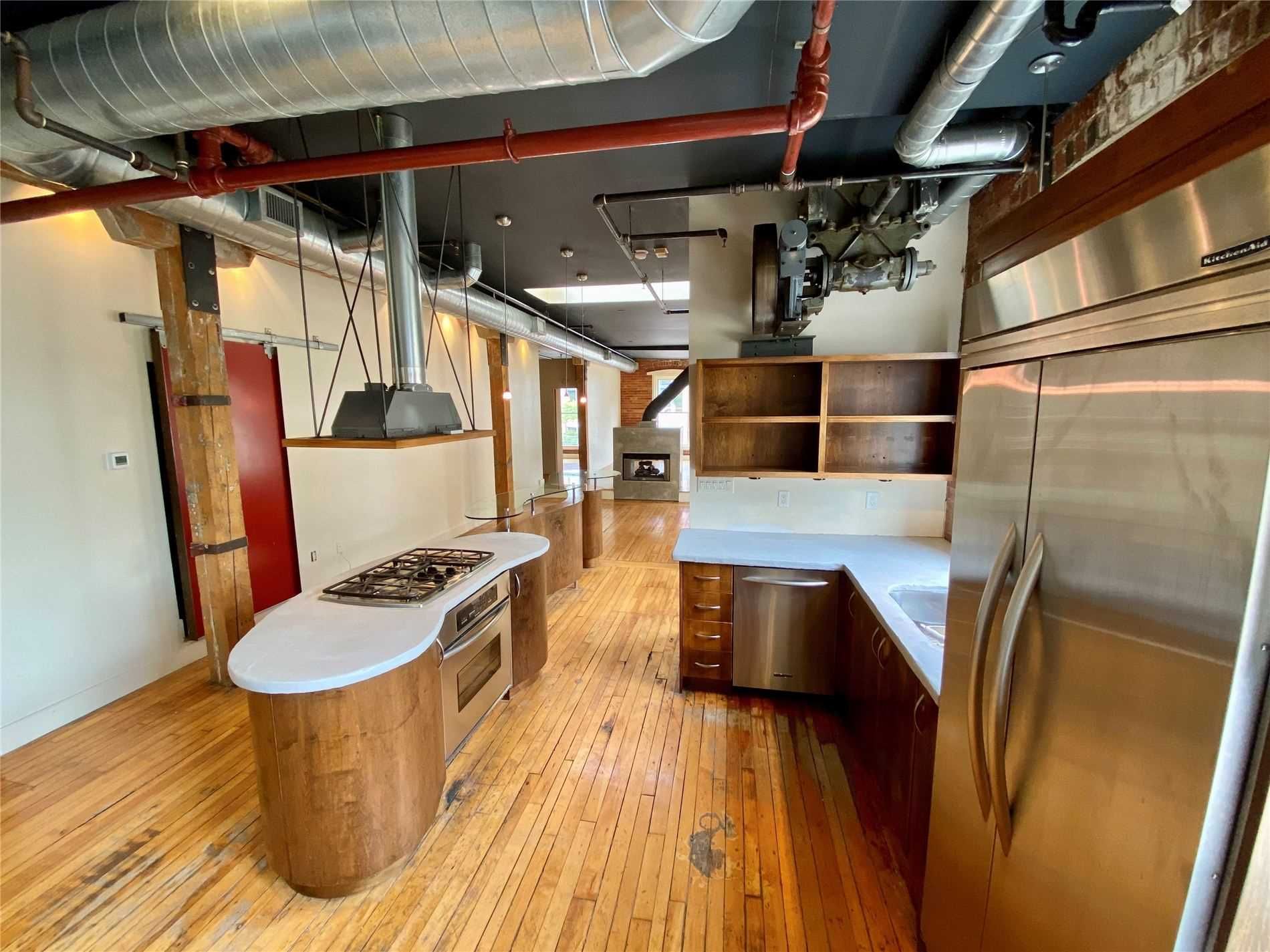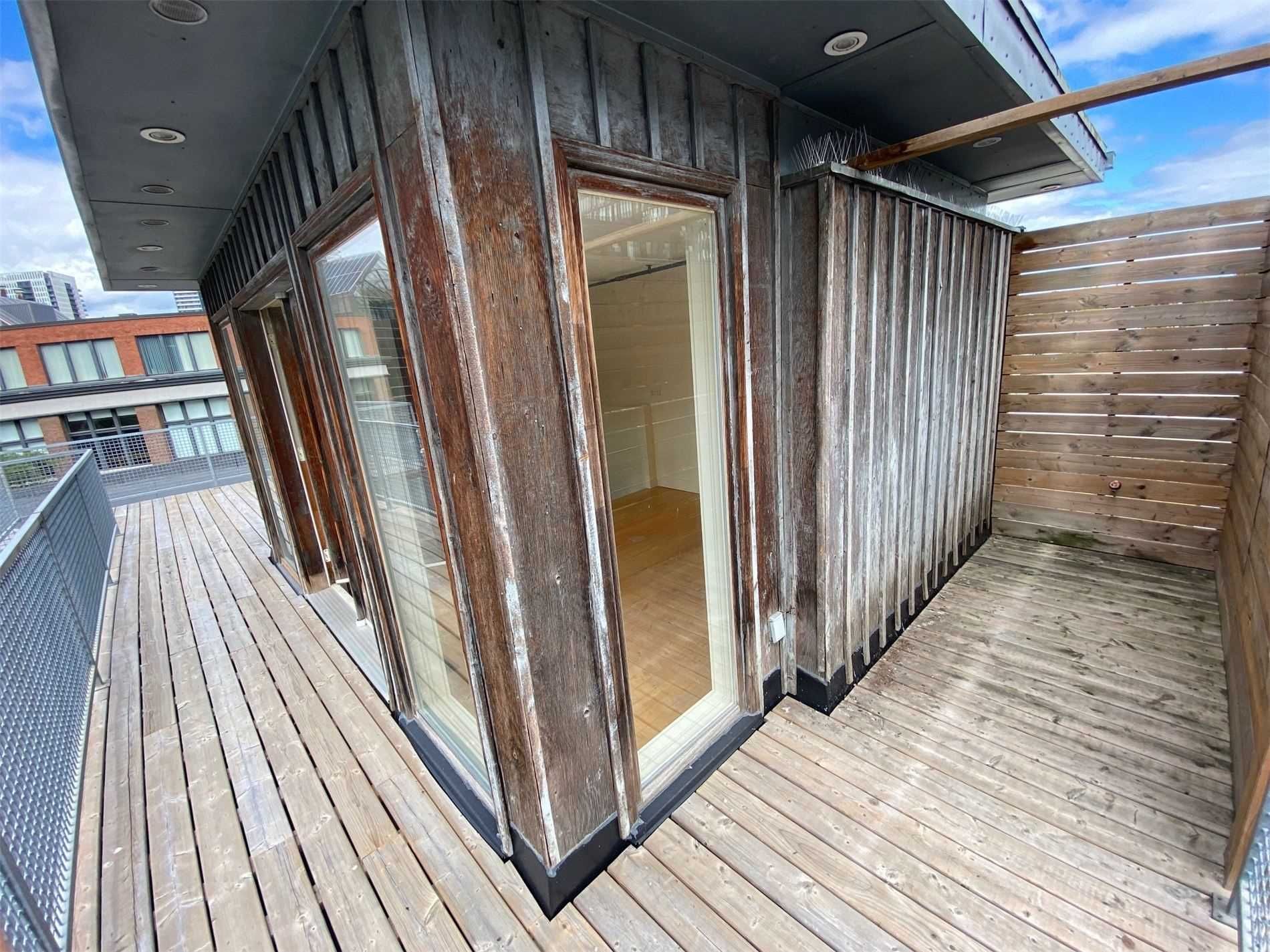 Authentic post-and-beam loft at coveted carhartt lofts! Zoned live/work, this rare offering features approximately 1,500 sq ft of dramatic open-concept space with soaring ceilings, exposed brick, and rich hardwood floors throughout. A stunning corner unit, flooded with natural light through oversized industrial windows, showcases true hard-loft character. The private primary bedroom enjoys a direct walk-out to an expansive ~400 sq ft terrace-an exceptional outdoor retreat perfect for entertaining or quiet city evenings. A unique blend of history, scale, and style, this is true loft living in one of toronto's most iconic boutique buildings. Absolutely one of a kind.