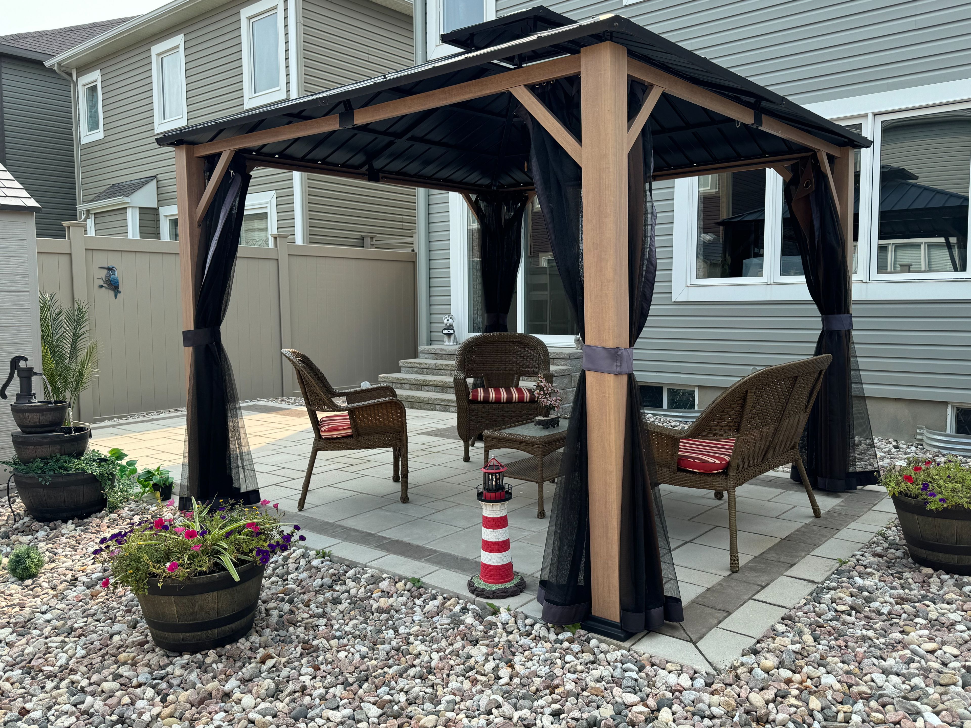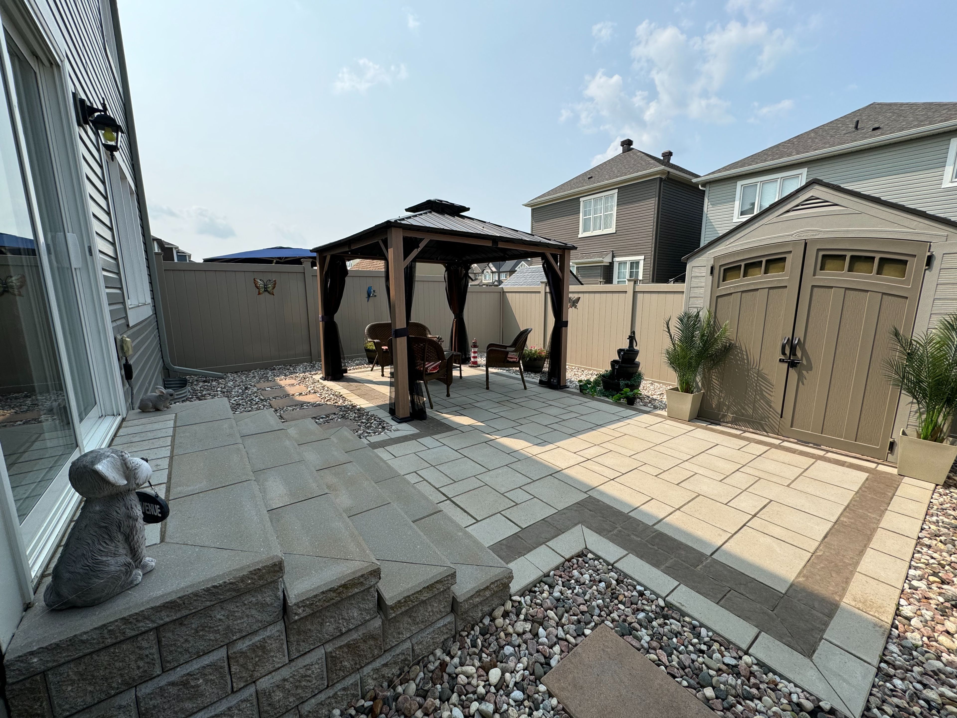 • Low-maintenance, fully fenced backyard with interlock patio and gazebo.