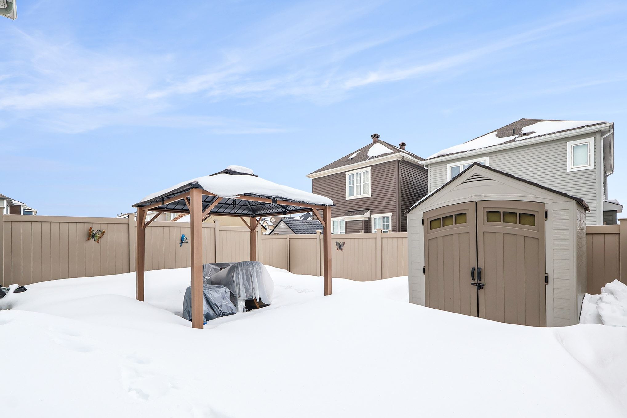 Welcome to this move-in-ready, highly upgraded 4-bedroom, 3-bathroom home with a finished basement in sought-after avalon west, where pride of ownership is evident throughout. The main level features elegant hardwood floors and a designer kitchen with quartz countertops, stainless steel appliances, and a spacious eat-in area with direct access to the backyard showcasing an upgraded interlock patio, while the bright open-concept layout seamlessly connects the living and dining areas with cozy electric fireplace, ideal for everyday living and entertaining. Upstairs offers 4 generous bedrooms, including a luxurious primary suite with walk-in closet and spa-like 4-piece ensuite with soaker tub, along with 3 additional bright bedrooms and the convenience of upper-level laundry. The newly finished basement (2024) provides versatile additional living space ideal for a home office, gym, or recreation room, with a rough-in for a future bathroom. The low-maintenance, fully fenced backyard features full interlock, gazebo, and shed, perfect for relaxing or hosting, while the interlocked front entrance allows for additional parking if needed. Quietly located near schools, parks, shopping, and amenities, this exceptional home offers comfort, style, and practicality in one outstanding package, with a long list of upgrades available upon request.