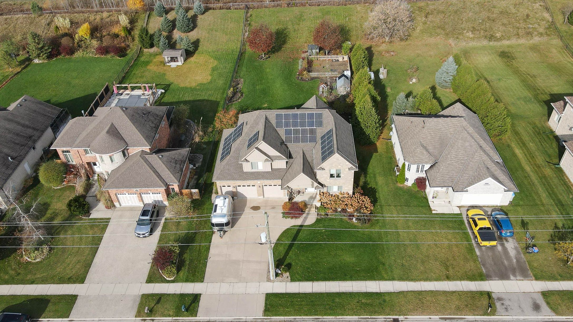 Nestled on a generous 0. 5 acre lot being surrounded by stunning perennial gardens, this spacious custom built home is a perfect fit for your growing family with over 2800 sq ft living space. This beautiful home boasts 4 spacious bedrooms, 2. 5 baths plus a main-floor versatile room that can serve as a fifth bedroom or office. Enjoy the convenience of a 2. 5 garage with 240-volt outlet, providing ample space for storage and electrical car charging. Plus, with owned solar panels on the roof, you will benefit from sustainable energy that sells hydro back to the city every month, giving you added savings and eco-friendly peace of mind. Open concept main floor has spacious living room with fireplace, seamlessly flowing into the dinning room and designed kitchen with custom cabinetry. Upstairs, the spacious master suite is a true retreat with the most amazing en-suite/walk-in closet combos that we have ever seen. Three additional generously sized bedrooms, a 5-piece main bath, and a convenience second-level laundry complete the upper floor for growing family. Lower level has excellent natural light, rough-in for future bath & walk-up steps to the garage. Step outside onto the finished stone patio(over 1000 sq ft), easily accessible from the dinning room, where you can enjoy the outdoor space. Beautiful exterior landscaping from front to back with flower beds, fruit tress, fenced vegetable garden, raised cut flower beds, shed, and more for garden lovers to explore. Bonus features include wifi controlled in-ground sprinkler system, air treatment system(apcox), central vacuum system, whole home steam humidifier system, fotile exhaust hood, ev charging outlet. You would need to see in-person to appreciate what this amazing property has to offer, book your showing today and you will not be disappointed.
