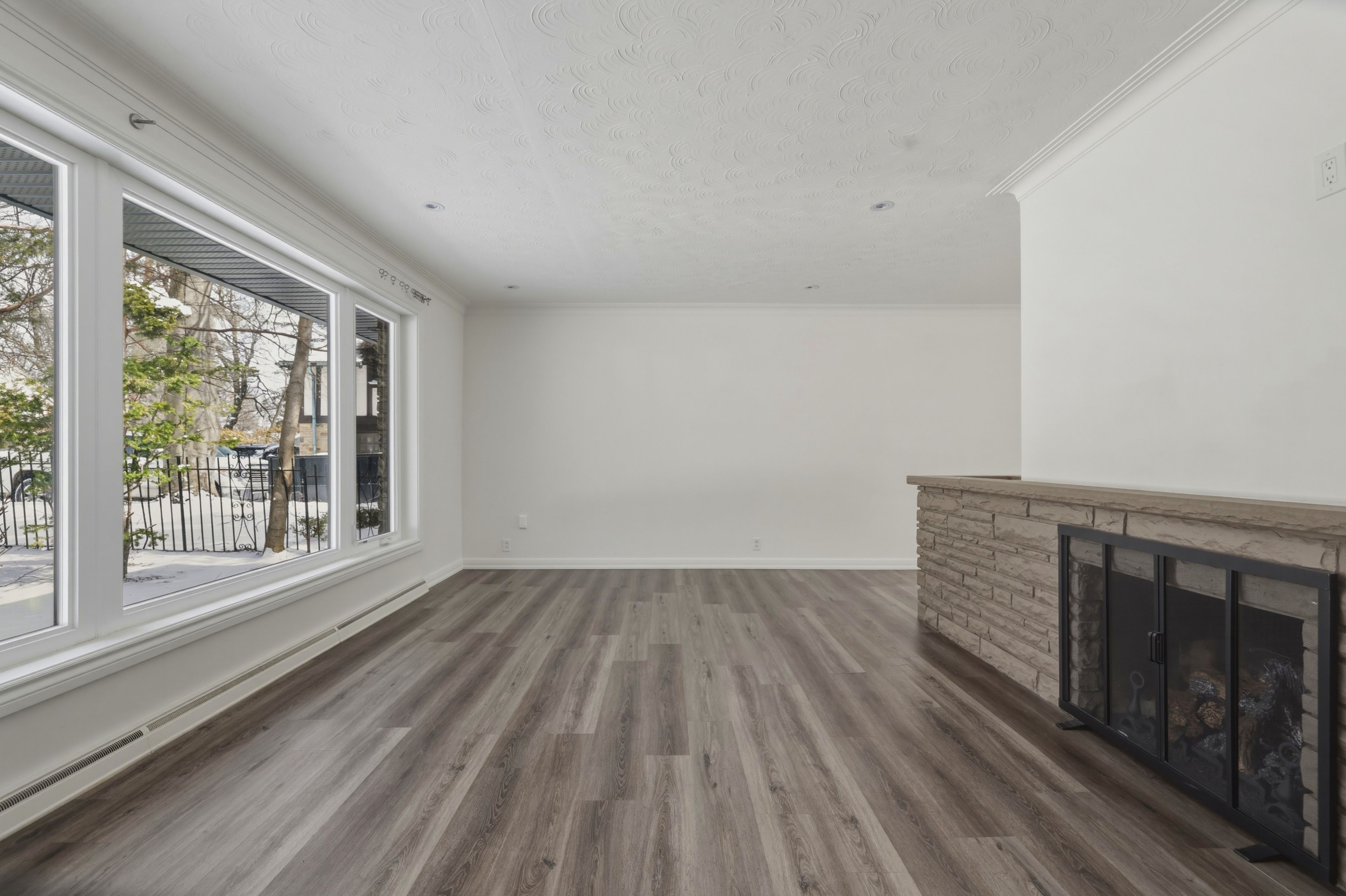 • Expansive principal rooms with a striking stone fireplace feature.