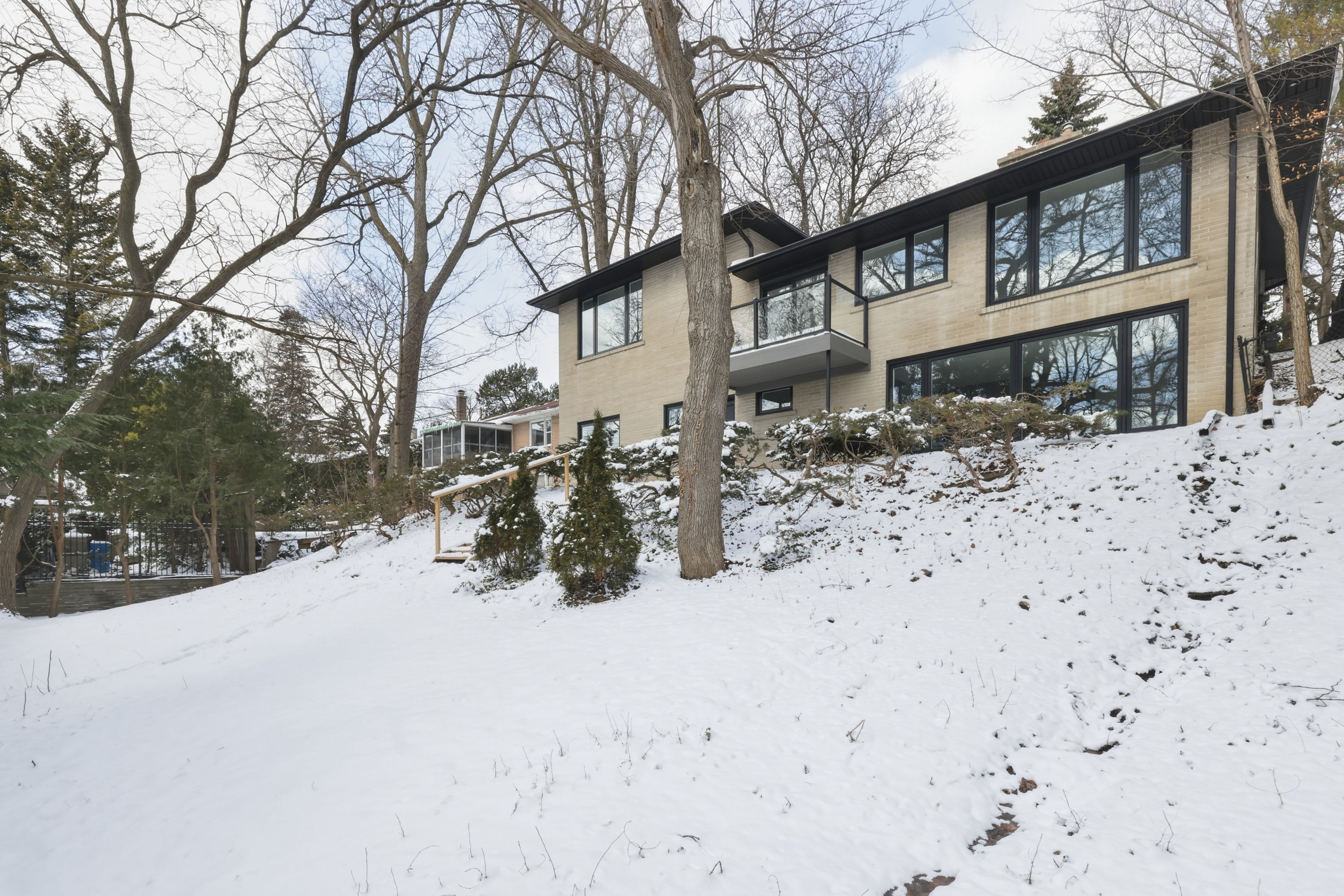 The happy home you've been waiting for in prime lawrence park. Tastefully updated and beautifully maintained, this charming sidesplit sits on an exceptional 60' x 120' lot and offers a warm, inviting layout designed for both comfortable family living and elegant entertaining. A grand foyer welcomes you into expansive principal rooms where a striking stone fireplace feature wall artfully integrates the living spaces while still creating defined areas. Thoughtful built-in planter boxes add texture and warmth, enhancing the home's unique architectural character. The well-proportioned layout features 3+1 bedrooms and 3 bathrooms, including large bedrooms and a serene primary suite with its own ensuite. The eat-in kitchen is ideal for daily life and hosting alike, with a walkout to a private balcony overlooking the beautiful surroundings. The natural grade of the lot allows the lower level to feel bright and open, with generous natural light and a convenient walkout that enhances the home's overall livability and flexibility. Perfectly positioned steps to toronto's finest public and private schools, the granite club, ravine trails, parks, and midtown's premier amenities, this is a rare opportunity to secure a truly special home in one of the city's most prestigious neighbourhoods.