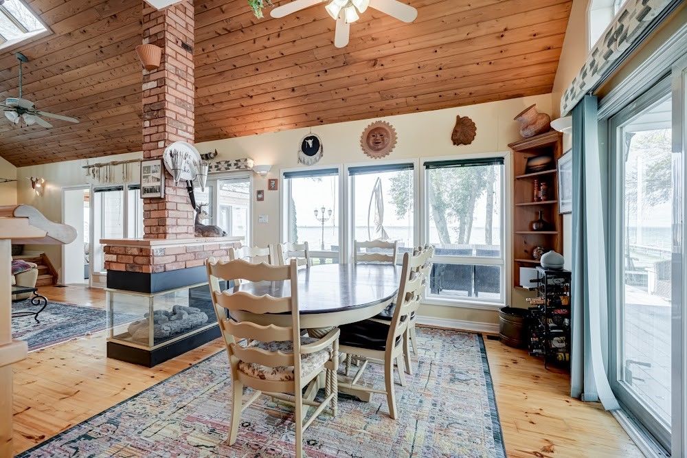Escape to your dream waterfront getaway at 537 eagle rd on georgina island in lake simcoe! This stunning westerly-facing, 4-season waterfront cottage offers approximately 80 feet of prime shoreline and captivating sunset views. Designed for family enjoyment and entertaining, the cottage features a spacious eat-in kitchen, an open-concept living area with cathedral ceilings, and breathtaking views from every angle. Unwind in the bright sunroom or step out from the dining room onto the expansive l-shaped cedar deck perfect for all-day sun and outdoor entertaining. Gather around the fire pit for cozy evenings by the water. The primary bedroom offers incredible lake views, while the recreation room provides the ultimate in relaxation with a hot tub, sauna, and separate shower. With 5 bedrooms you will always have enough room for your family and guests. Bedrooms are well sized and the large primary bedroom is a sanctuary boasting views of the lakefront. Custom-built by the original builder for personal family use, this home showcases quality craftsmanship throughout. Included are two lots, with a 40' x 30' custom garage located directly across the road from the waterfront property. Accessible by boat or car ferry, georgina island offers municipal garbage/recycling services and a land lease with the chippewas of georgina island in place until 2062. Enjoy boating, fishing, windsurfing, kiteboarding, or simply floating your cares away. Explore nearby destinations like barrie, orillia, jacksons point, beaverton, lagoon city, and lake couchiching all offering lakeside festivals, shopping, and year-round recreation. A true four-season lakeside retreat combining comfort, relaxation, and an unbeatable waterfront lifestyle!