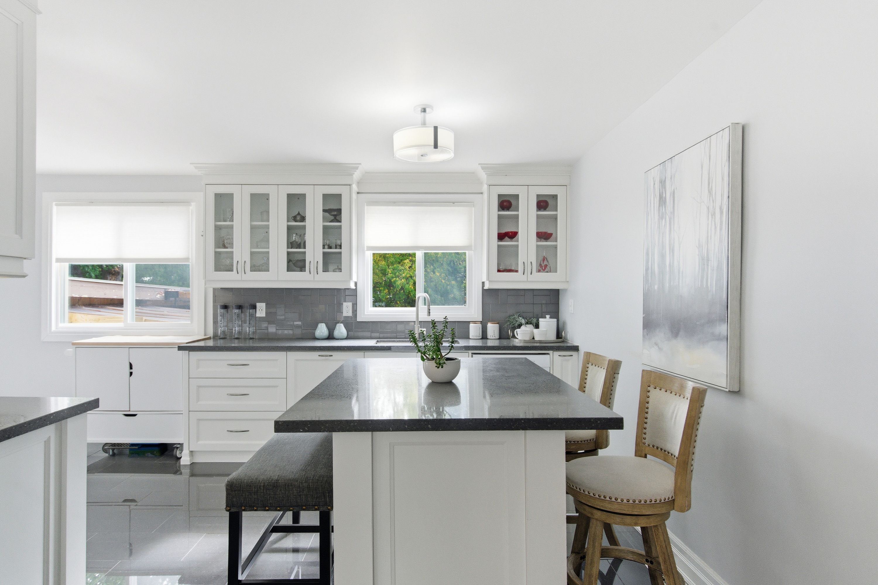 A must-see for growing families or multi-generational living in south east burlington, offering over 3,200 sq ft of beautifully finished living space and a unique, versatile layout. The main floor features a bright living area, an updated eat-in kitchen with quartz countertops and island, three spacious bedrooms, and a renovated 3-piece bath with walk-in shower. The second level offers a separate living space with its own kitchen, dining area, gas fireplace, two bedrooms, and a modern 3-piece bath-perfect for in-laws, guests, or a nanny suite. Enjoy the four-season sunroom with a cozy gas fireplace, a finished basement with pot lights for added flexibility and ambiance, and a private backyard oasis with saltwater pool, cabana, and new deck. This home features three gas fireplaces and numerous upgrades, including a pool liner (2023), sand filter (2020), heater (2018), pump (2017), roof (2018), windows and front door (2017), furnace and a/c (2016), and driveway (2022).