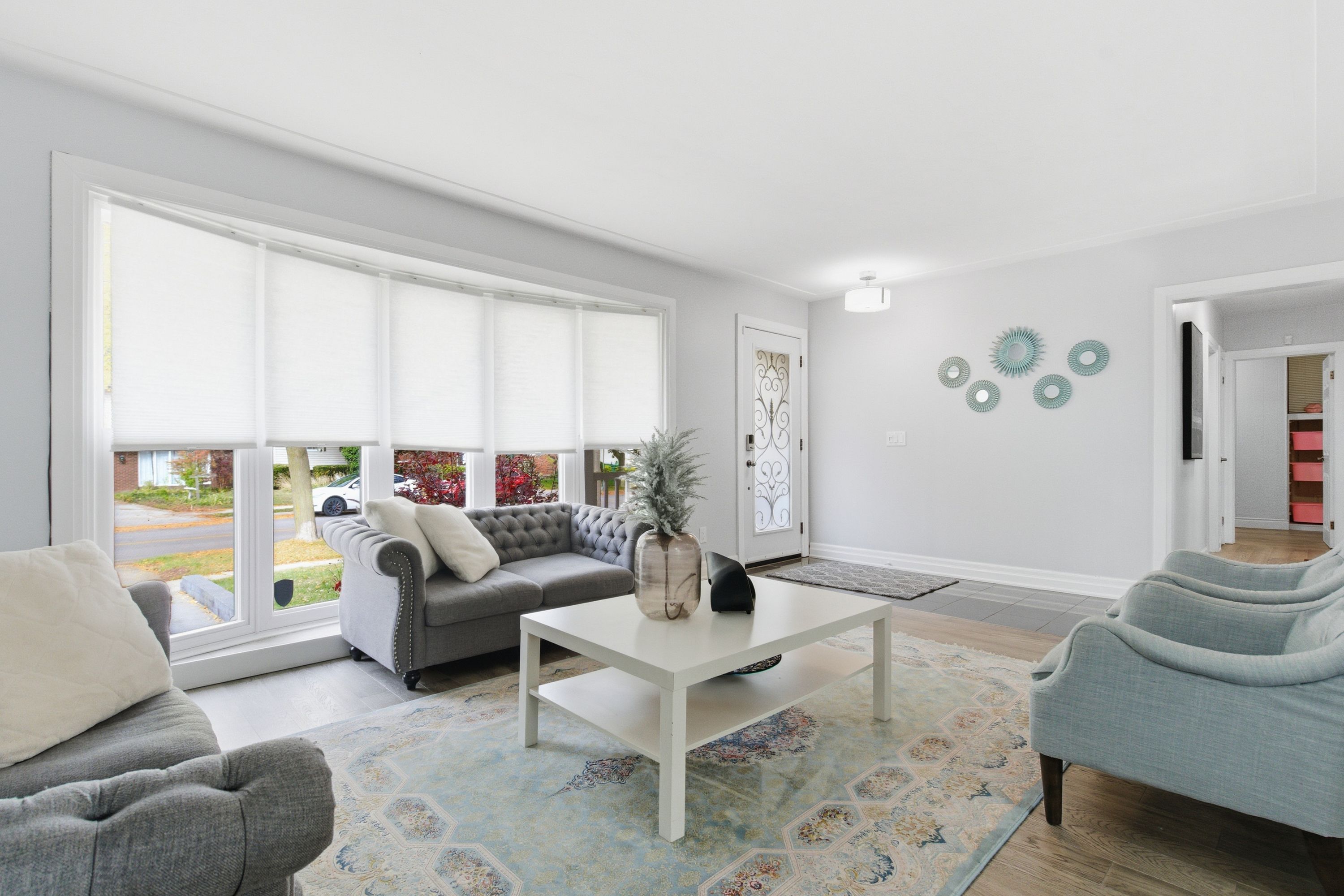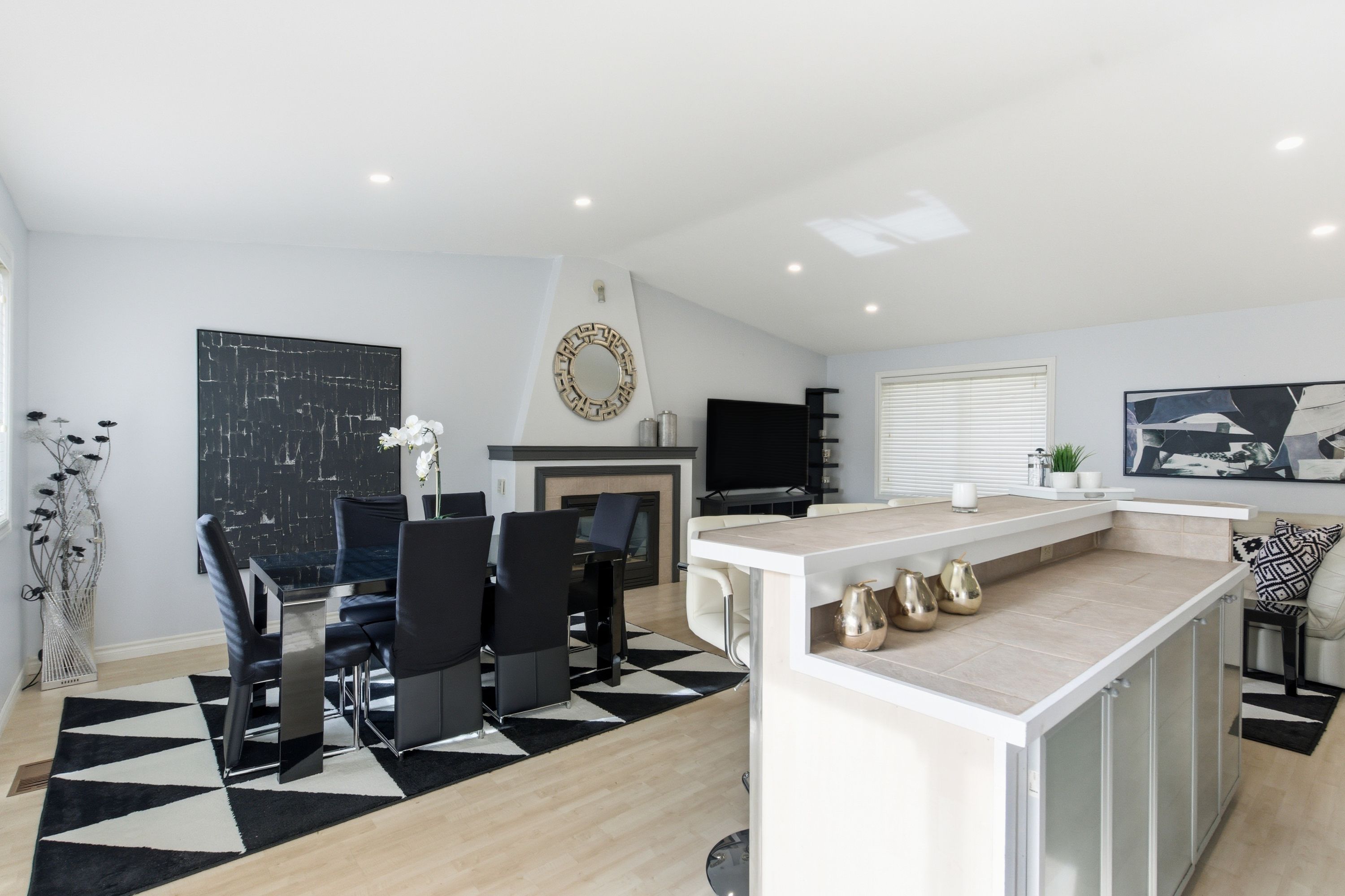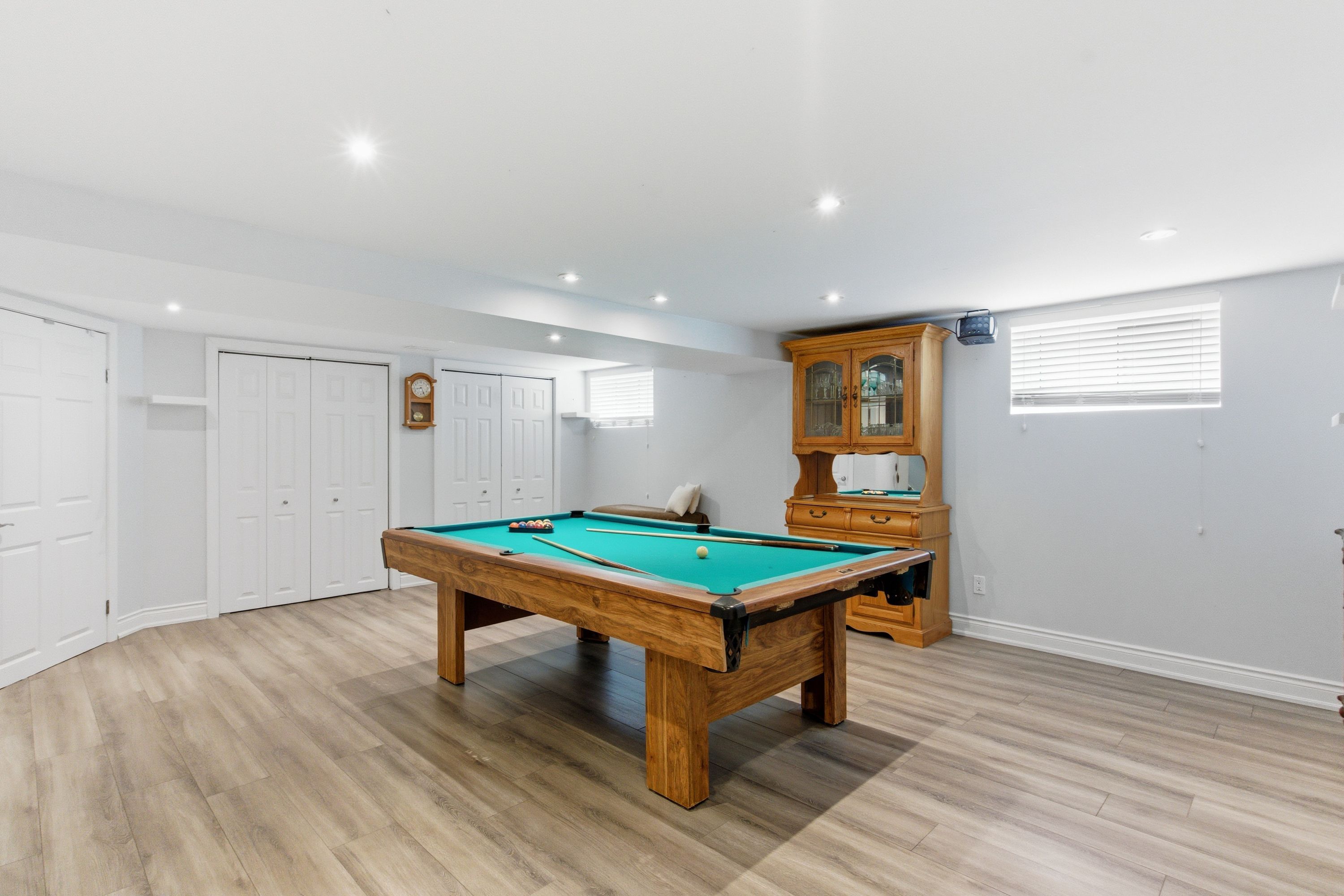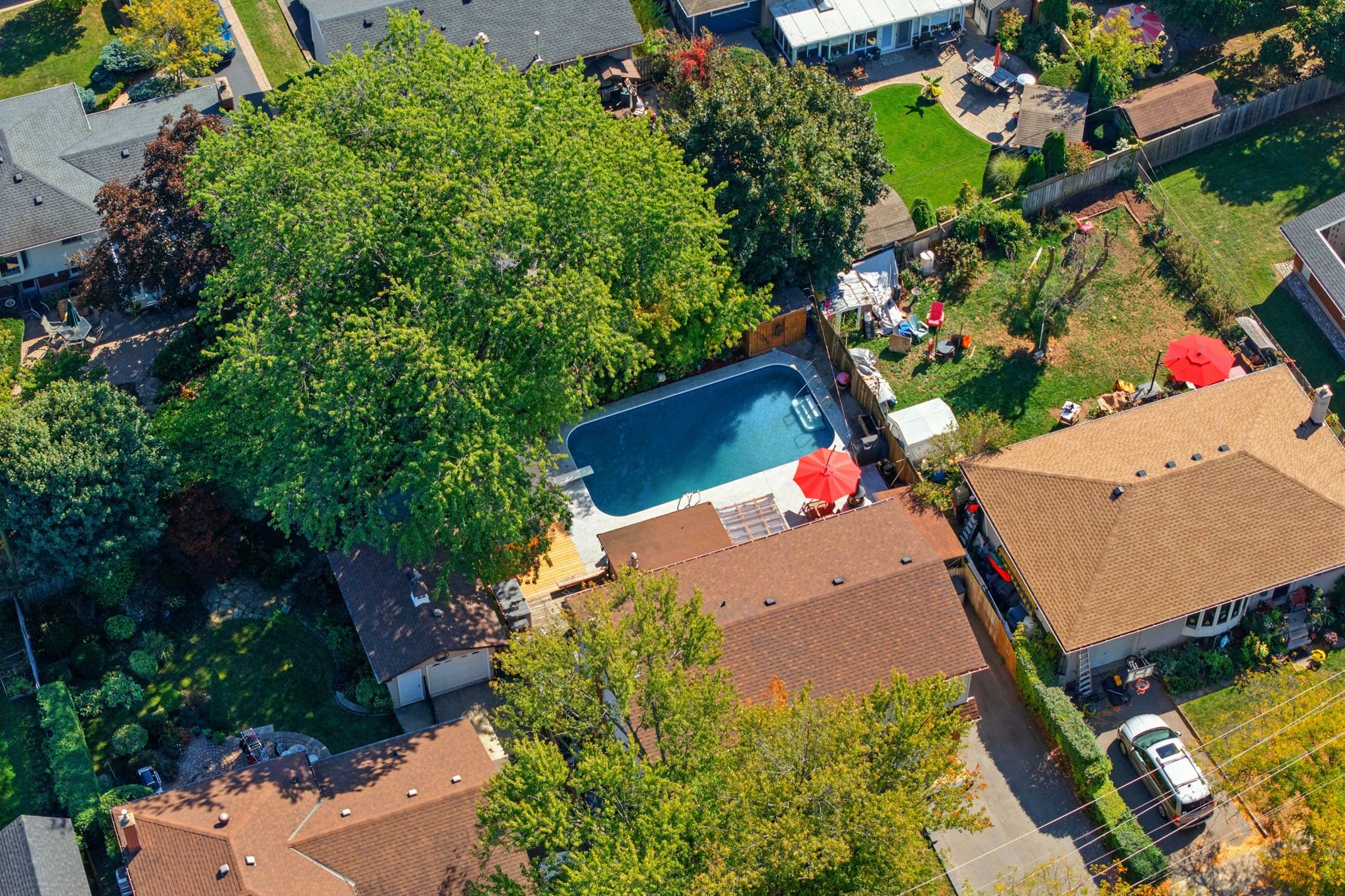 A must-see for growing families or multi-generational living in south east burlington, offering over 3,200 sq ft of beautifully finished living space and a unique, versatile layout. The main floor features a bright living area, an updated eat-in kitchen with quartz countertops and island, three spacious bedrooms, and a renovated 3-piece bath with walk-in shower. The second level offers a separate living space with its own kitchen, dining area, gas fireplace, two bedrooms, and a modern 3-piece bath-perfect for in-laws, guests, or a nanny suite. Enjoy the four-season sunroom with a cozy gas fireplace, a finished basement with pot lights for added flexibility and ambiance, and a private backyard oasis with salt water pool, cabana, and new deck. This home features three gas fireplaces and numerous upgrades, including a pool liner (2023), sand filter(2020), heater (2018), pump (2017), roof (2018), windows and front door (2017), furnace and a/c (2016), and driveway (2022).