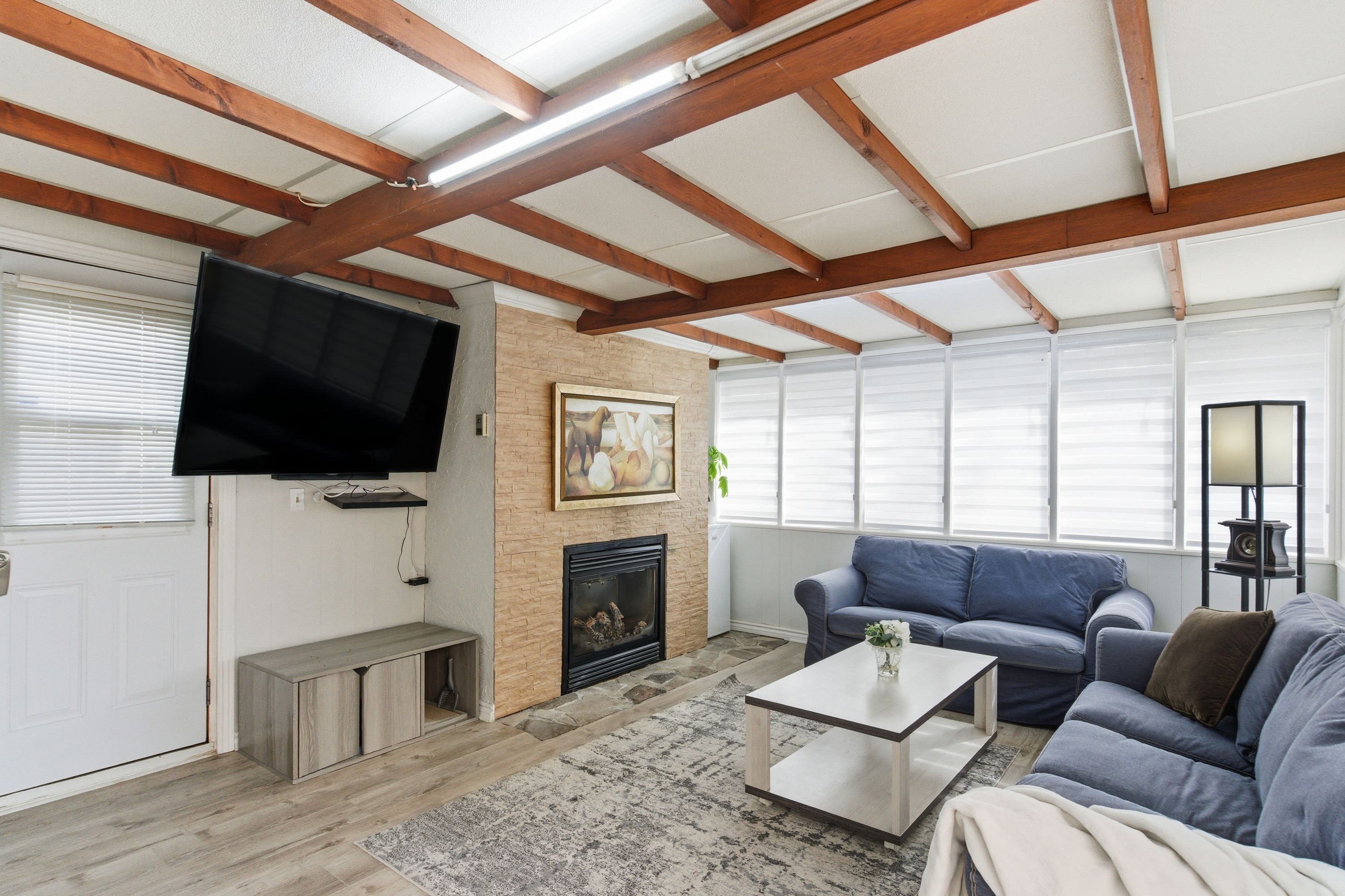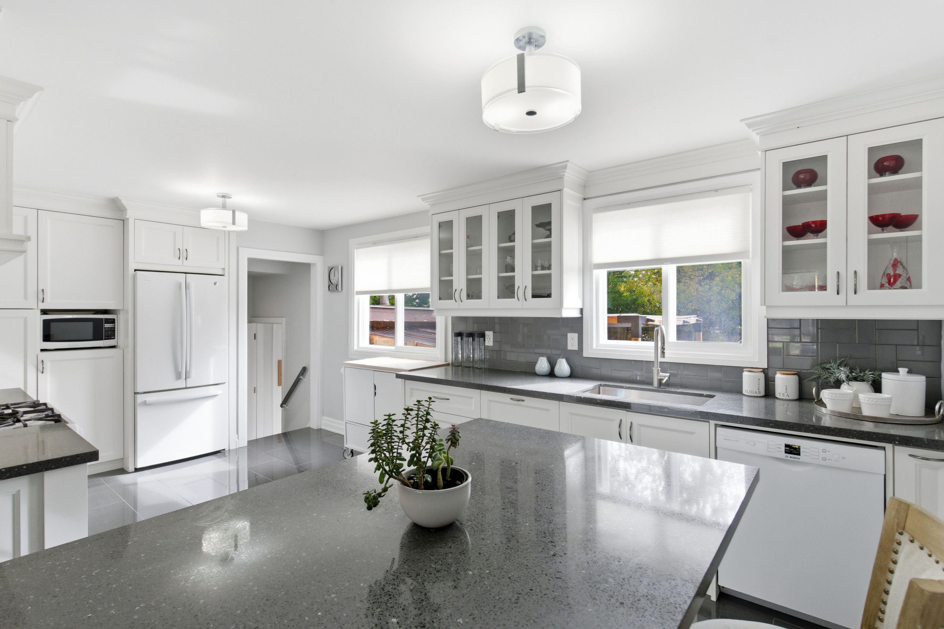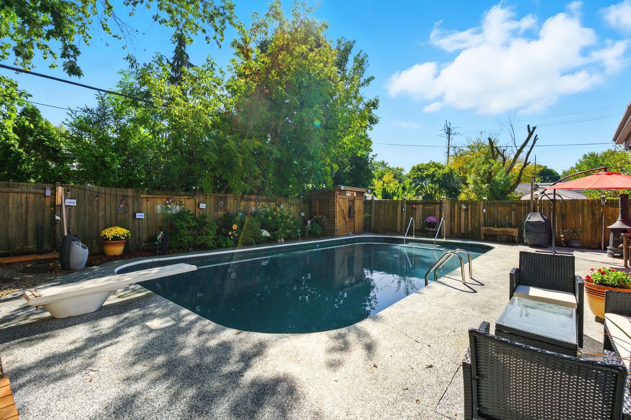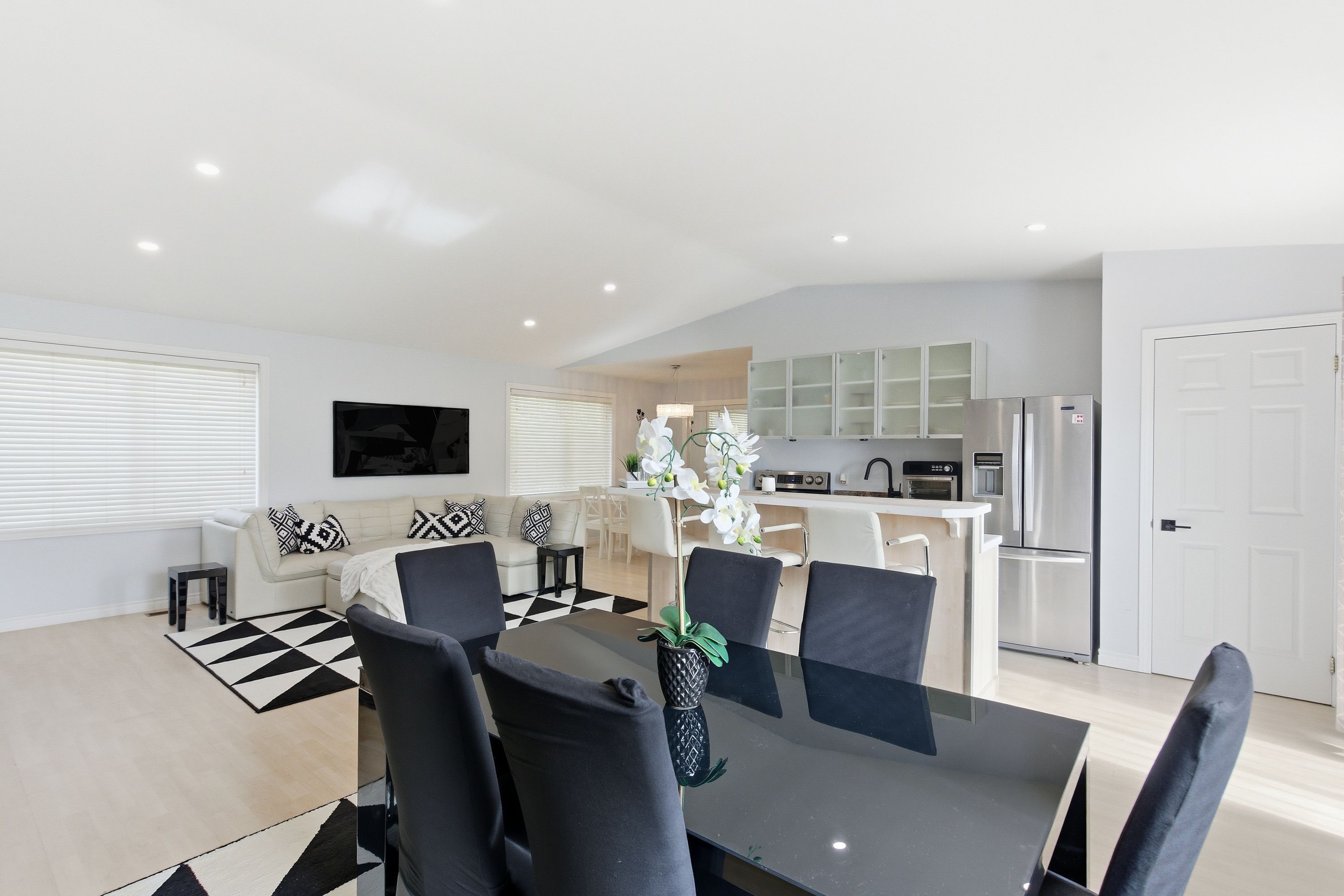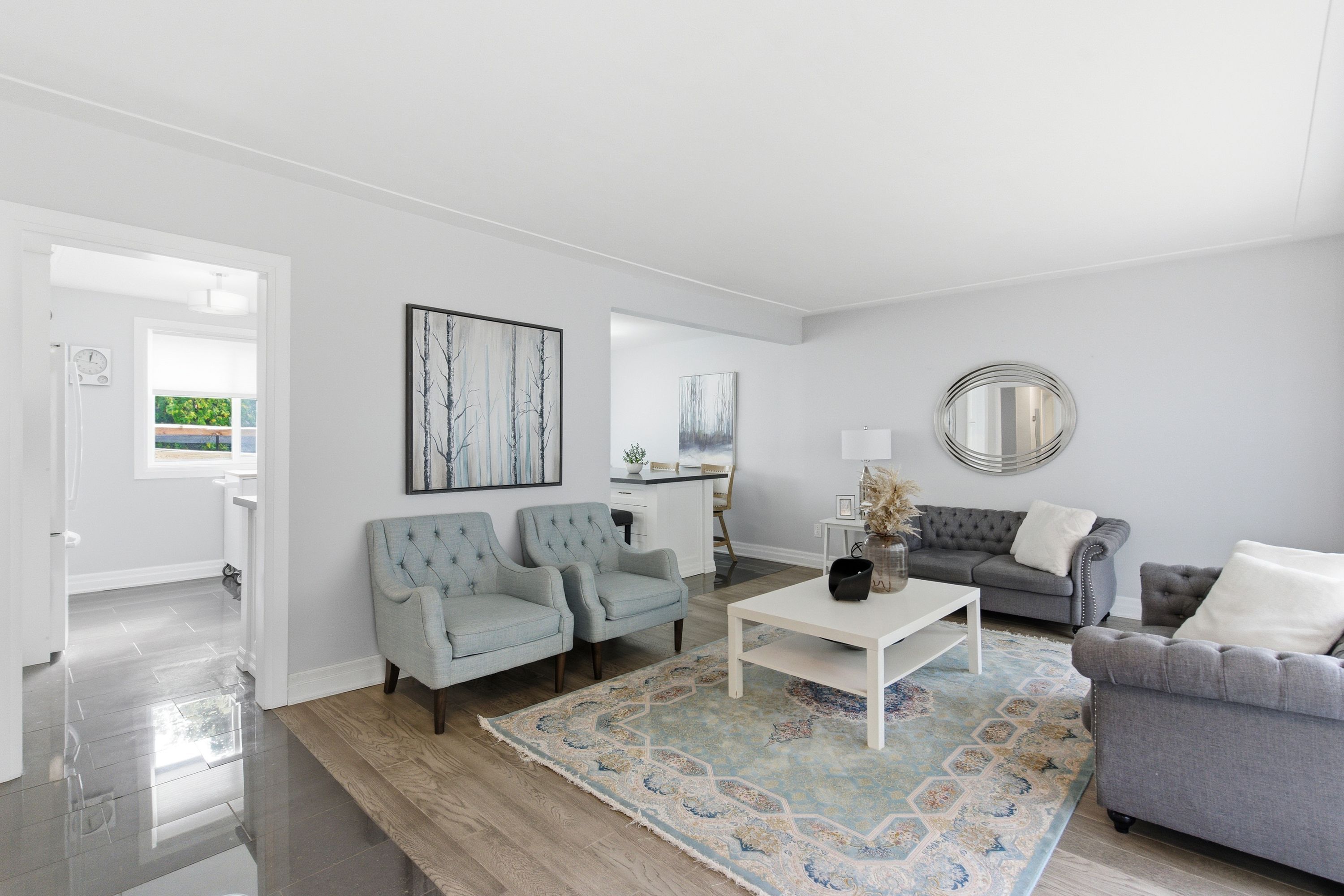 A must-see for growing families or multi-generational living in south east burlington, offering over 3,200 sq ft of beautifully finished living space and a unique, versatile layout. The main floor features a bright living area, an updated eat-in kitchen with quartz countertops and island, three spacious bedrooms, and a renovated 3-piece bath with walk-in shower. The second level offers a separate living space with its own kitchen, dining area, gas fireplace, two bedrooms, and a modern 3-piece bath-perfect for in-laws, guests, or a nanny suite. Enjoy the four-season sunroom with a cozy gas fireplace, a finished basement with pot lights for added flexibility and ambiance, and a private backyard oasis with salt water pool, cabana, and new deck. This home features three gas fireplaces and numerous upgrades, including a pool liner (2023), sand filter(2020), heater (2018), pump (2017), roof (2018), windows and front door (2017), furnace and a/c (2016), and driveway (2022).