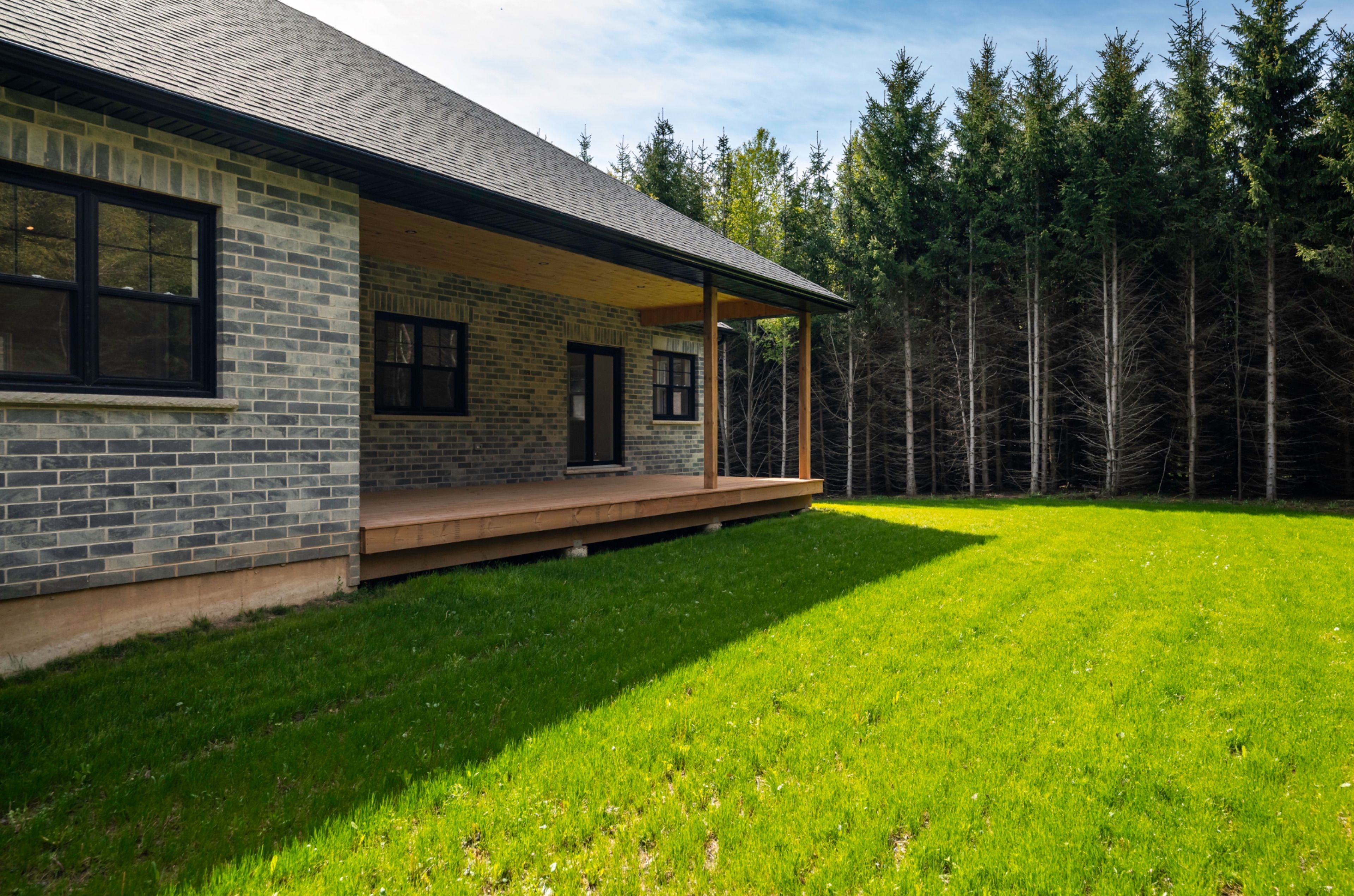 • Covered deck with views of a private yard, ideal for relaxation.