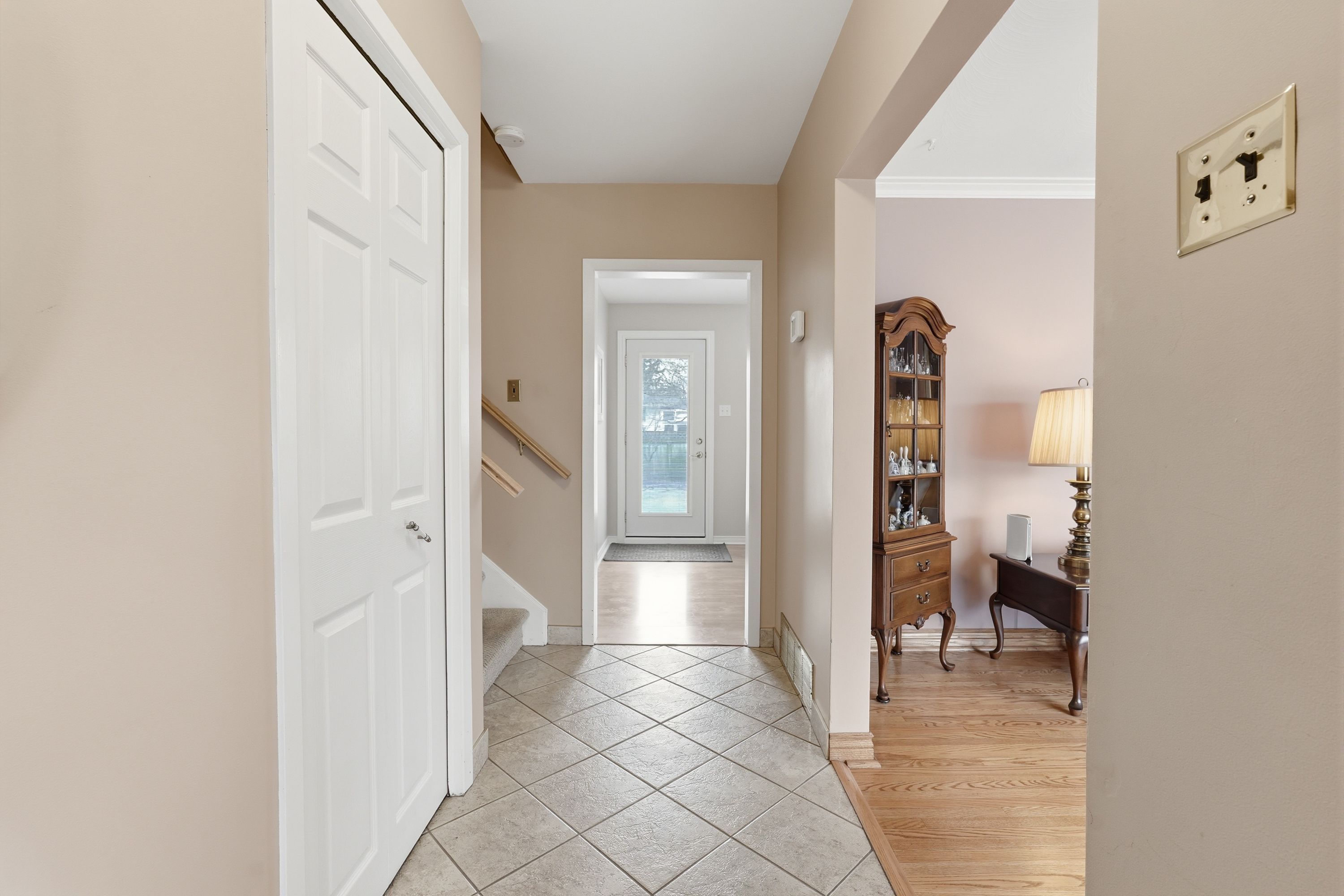 Beautiful 3-level side split offering over 1,500 sq ft of living space with 3 bedrooms, set on a generous 60 x 105 ft lot and featuring a separate entrance to the basement-ideally located just minutes from the lake and everyday amenities. The main level features a bright, inviting layout with neutral décor, hardwood flooring, and an updated kitchen with ceramic finishes, creating a clean and functional space for daily living. Upstairs offers three well-proportioned bedrooms and an updated bathroom, ideal for families or downsizers alike. The lower level provides additional living space with a comfortable family room anchored by a gas fireplace, perfect for relaxing or entertaining, with the added flexibility of the separate entrance. Outside, the home sits on a fully landscaped lot with interlocking walkways and patio, plus a fully fenced backyard featuring gardens and outdoor lighting-offering both privacy and a great setting for outdoor enjoyment. A spacious detached garage with a dedicated work area adds excellent functionality for storage, hobbies, or workspace. Well maintained and move-in ready, this home offers a great blend of comfort, function, and location. Recent updates include: driveway paved (apr 2023), garage roof (2021), and house roof (2011).