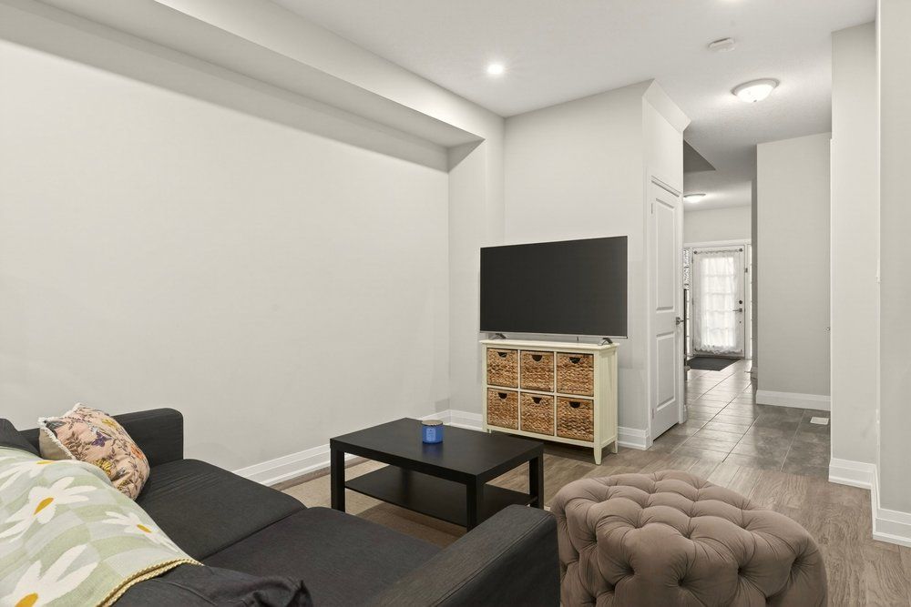 Modern, upscale townhome ideally located close to schools, community centres, shopping, scenic trails, and just minutes from the highway. This home features an eat-in kitchen on the main floor that opens seamlessly to the living room-perfect for entertaining or family gatherings. A spacious foyer and convenient 2-piece powder room complete the main level . Upstairs you'll find a generously sized primary bedroom with walk-in closet and private ensuite. 2 additional bedrooms offer ample space, along with a bonus loft area and a 3-piece bathroom. The unfinished basement with rough-in for a bathroom provides a blank canvas to create your dream space.