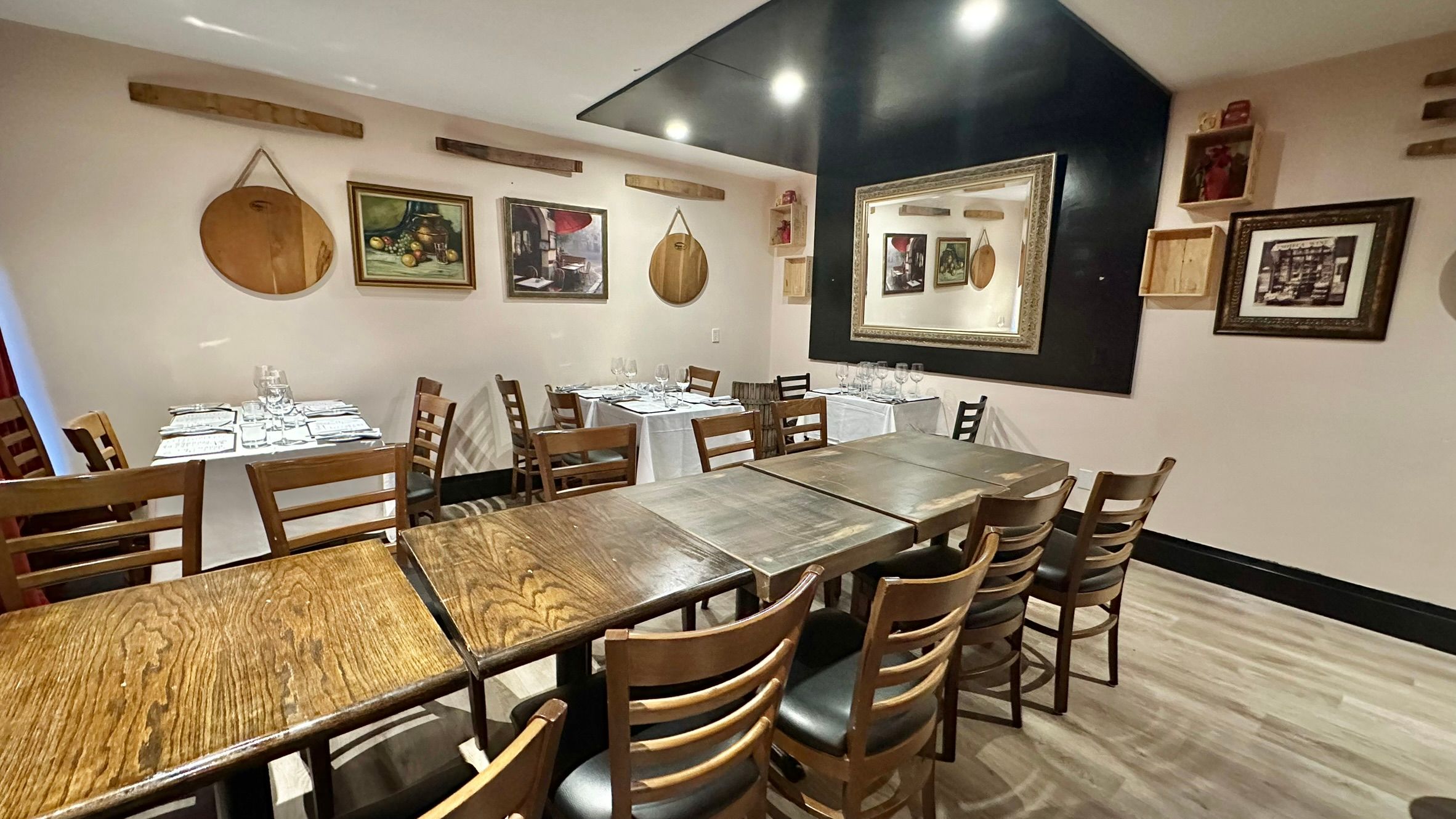 A well-established italian restaurant situated in the annex. Featuring excellent corner exposure and a prime location suitable for any concept. The main floor offers approximately 1,300 sq ft, plus basement space, and includes a 10 ft kitchen hood and walk-in cooler. The space can be easily adapted to any cuisine. It has a transferable liquor license for 27 seats, with pending approval for an additional 16 to 20 seats from the back party room.