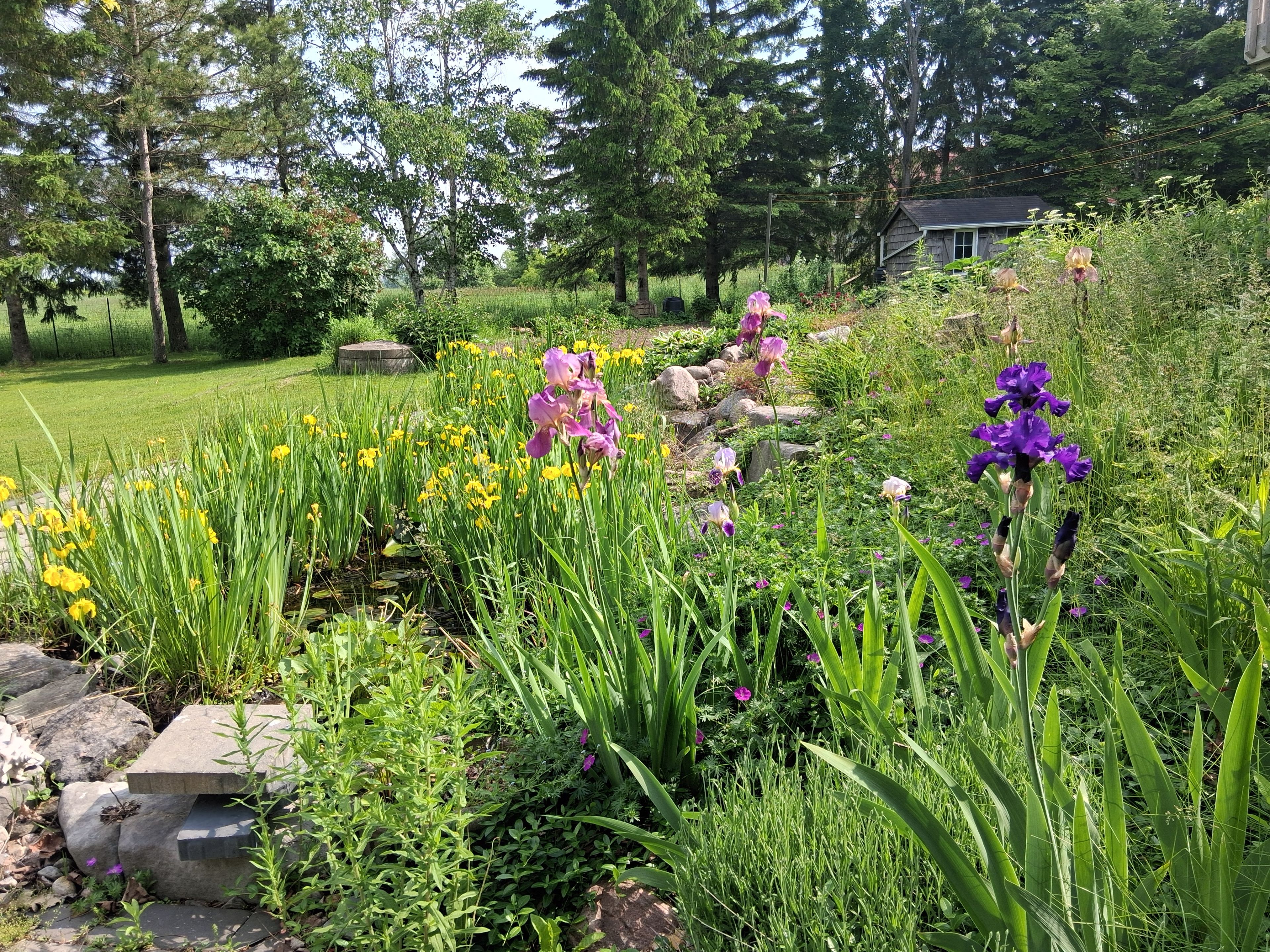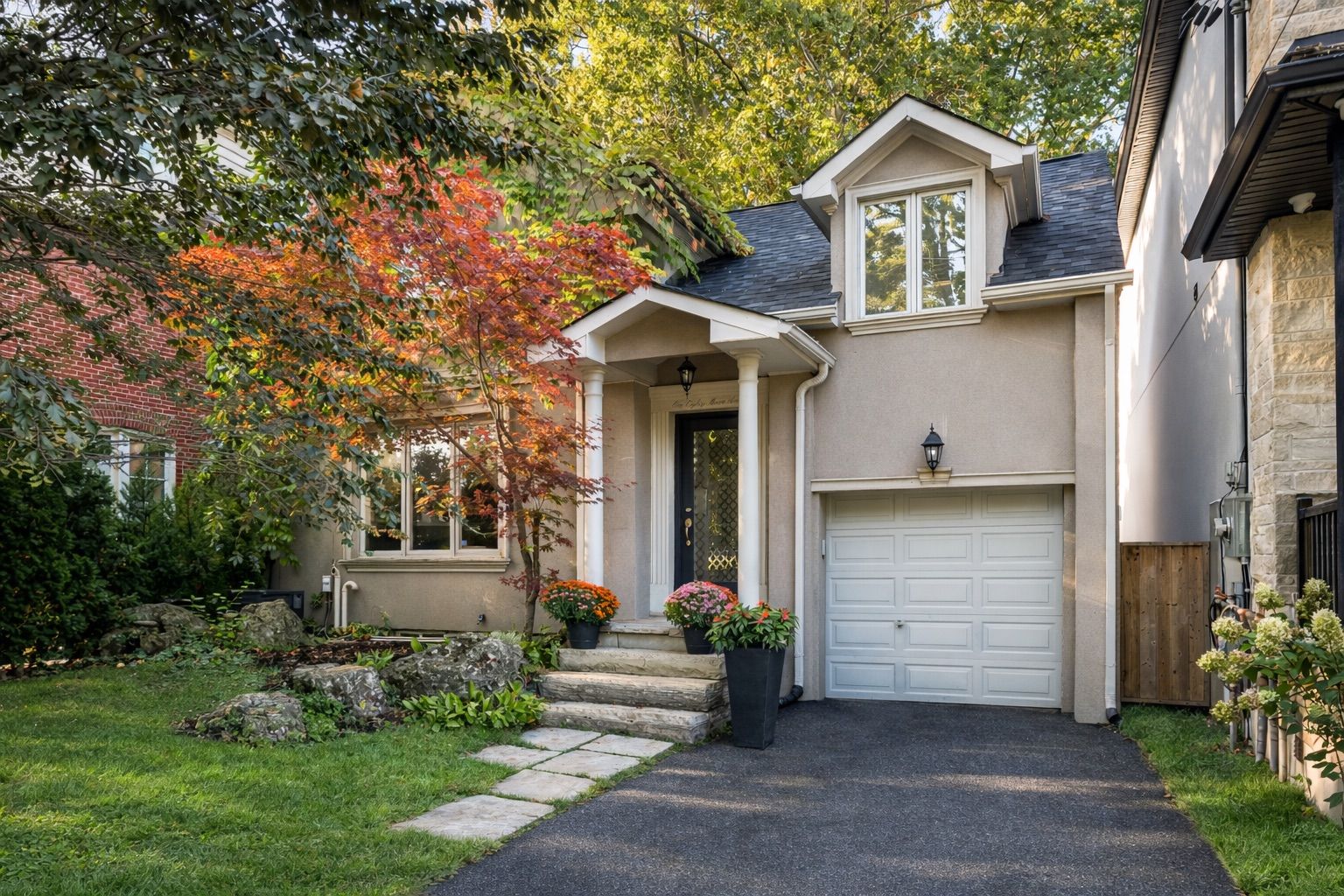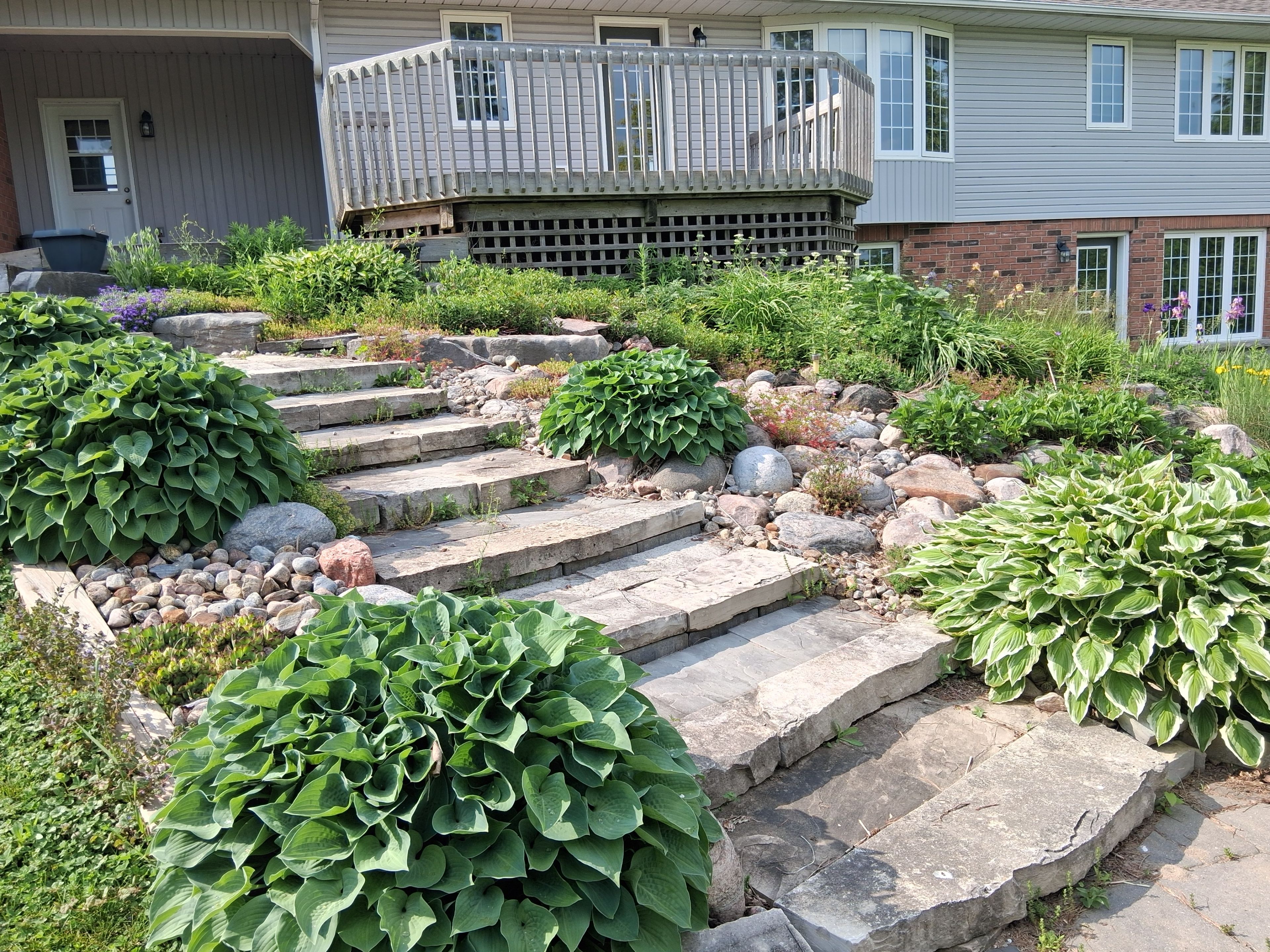 • Landscaped oasis features a spacious deck, vibrant gardens, and a serene pond.