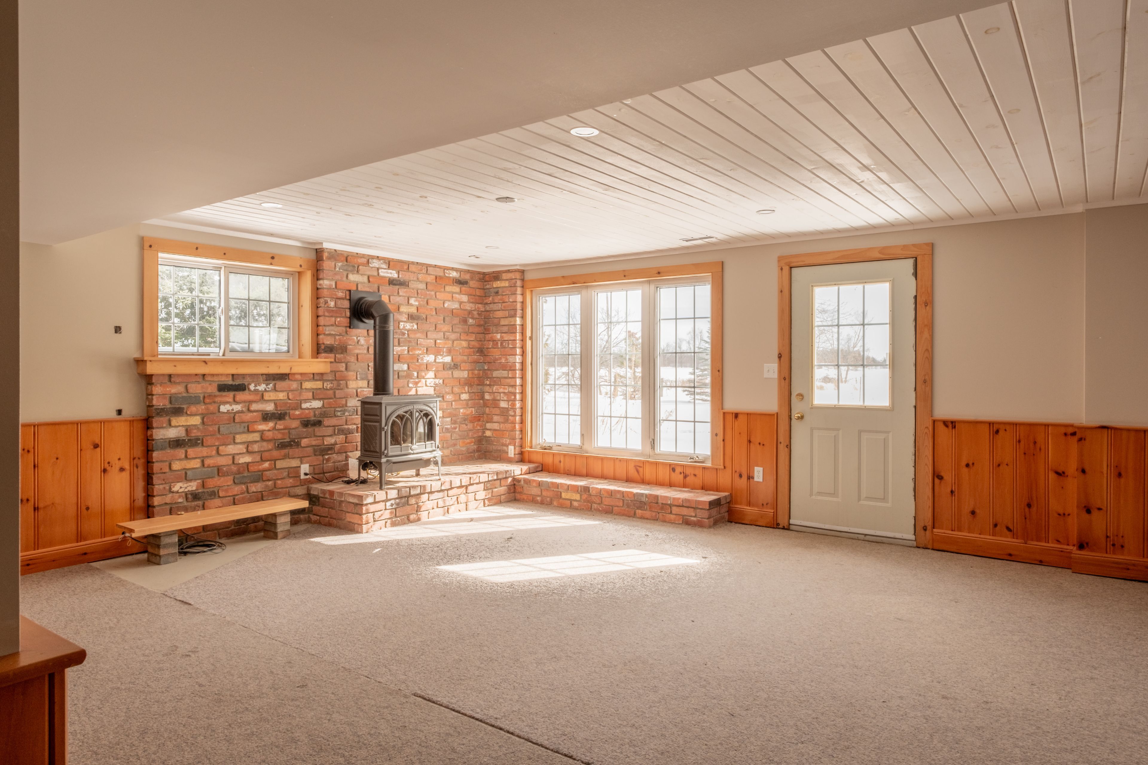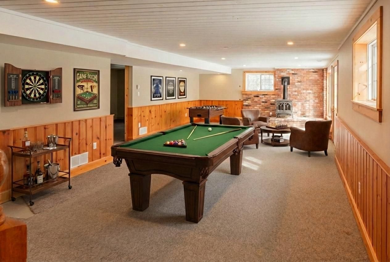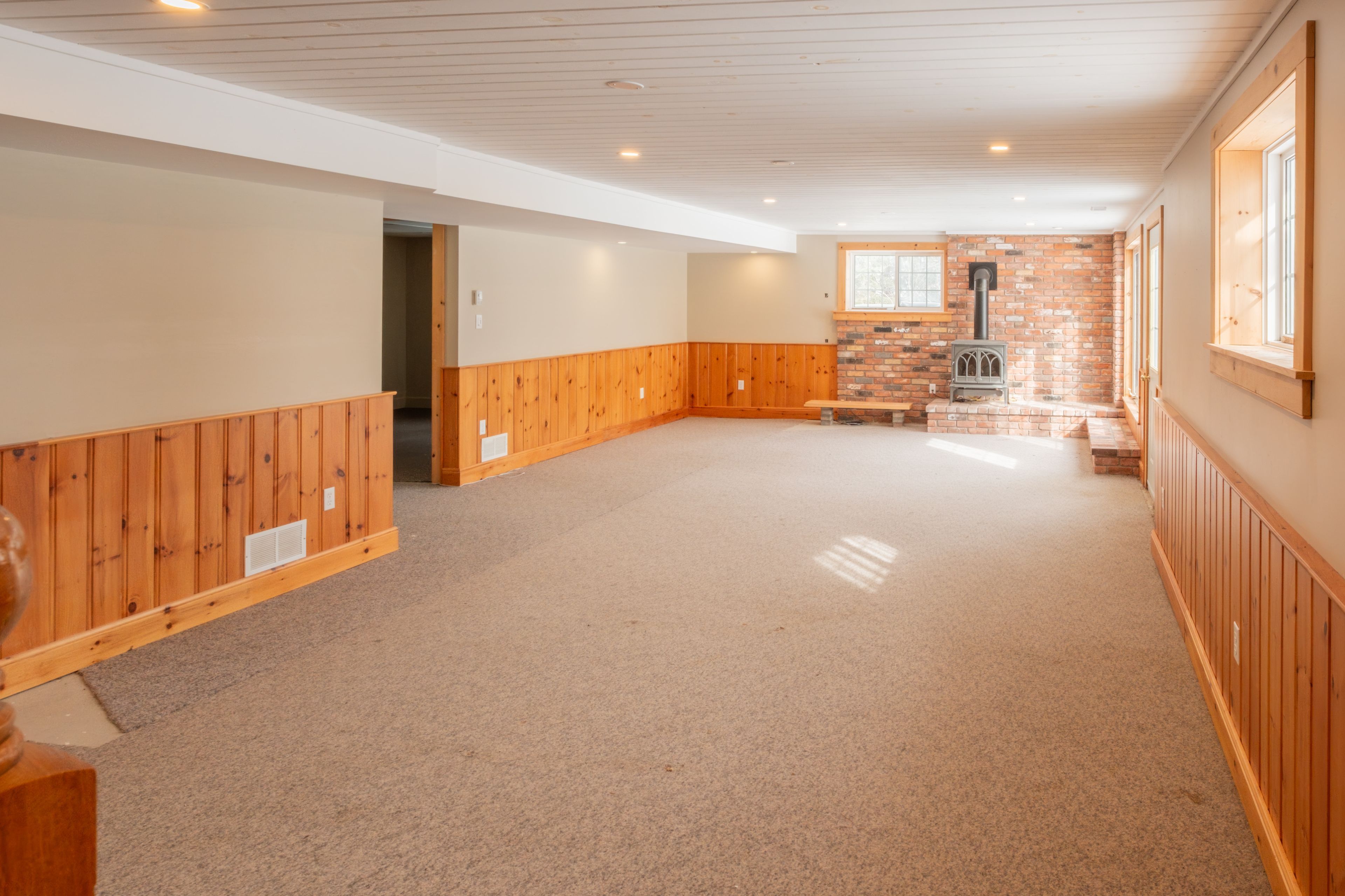 • Walkout basement includes recreational space and a cozy propane stove.