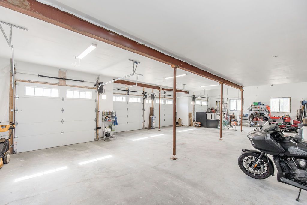 • Heated 4-car garage suitable for enthusiasts, storage, or workshop use.