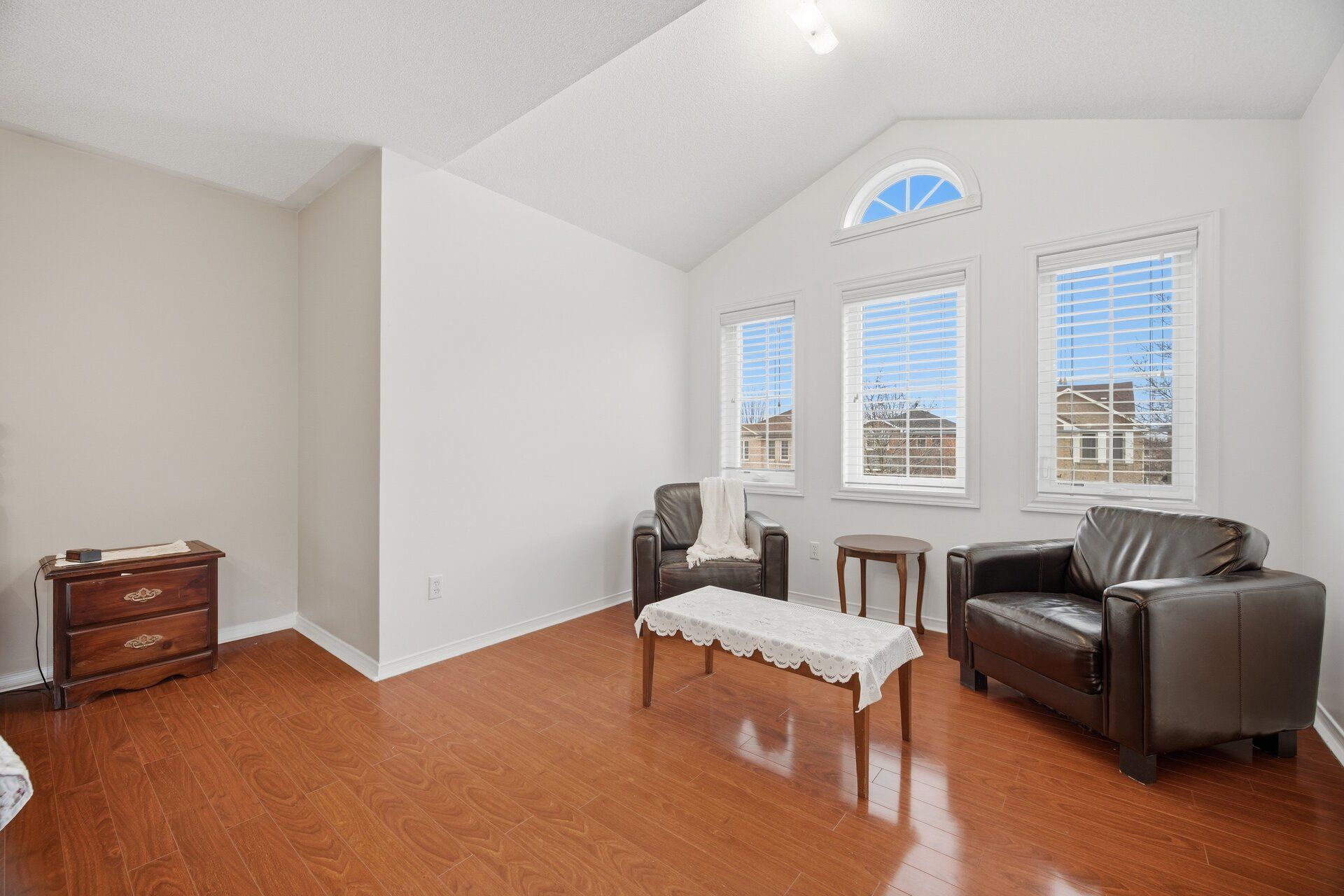 • Inviting family room with impressive cathedral ceiling for added character.