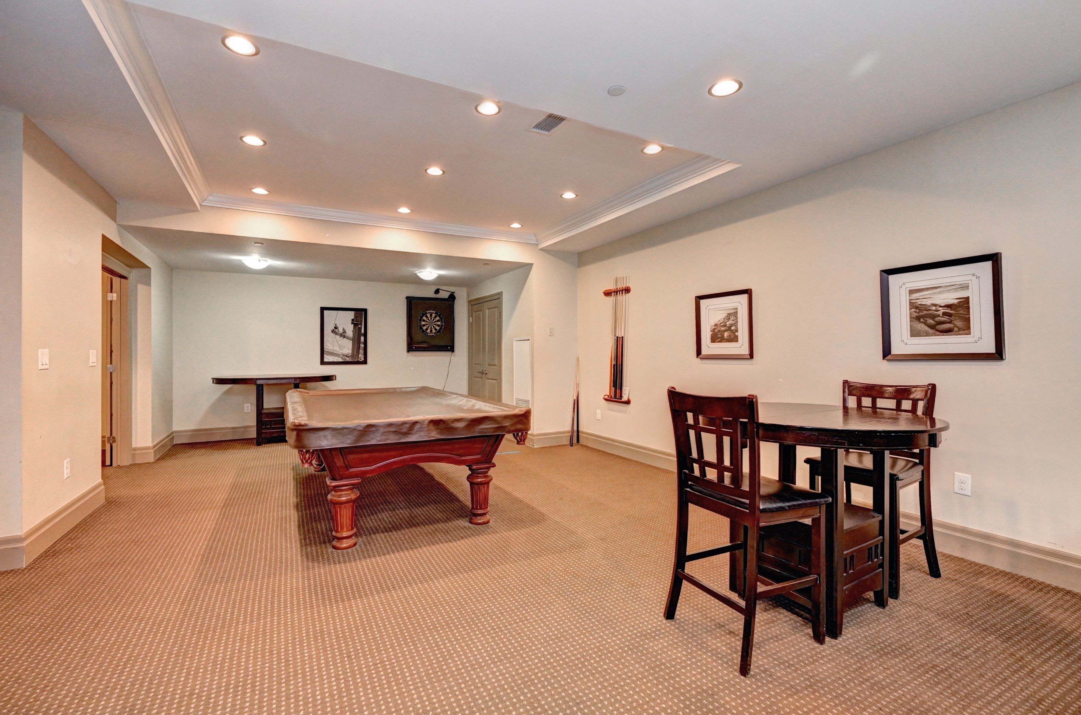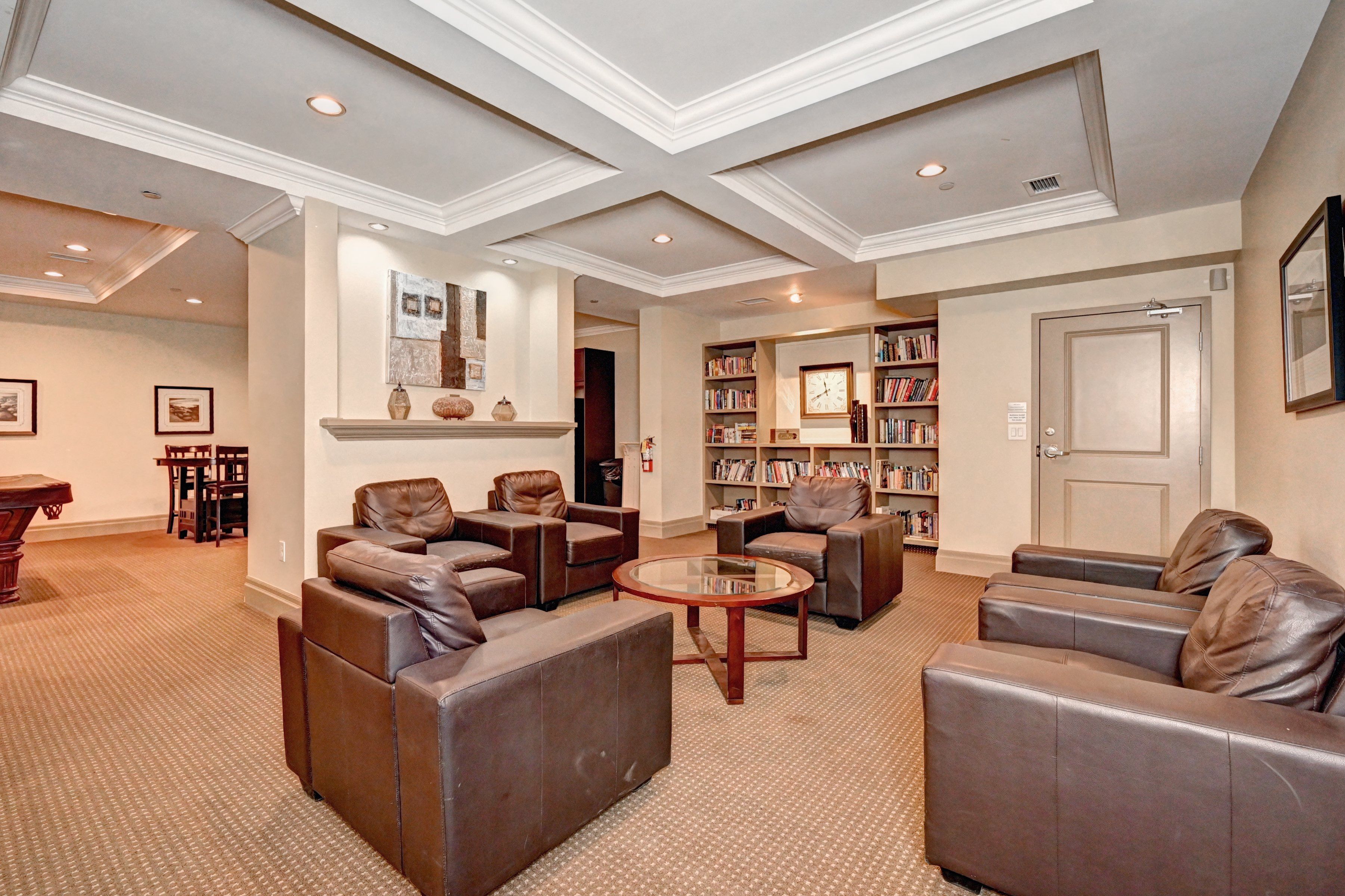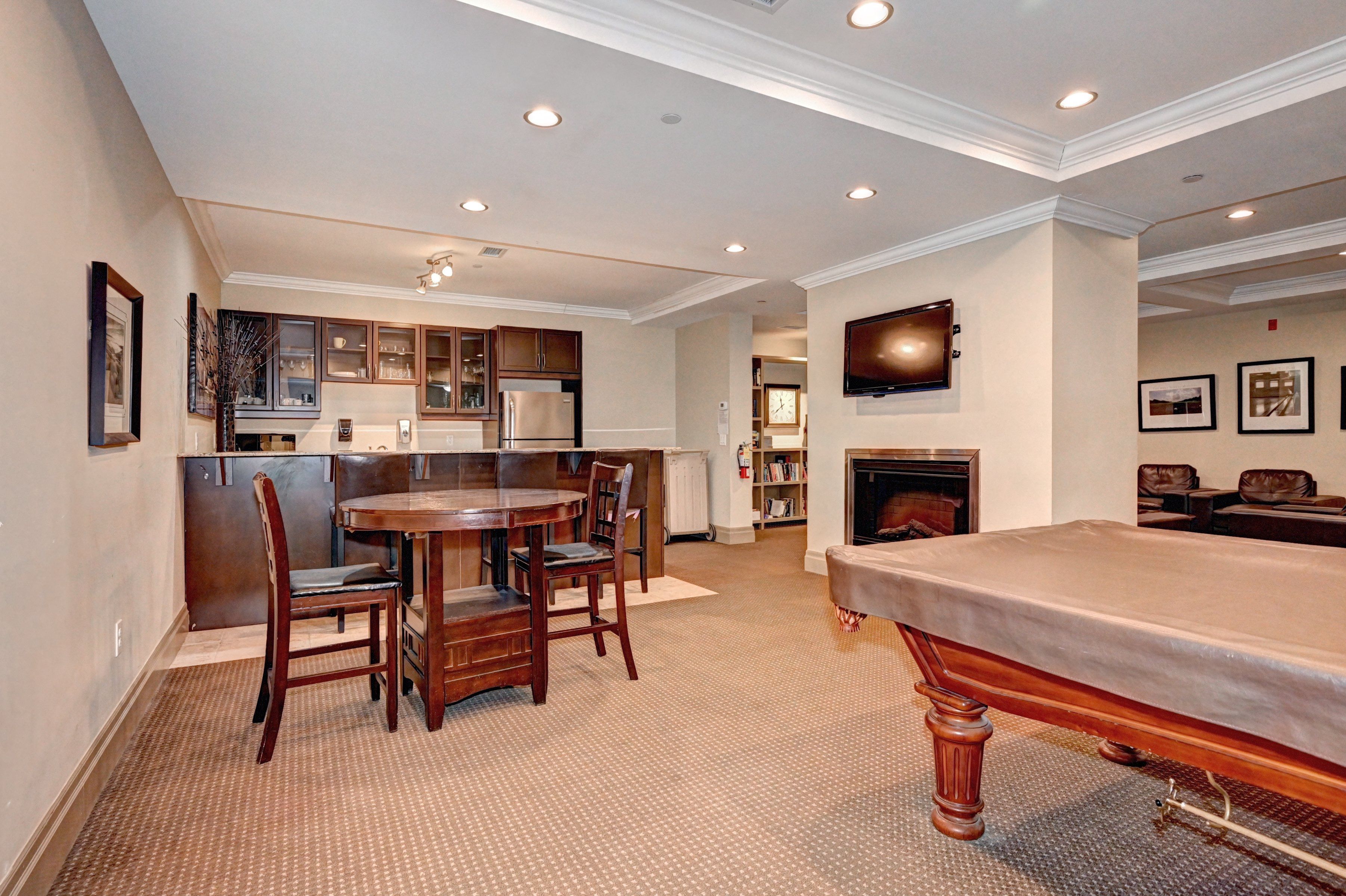 • Open-concept design with 9-foot ceilings and an electric fireplace.