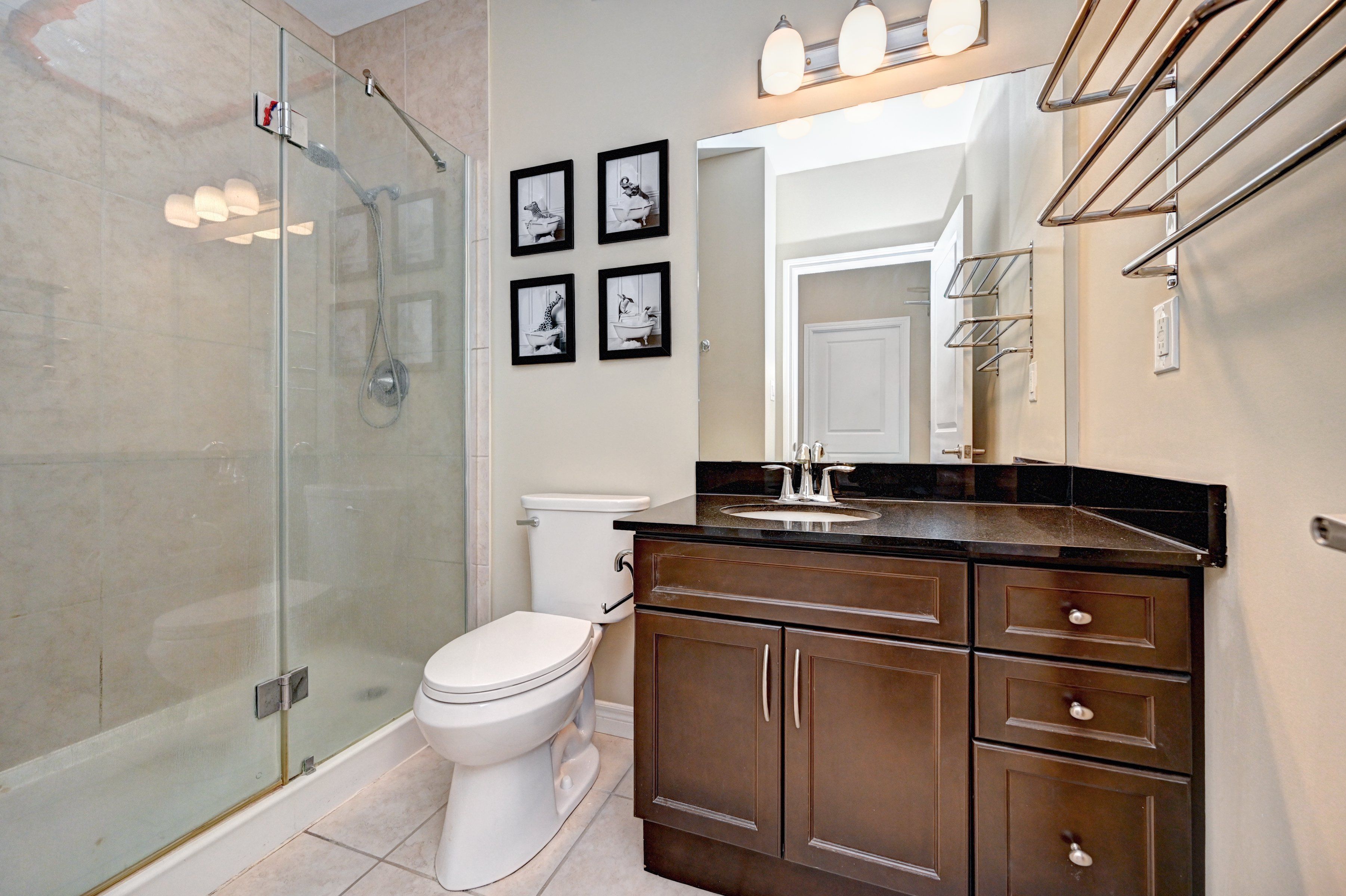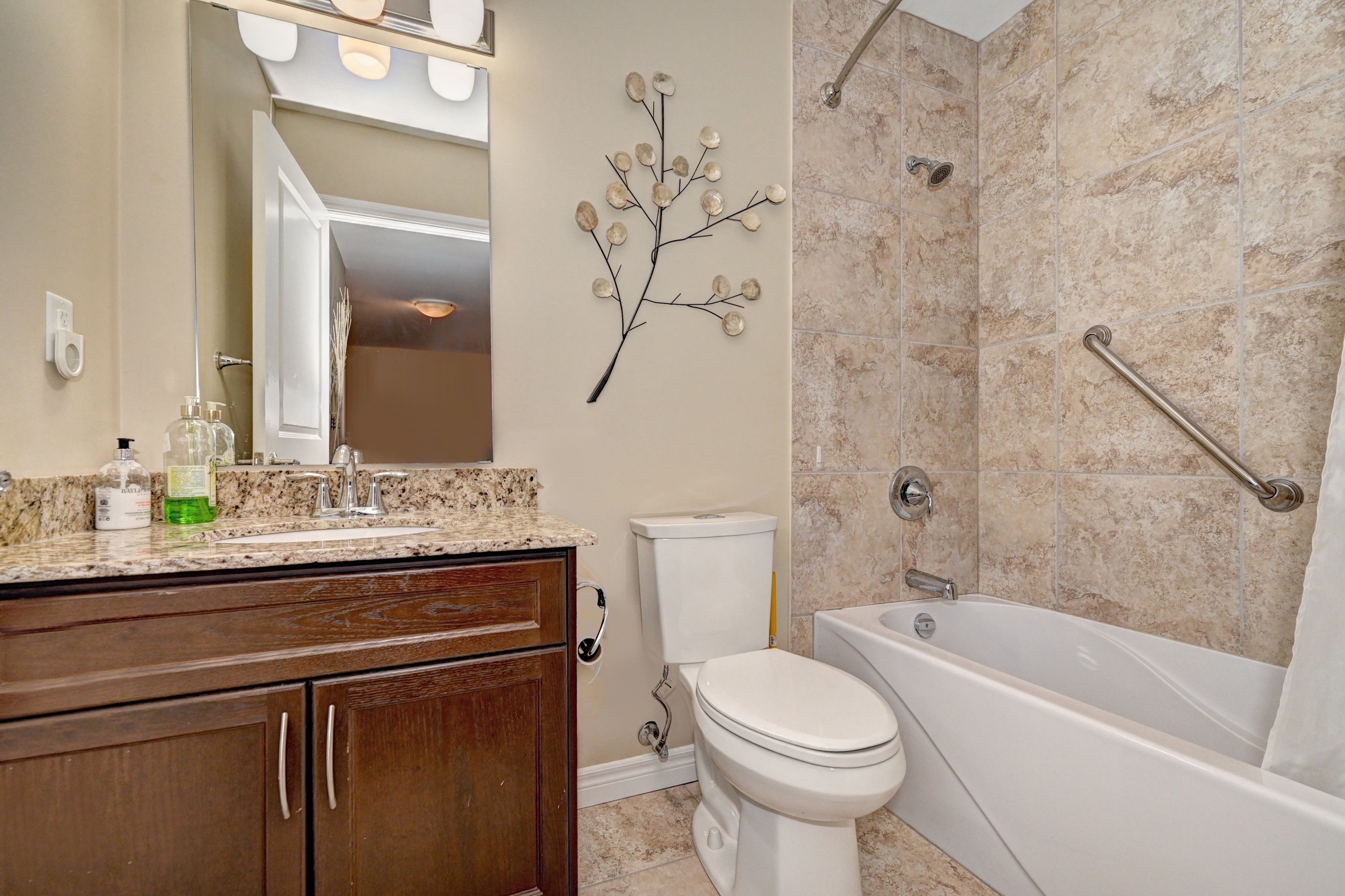 • Updated kitchen featuring granite countertops and stainless steel appliances.