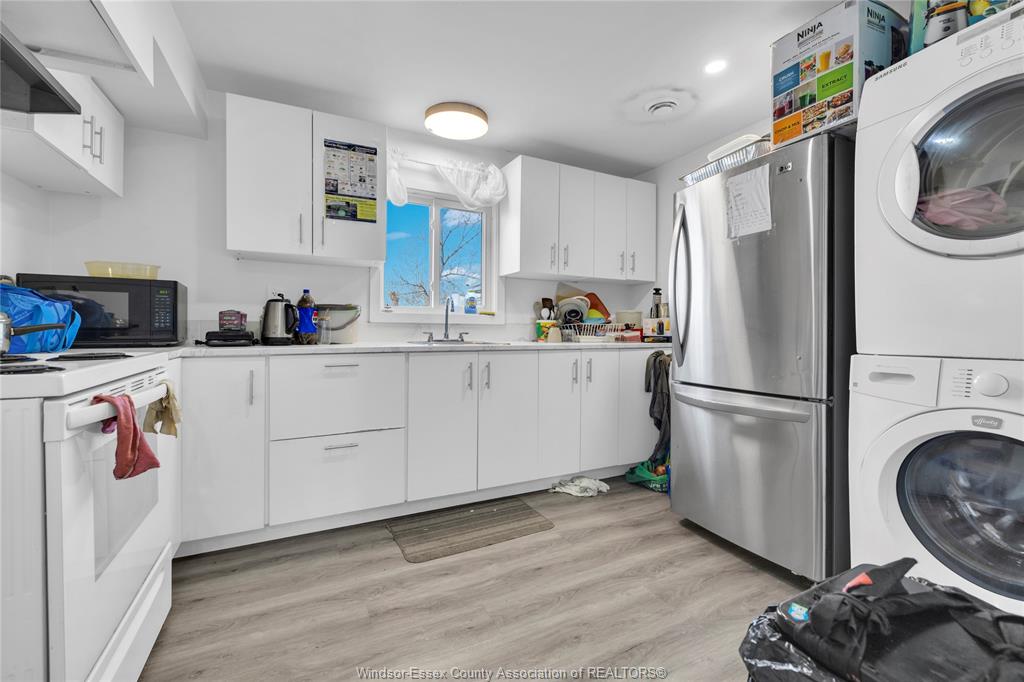 Fully renovated duplex offering a total of 8 bedrooms (5 above grade, 3 below) and 5 bathrooms (three 3-piece and two 2-piece), providing excellent flexibility for investors or multi-generational living. Extensively renovated in 2024, including roof, furnace, ac, full rewiring, plumbing, windows, and interior renovations. Each unit includes kitchen appliances and in-suite laundry. Features include laminate flooring throughout, a finished basement, sump pump with interior waterproofing membrane, and an owned tankless hot water system (2024). Exterior highlights include a fenced yard, covered porch, detached garage, and double width side driveway. Located close to the university of windsor, transit, and amenities, making this a strong opportunity for income potential or owner-occupancy. Appliances included!