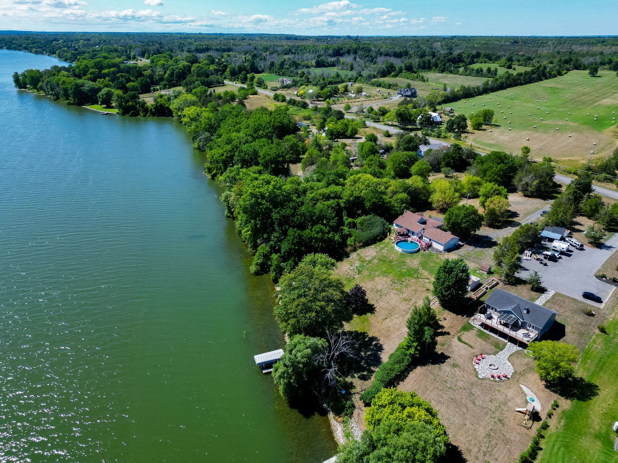 Your chance to enjoy the breathtaking views of lake ontario from this spacious waterfront home featuring over 190 feet of shoreline on just over 1. 5 acres of beautiful outdoor space. This 3-bedroom, 2-bath home includes a spacious private loft, bright sunrooms at both the front and back, an open kitchen/dining area and a cozy living room with a woodstove for those cooler nights. The rear sunroom walks out to a large deck with above-ground pool, perfect for summer entertaining. Recent upgrades provide peace of mind: new paint and flooring throughout, uv water system (2020), septic tank (2020), updated electrical receptacles (2020), outdoor showers (2021), and boat lift (2022). A well-sized garage adds great storage or workshop space. This is a turn-key waterfront property blending charm, functionality, and updates ready for you to enjoy lakeside living at its finest. Town confirmation that an air bnb would be permitted.