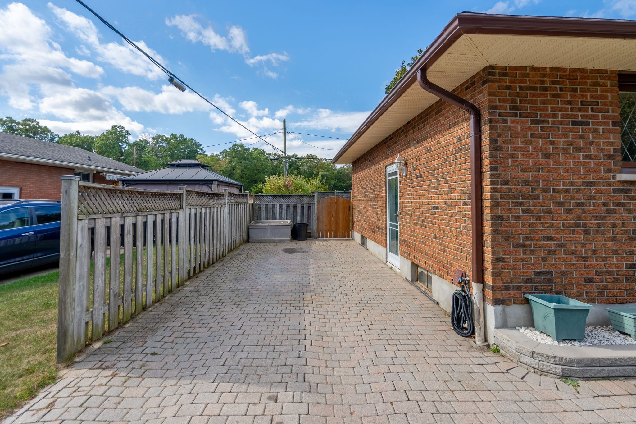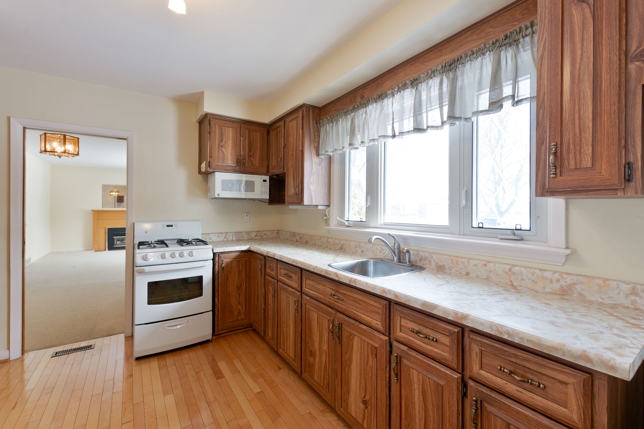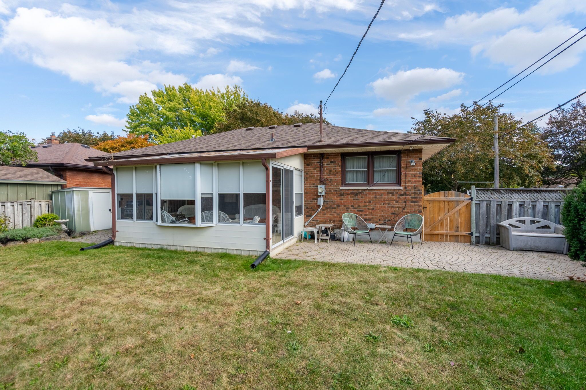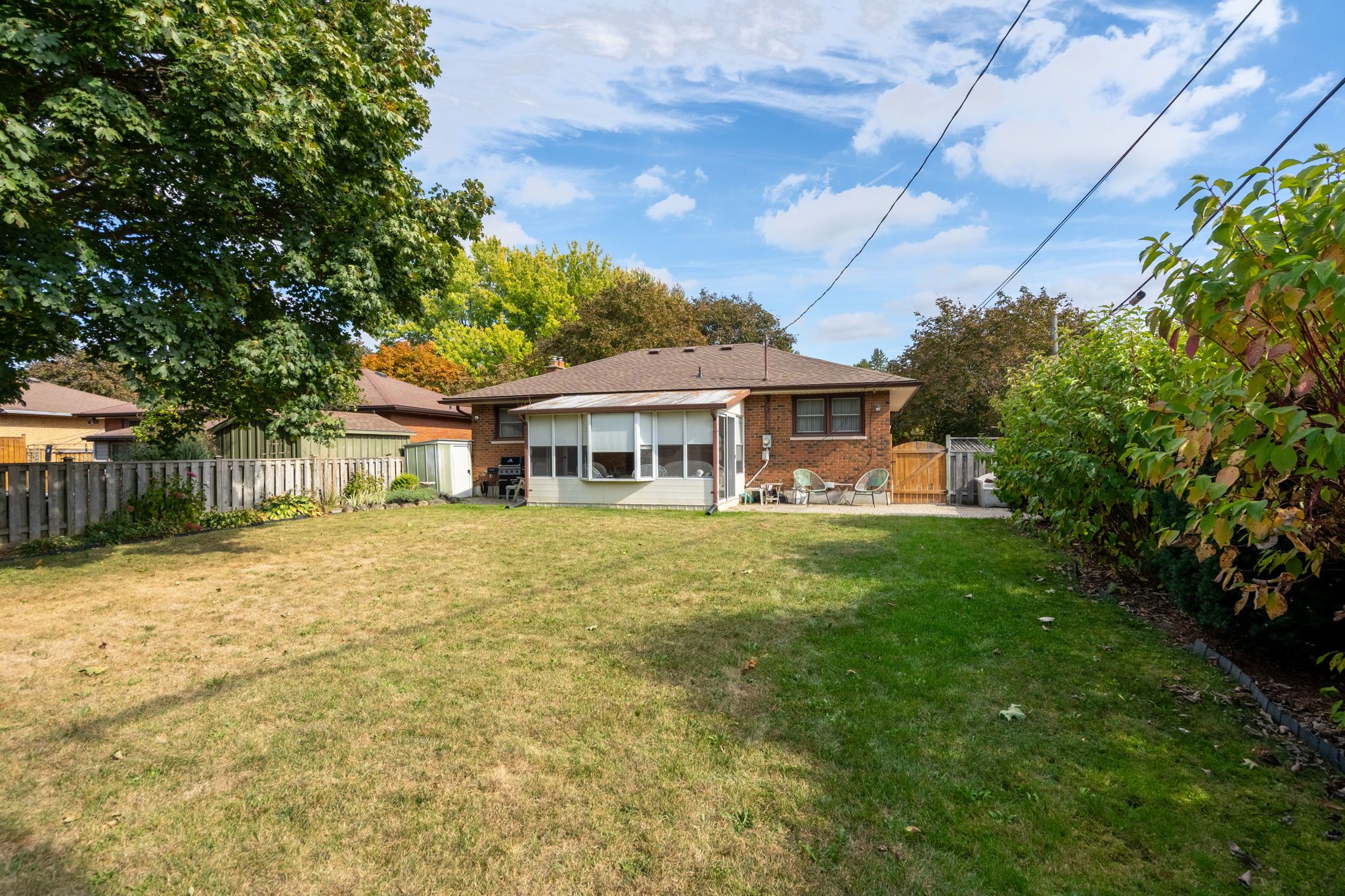 Cute and impeccably maintained bungalow in immaculate condition! Step into a foyer that opens to a bright living and dining area, featuring a cozy fireplace and large windows that fill the space with natural light. The home offers new double-pane vinyl windows throughout. The kitchen includes a generous window overlooking the front yard, creating a cheerful and functional space. Three comfortable bedrooms and a full 4-piece bath complete the main level. Enjoy additional living space in the large screened-in porch, perfect for relaxing or entertaining. The basement features a spacious rec room plus ample storage. Outside, you'll find a good-sized, fully fenced backyard backing directly onto st. Bernadette's park. Ideally located close to schools, parks, and all amenities.