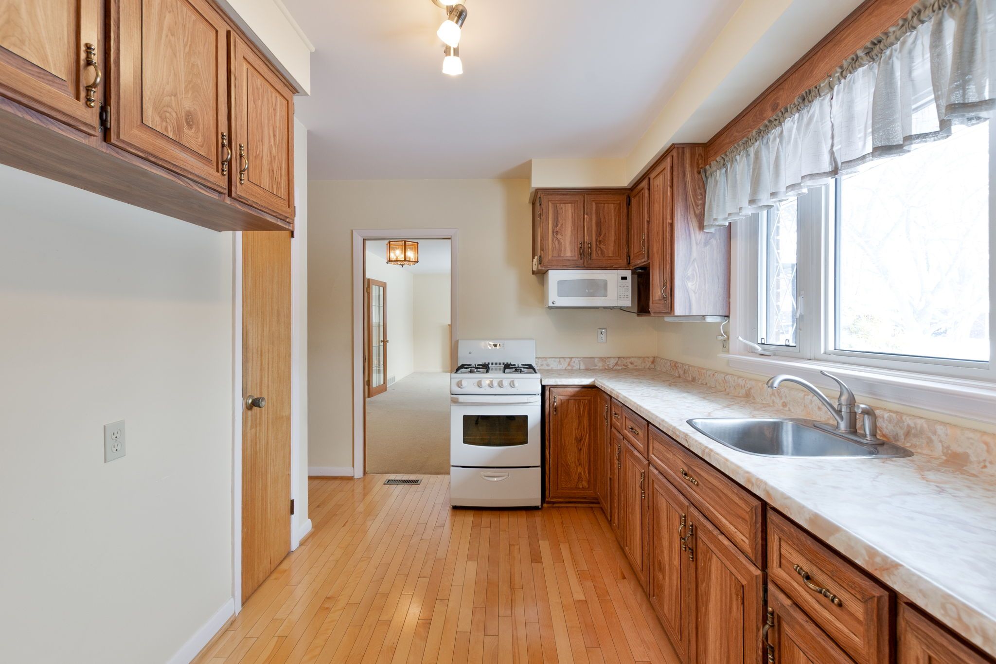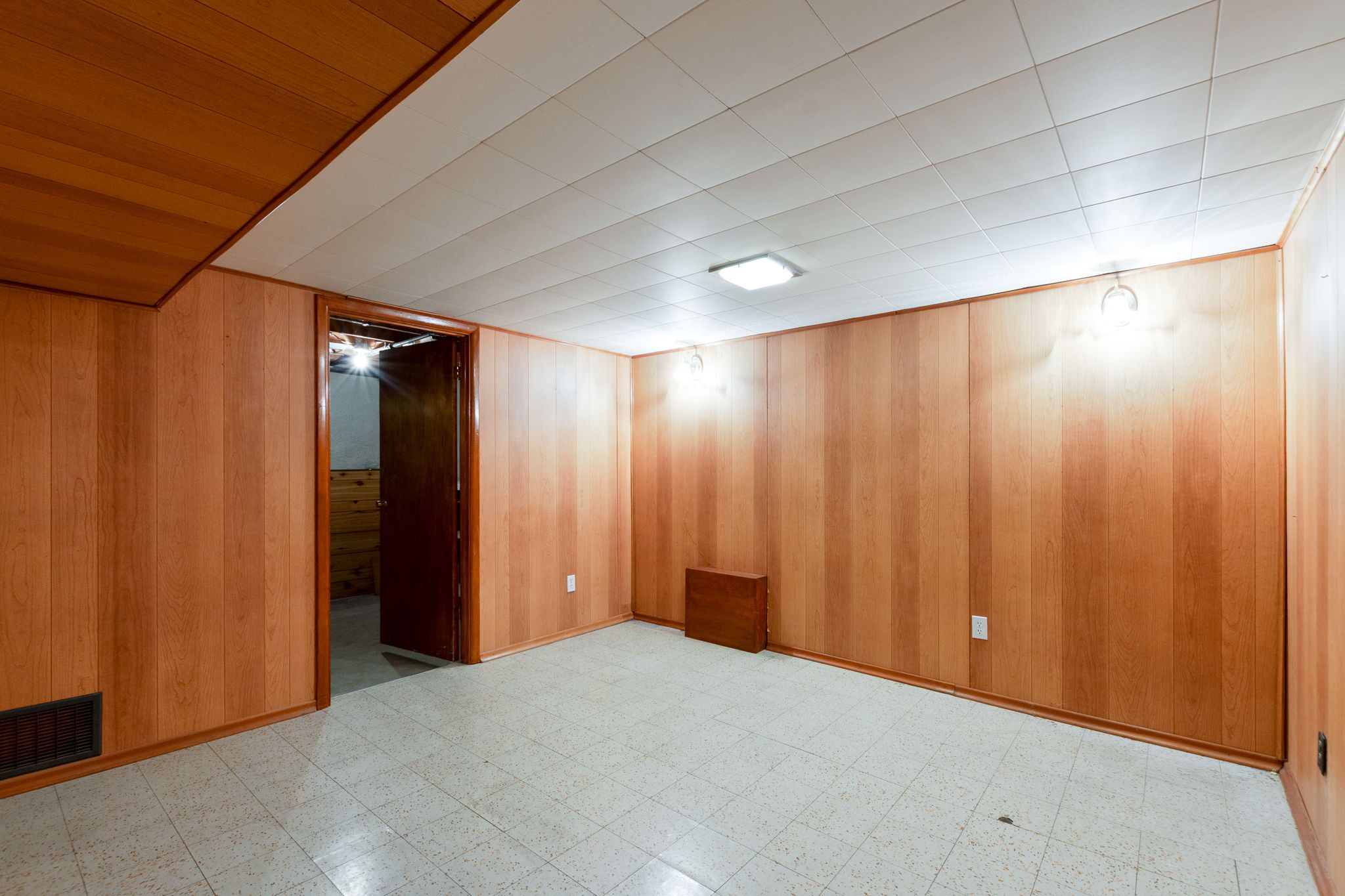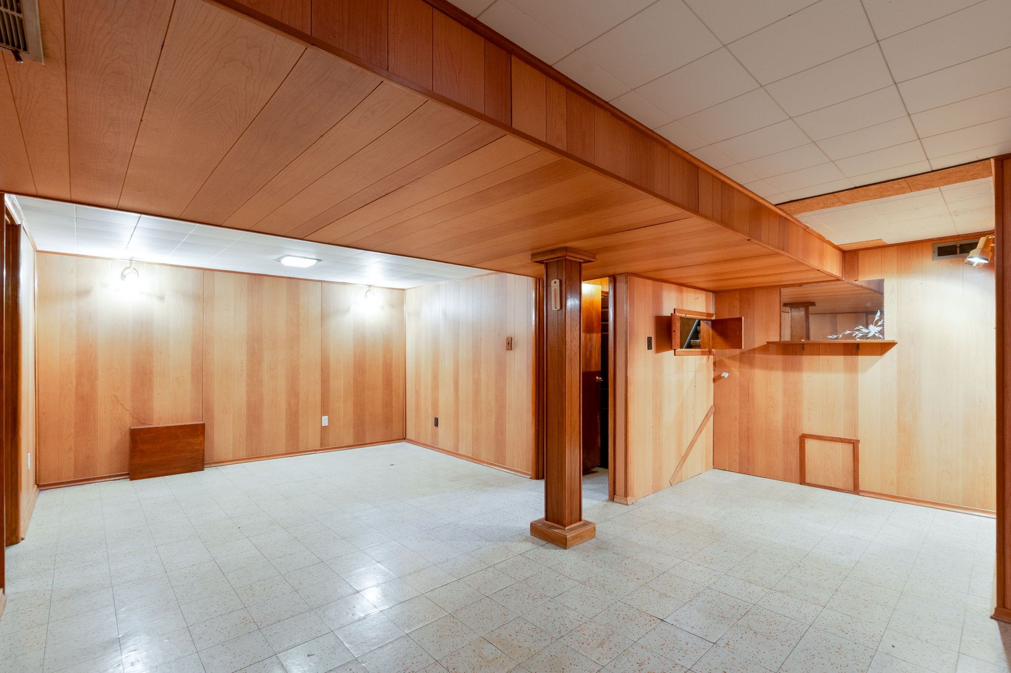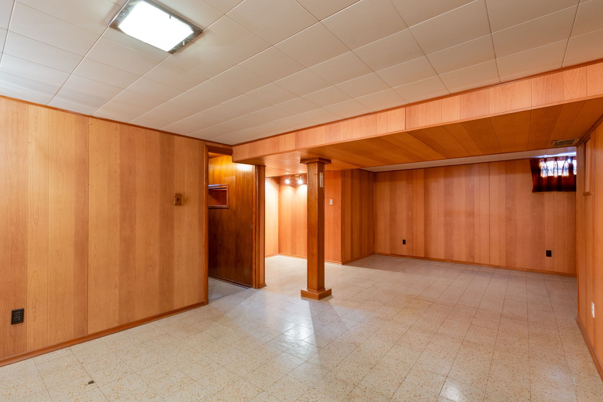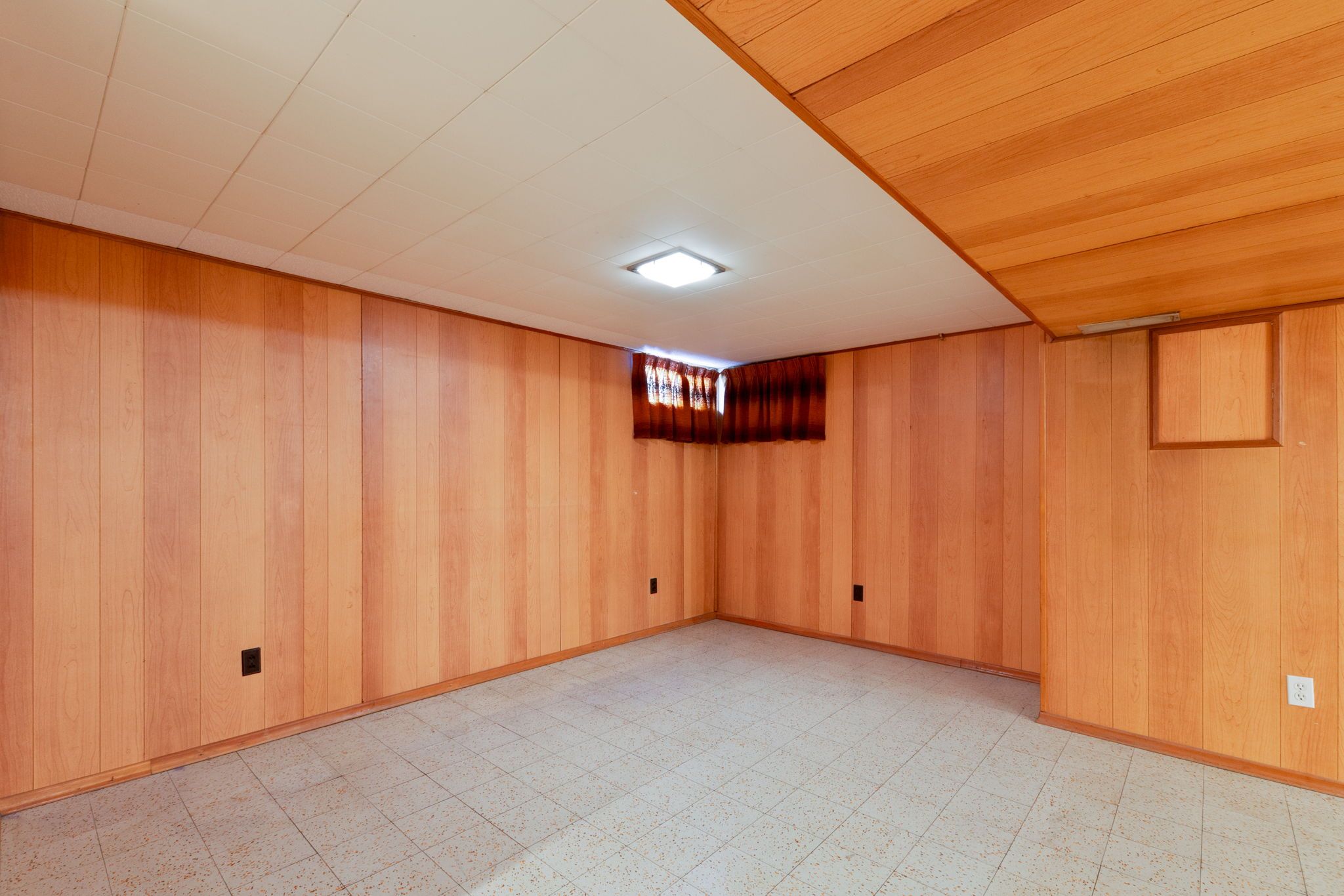 Cute and impeccably maintained bungalow in immaculate condition! Step into a foyer that opens to a bright living and dining area, featuring a cozy fireplace and large windows that fill the space with natural light. The home offers new double-pane vinyl windows throughout. The kitchen includes a generous window overlooking the front yard, creating a cheerful and functional space. Three comfortable bedrooms and a full 4-piece bath complete the main level. Enjoy additional living space in the large screened-in porch, perfect for relaxing or entertaining. The basement features a spacious rec room plus ample storage. Outside, you'll find a good-sized, fully fenced backyard backing directly onto st. Bernadette's park. Ideally located close to schools, parks, and all amenities.