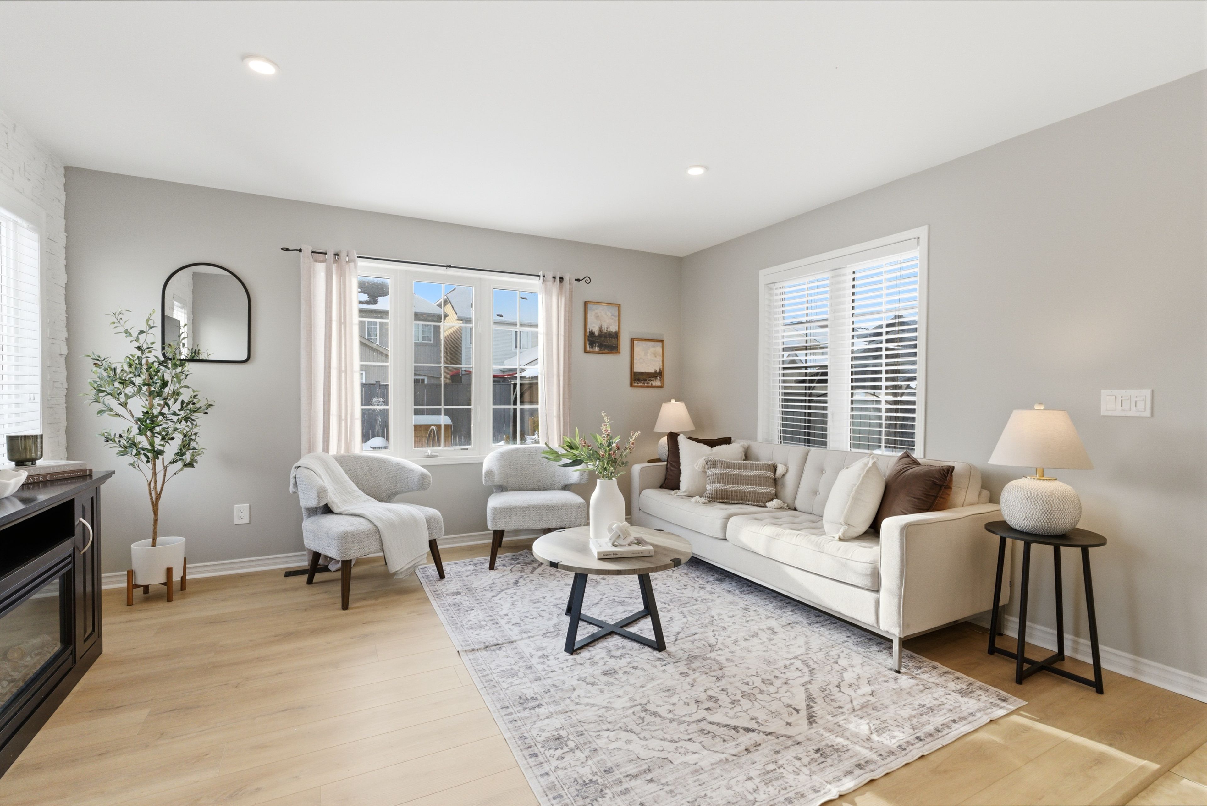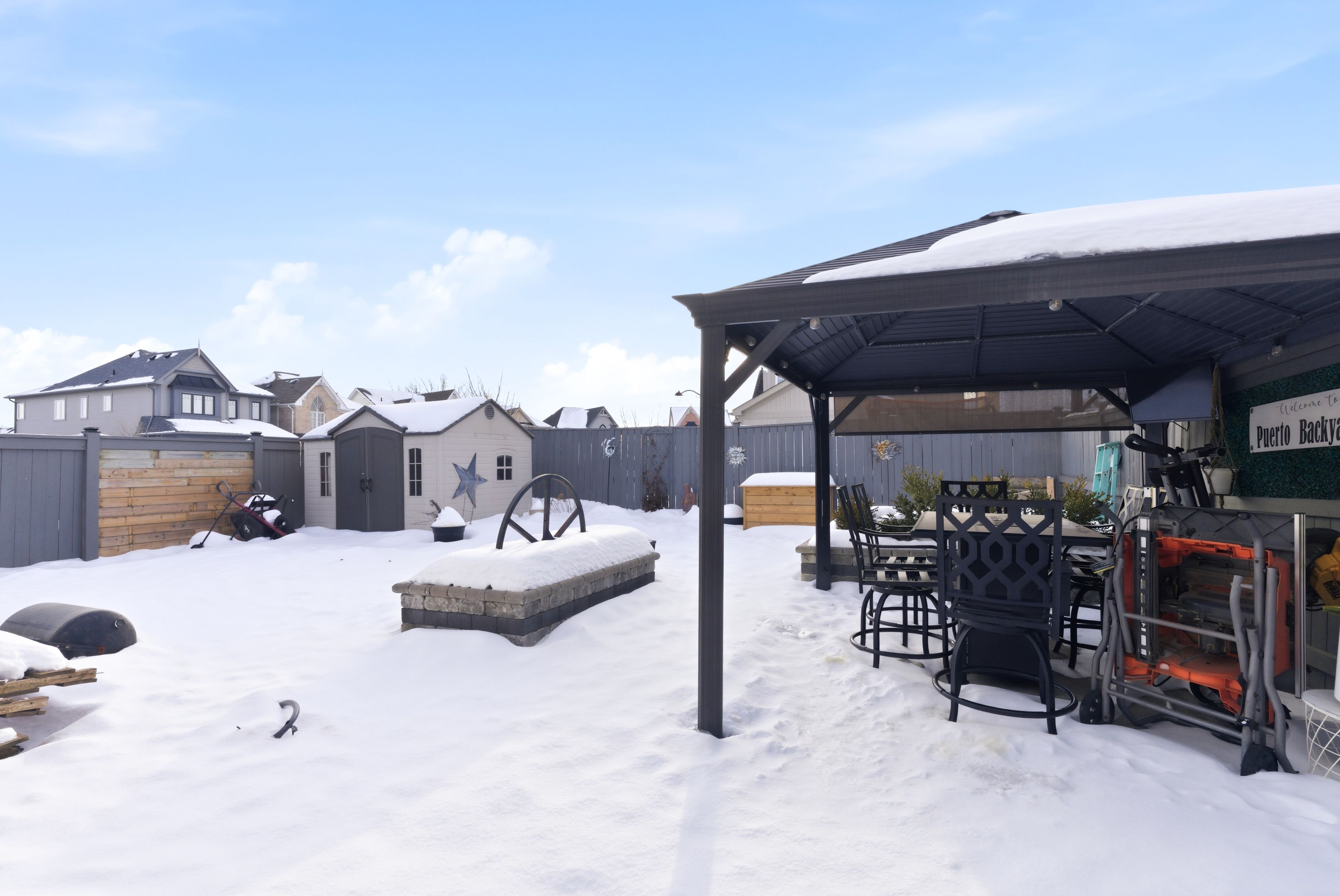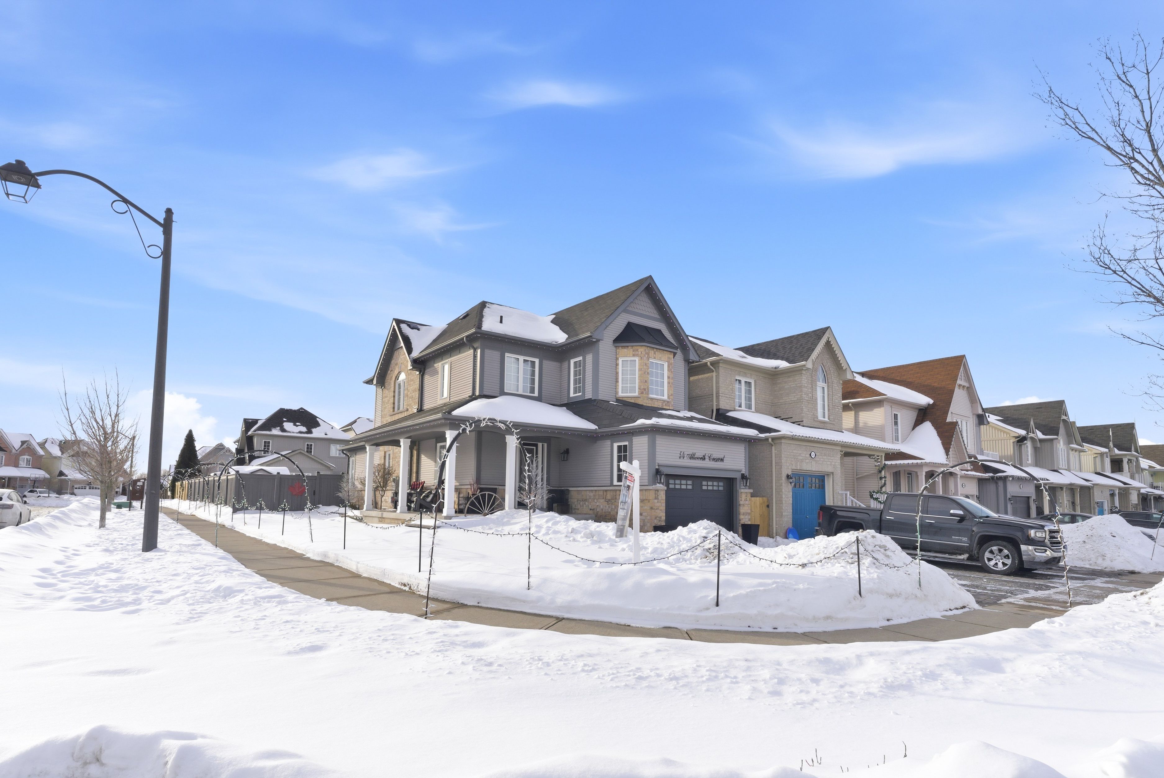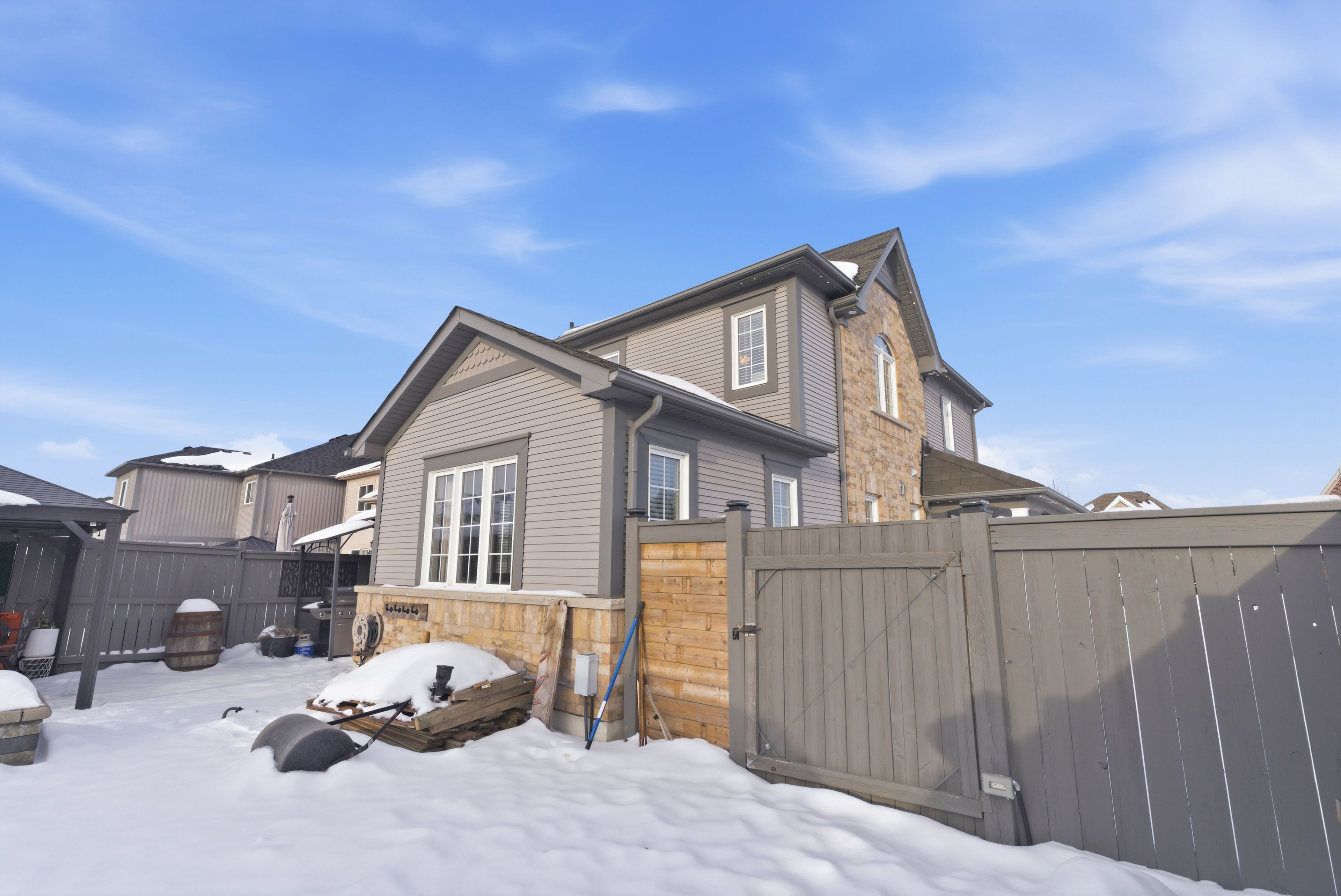 Welcome to this stunning corner-lot home in the highly sought-after liberty crossing community, where exceptional curb appeal meets thoughtful design. Set on a professionally landscaped premium lot, this property offers beauty, functionality, and space for the whole family. The sun-filled main floor showcases updated luxury vinyl flooring, upgraded lighting, and a warm, inviting family room highlighted by a striking stone feature wall. Expansive windows wrap the living space in natural light while offering picturesque views of the beautifully maintained backyard. The kitchen is designed for both everyday living and entertaining, featuring updated cabinetry, stainless steel appliances, ample counter space, stylish backsplash, and a spacious breakfast area with a walkout to your private backyard oasis. Enjoy summer evenings in the generously sized yard - perfect for hosting family and friends. The front yard has irrigation system and recently installed gemstone lights. Upstairs, the thoughtfully designed floor plan offers oversized bedrooms and laundry ideal for a growing family and convenience, providing comfort and flexibility for years to come. The fully finished basement is a true standout, offering a large recreation room with endless possibilities - whether you envision a media room, games area, home gym, or additional living space. There is also a rough-in for an easy fourth bathroom. Abundant storage ensures everything has its place. One of the home's most unique features is the fully insulated and heated garage, complete with a custom bar - an entertainer's dream. It's perfectly suited for a handyman or a workshop. This exceptional property blends style, space, and standout features in one incredible package. You won't want to miss the opportunity to call it home.