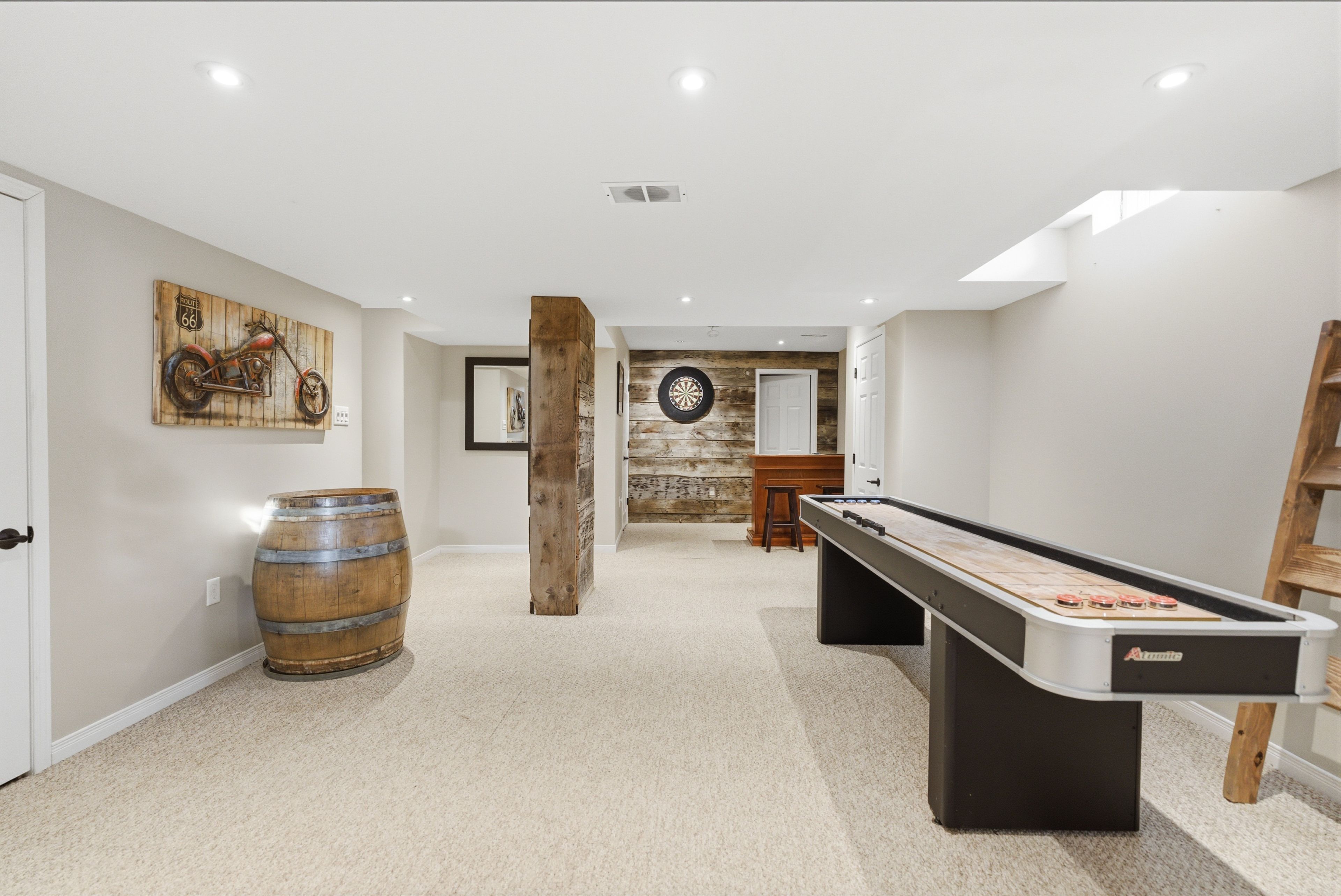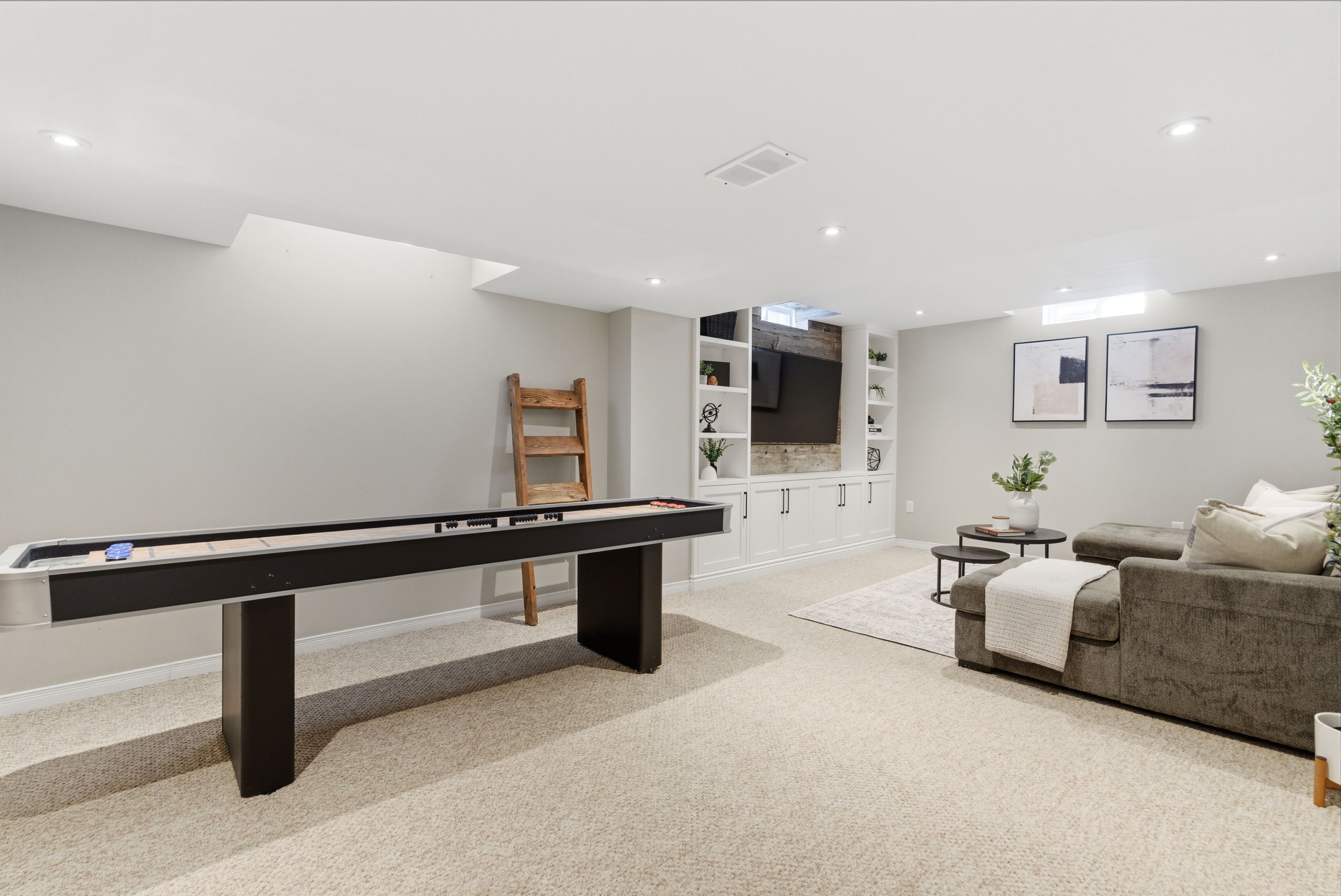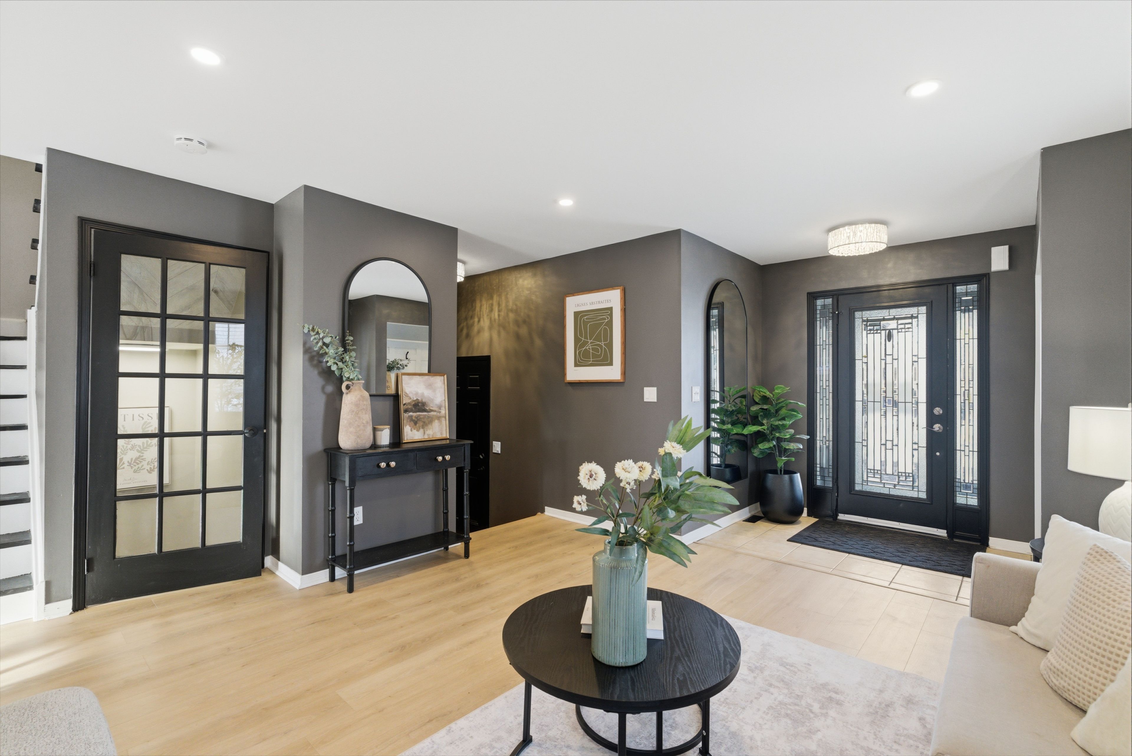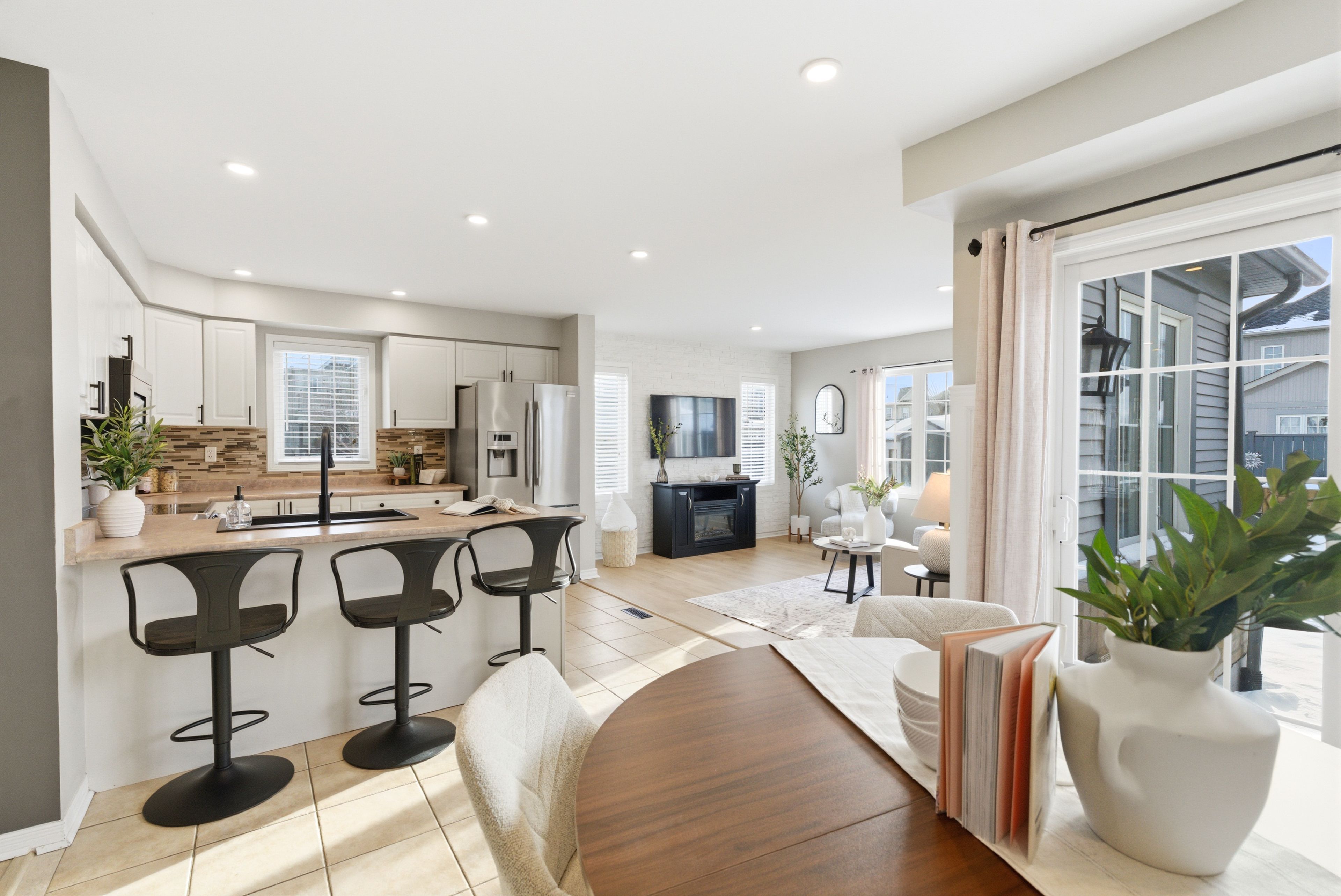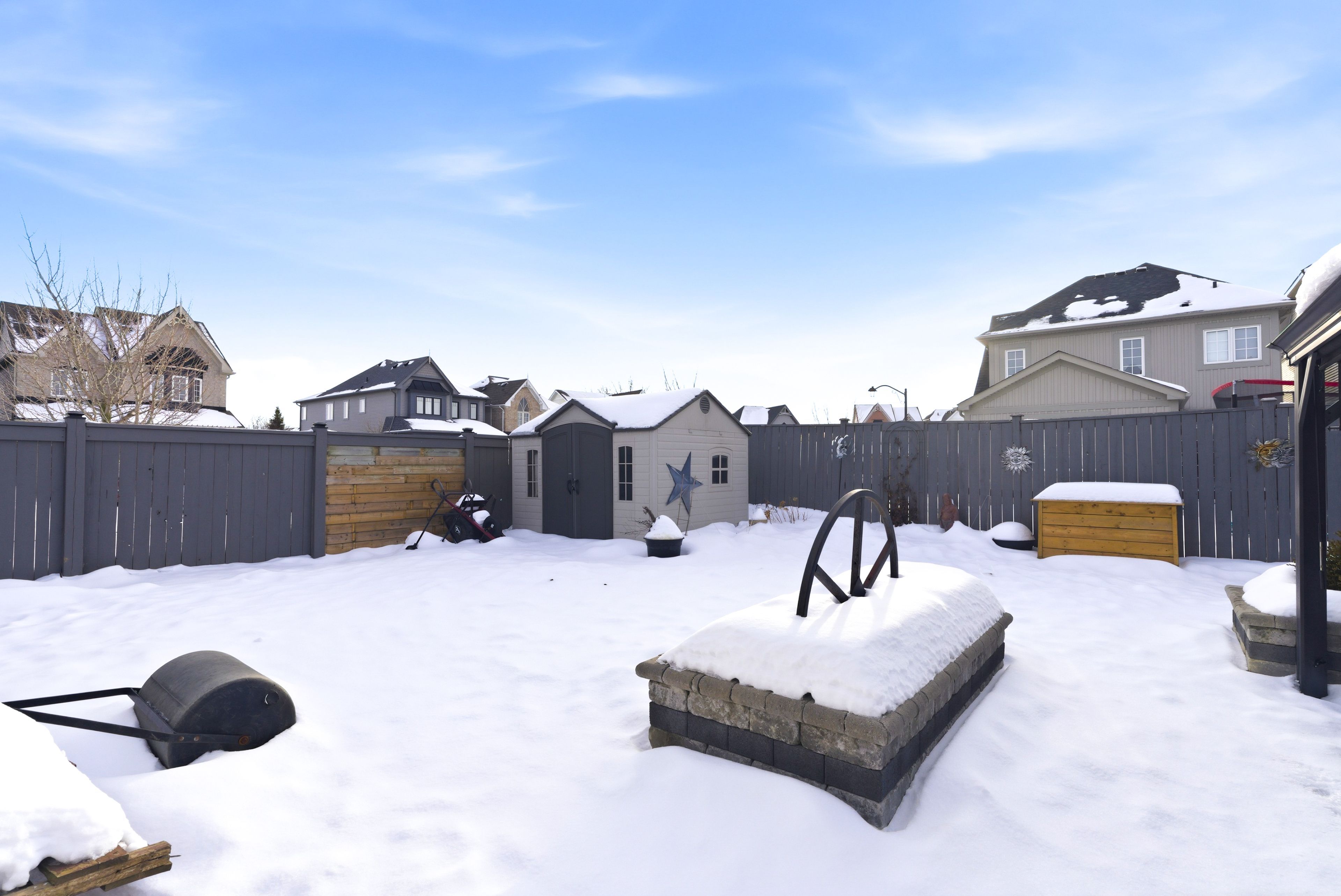 Welcome to this stunning corner-lot home in the highly sought-after liberty crossing community, where exceptional curb appeal meets thoughtful design. Set on a professionally landscaped premium lot, this property offers beauty, functionality, and space for the whole family. The sun-filled main floor showcases updated luxury vinyl flooring, upgraded lighting, and a warm, inviting family room highlighted by a striking stone feature wall. Expansive windows wrap the living space in natural light while offering picturesque views of the beautifully maintained backyard. The kitchen is designed for both everyday living and entertaining, featuring updated cabinetry, stainless steel appliances, ample counter space, stylish backsplash, and a spacious breakfast area with a walkout to your private backyard oasis. Enjoy summer evenings in the generously sized yard - perfect for hosting family and friends. The front yard has irrigation system and recently installed gemstone lights. Upstairs, the thoughtfully designed floor plan offers oversized bedrooms and laundry ideal for a growing family and convenience, providing comfort and flexibility for years to come. The fully finished basement is a true standout, offering a large recreation room with endless possibilities - whether you envision a media room, games area, home gym, or additional living space. There is also a rough-in for an easy fourth bathroom. Abundant storage ensures everything has its place. One of the home's most unique features is the fully insulated and heated garage, complete with a custom bar - an entertainer's dream. It's perfectly suited for a handyman or a workshop. This exceptional property blends style, space, and standout features in one incredible package. You won't want to miss the opportunity to call it home.