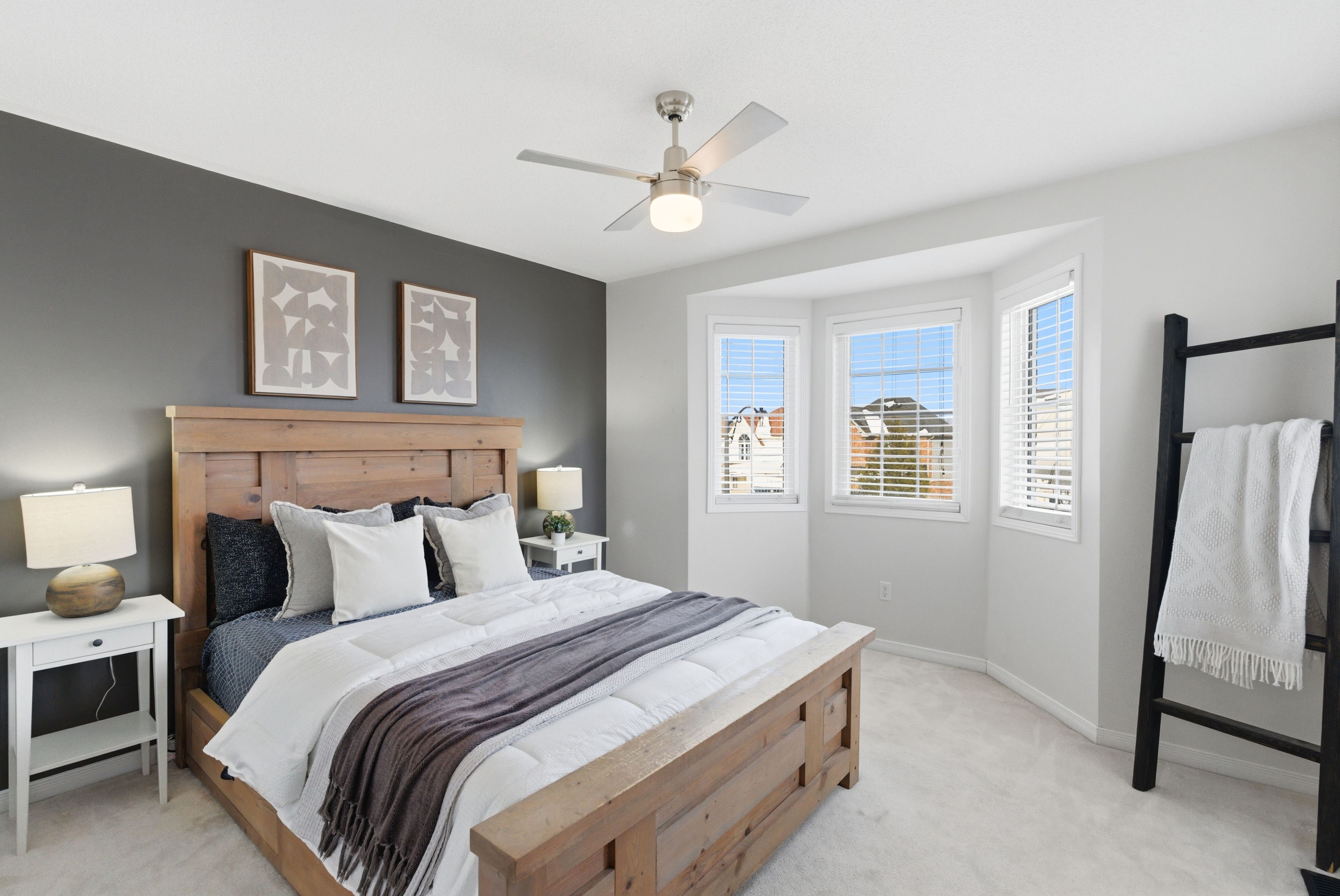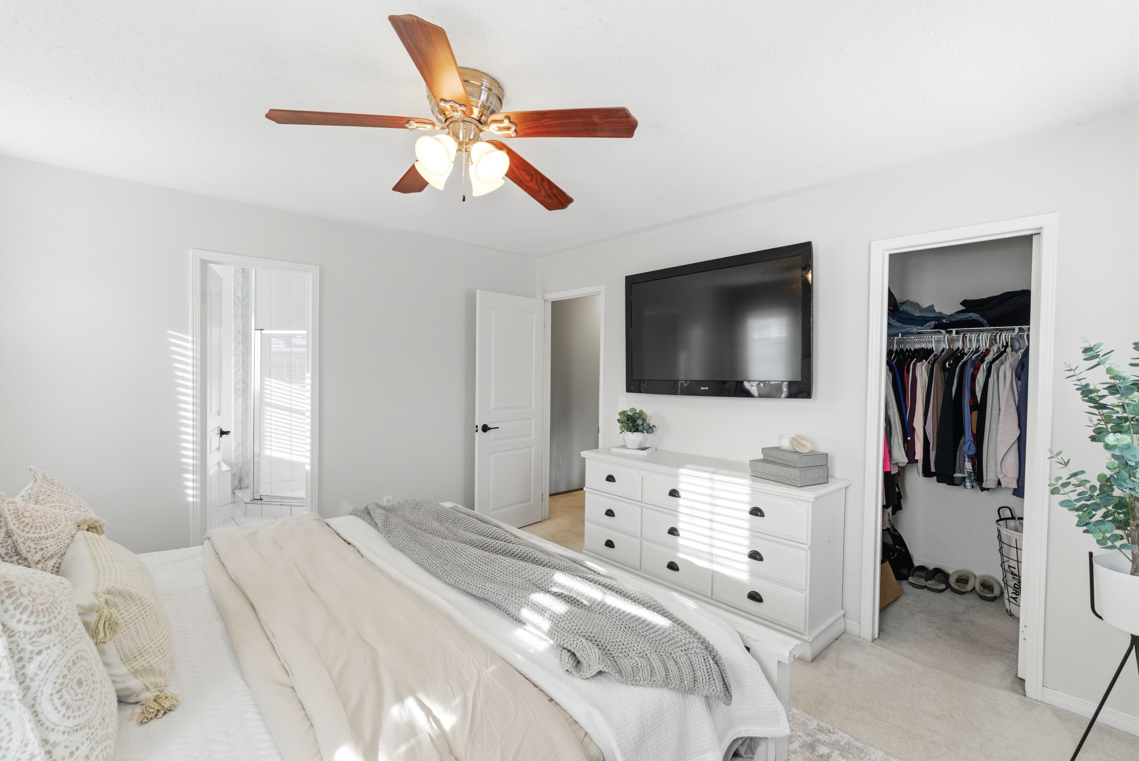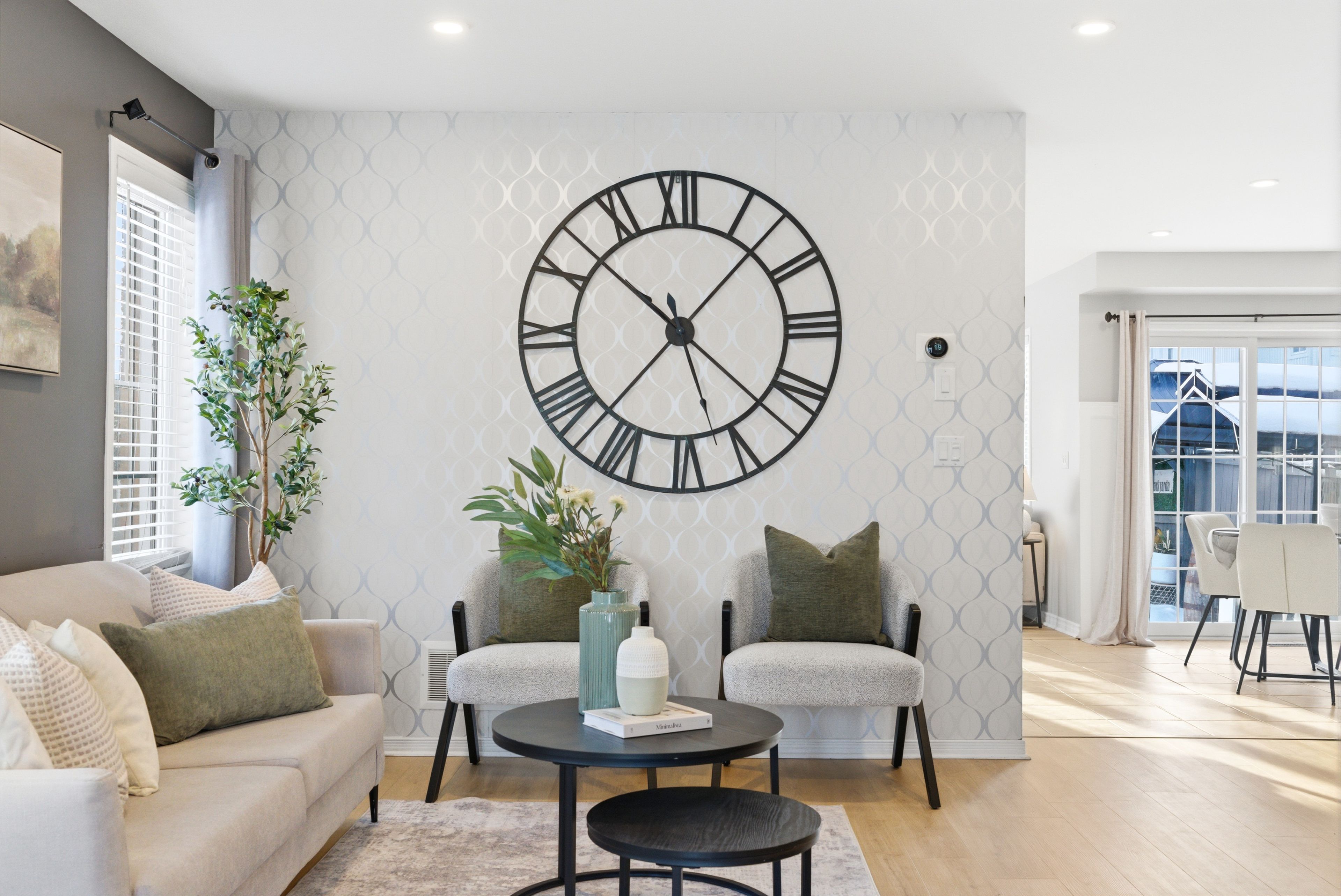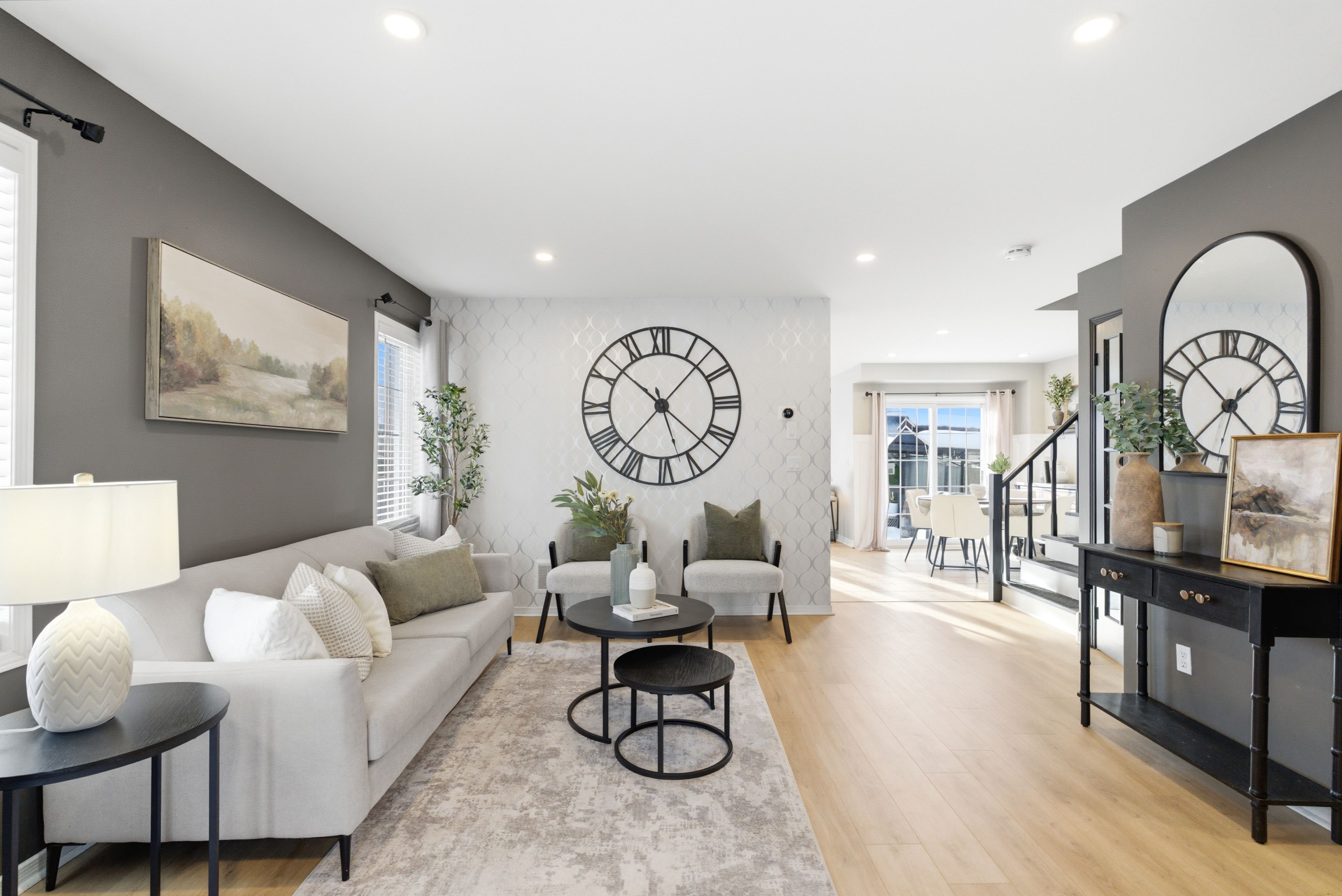 Welcome to this stunning corner-lot home in the highly sought-after liberty crossing community, where exceptional curb appeal meets thoughtful design. Set on a professionally landscaped premium lot, this property offers beauty, functionality, and space for the whole family. The sun-filled main floor showcases updated luxury vinyl flooring, upgraded lighting, and a warm, inviting family room highlighted by a striking stone feature wall. Expansive windows wrap the living space in natural light while offering picturesque views of the beautifully maintained backyard. The kitchen is designed for both everyday living and entertaining, featuring updated cabinetry, stainless steel appliances, ample counter space, stylish backsplash, and a spacious breakfast area with a walkout to your private backyard oasis. Enjoy summer evenings in the generously sized yard - perfect for hosting family and friends. The front yard has irrigation system and recently installed gemstone lights. Upstairs, the thoughtfully designed floor plan offers oversized bedrooms and laundry ideal for a growing family and convenience, providing comfort and flexibility for years to come. The fully finished basement is a true standout, offering a large recreation room with endless possibilities - whether you envision a media room, games area, home gym, or additional living space. There is also a rough-in for an easy fourth bathroom. Abundant storage ensures everything has its place. One of the home's most unique features is the fully insulated and heated garage, complete with a custom bar - an entertainer's dream. It's perfectly suited for a handyman or a workshop. This exceptional property blends style, space, and standout features in one incredible package. You won't want to miss the opportunity to call it home.