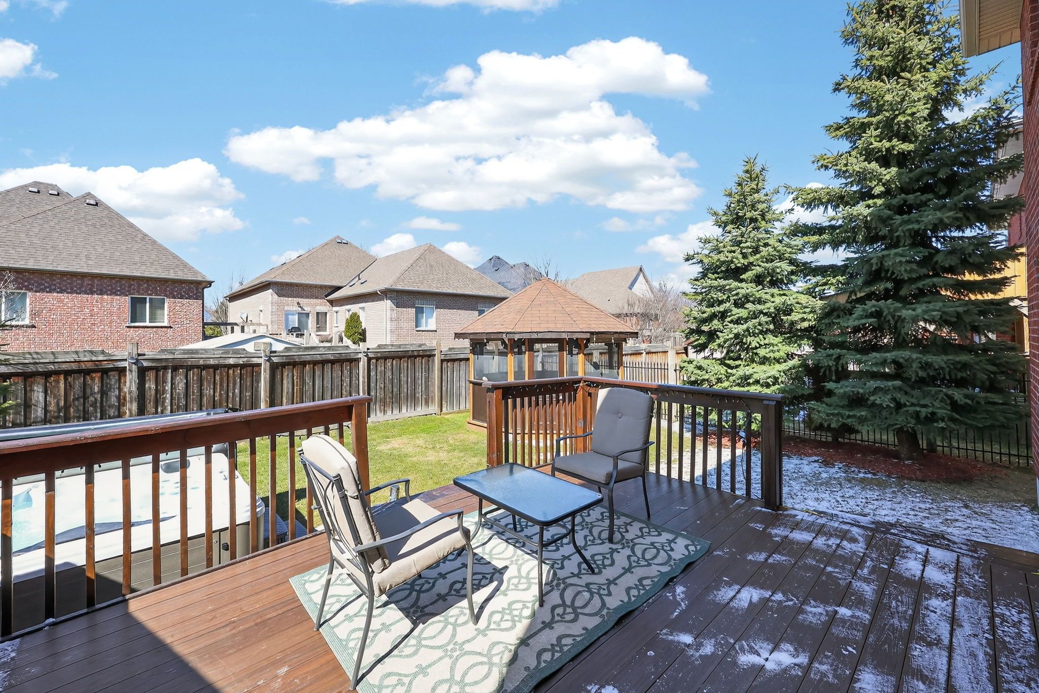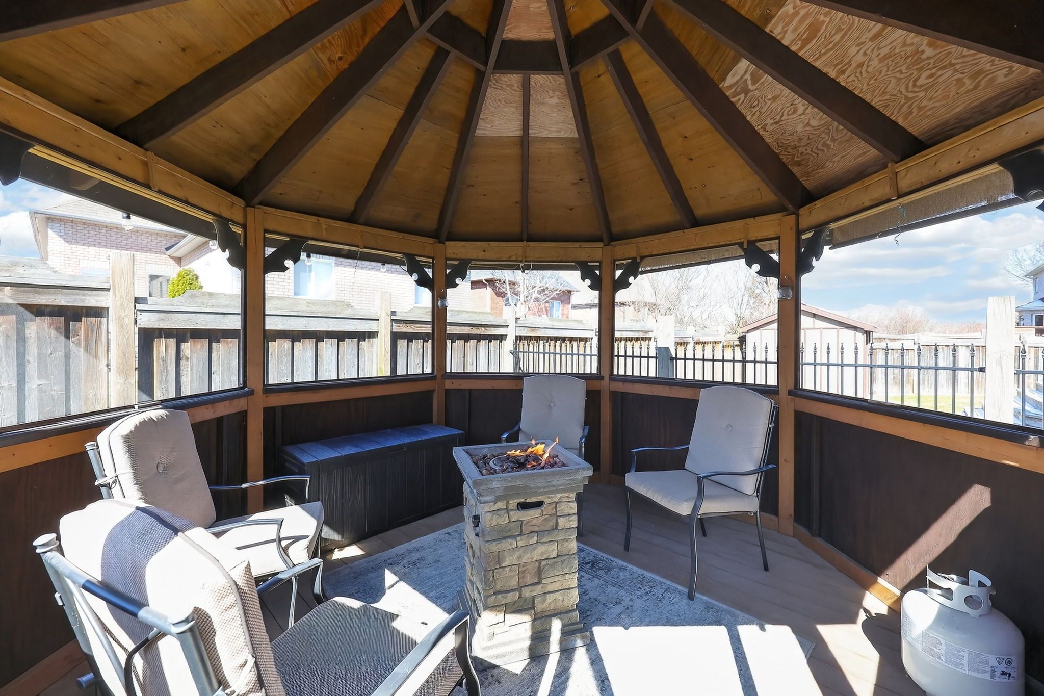 • Backyard oasis with fenced yard, gazebo, hot tub, and spacious deck.