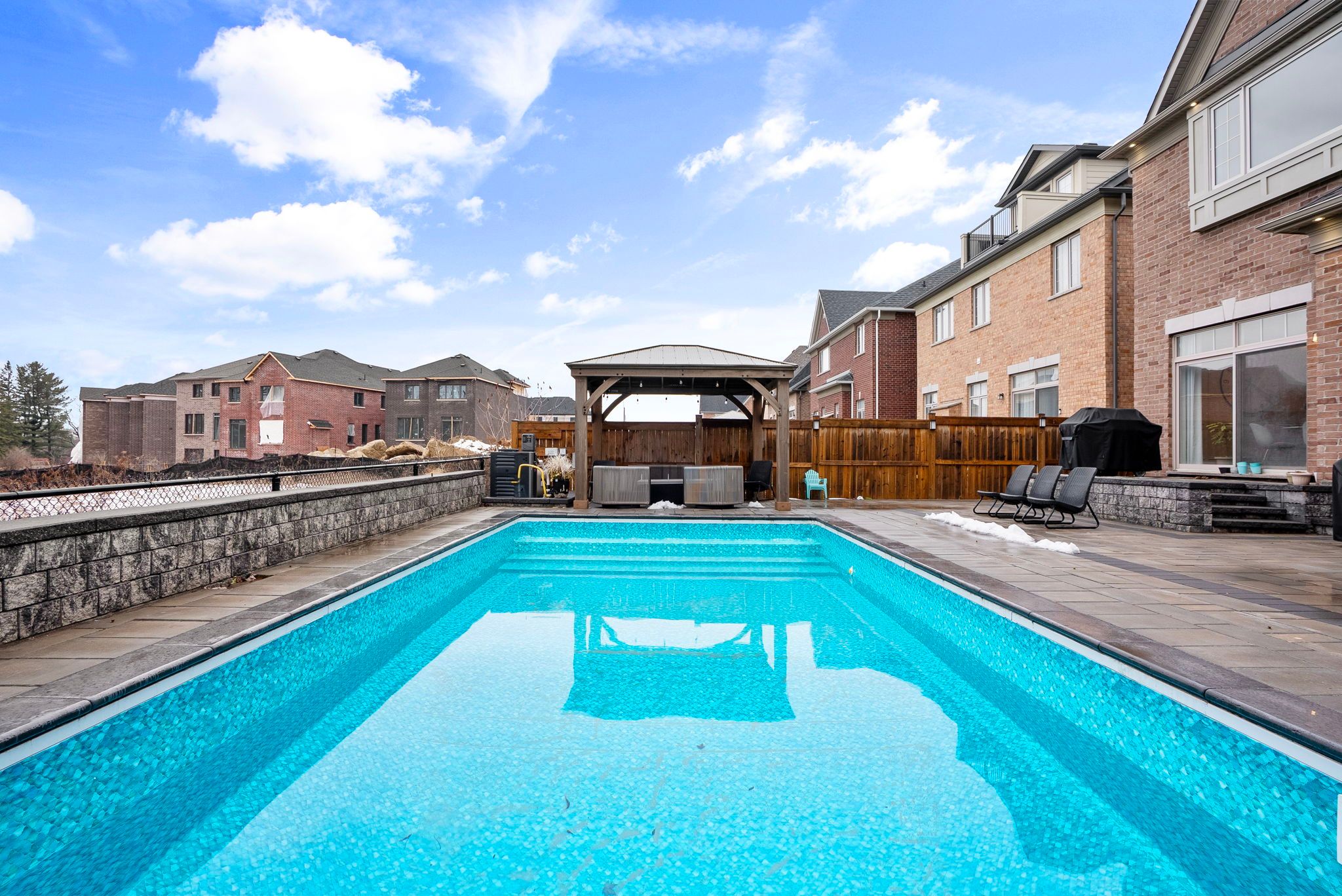 One of a kind absolute show stopper. Don't miss out. Heathwood's flagship 4509 square foot beech field model in country lane's only private enclave. School bus directly to the street, and zero through traffic. Designed for comfort, this bespoke home is an entertainer's dream. Built in 2020 and fully customized over the years from top to bottom inside and out. Over$500k in quality upgrades. 11ft ceilings on main, 10ft on upper, 9ft in builder finished basement. Upgraded 8ft sound insulated interior doors. Custom lighting, high end drapes, wall carpentry and engineered hardwood floors throughout main and upper levels. Custom wall-to-wall built-ins in office and 2nd floor laundry. Walk-in linen closet. Gas fireplace, a/v conduit and waffled ceilings in large family room. Custom gourmet kitchen with expanded island, under cabinet lighting and pro-series appliances. Upgraded butler pantry + walk in pantry. Large bedrooms - each with attached bathrooms and walk in closets. Massive primary suite features two walk in closets and custom ensuite with plenty of storage and 25sf frameless glass shower. Upgraded custom vanities with quartz in each bathroom. Private ravine lot fully landscaped with high end pavers all around with 4 season heated in-ground salt water pool with safety cover, cedar gazebo and natural gas hookup. Basement features large recreation room, additional bedroom and full bath - as well as aprox 1000sf of additional unfinished space perfect for further development. Full exterior soffit lighting all around. Car lift in garage making room for 3rd vehicle. Level 2 ev charger hookup. Ev and pool electrical work approved by esa. Balance of tarion new home warranty (until 2027).