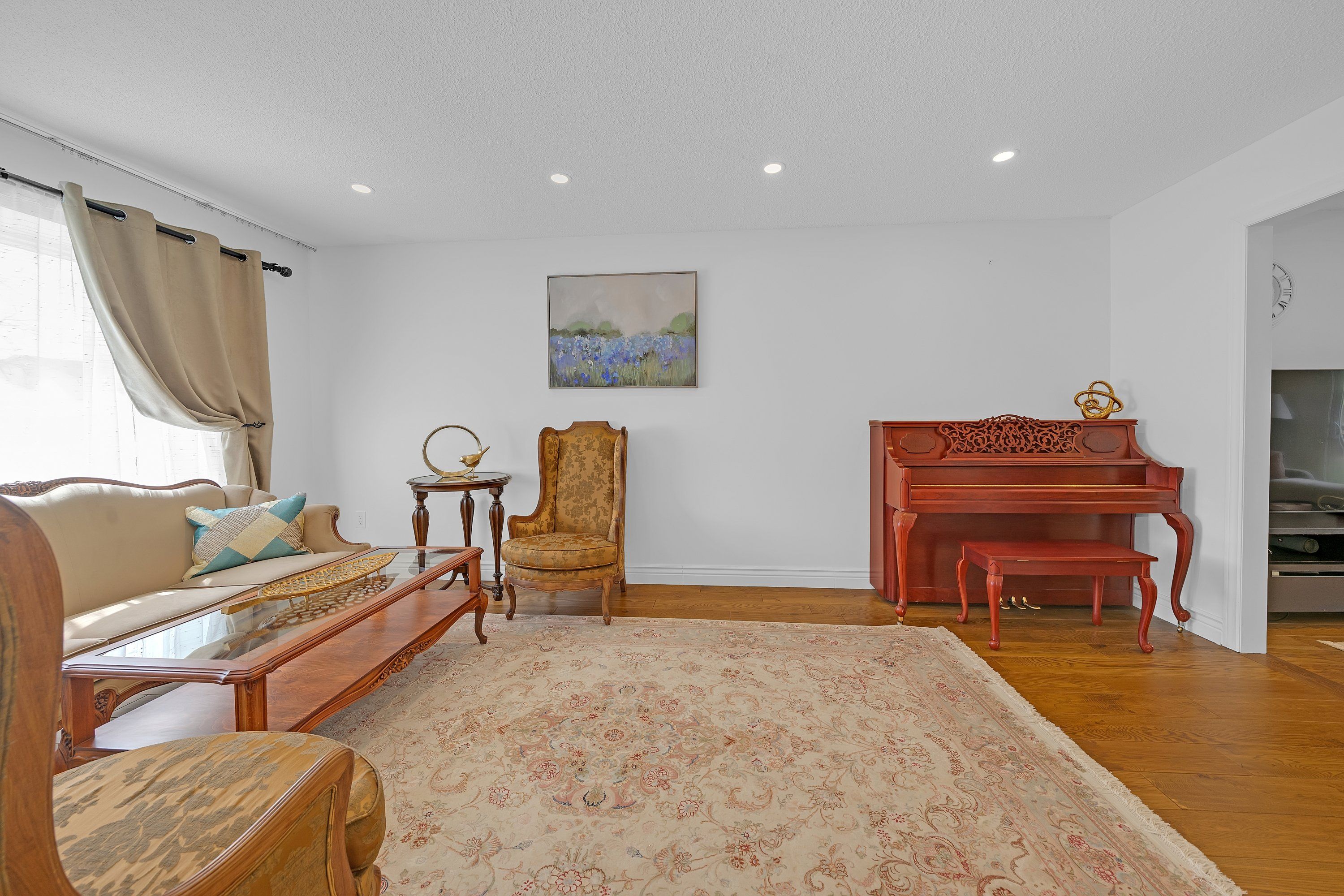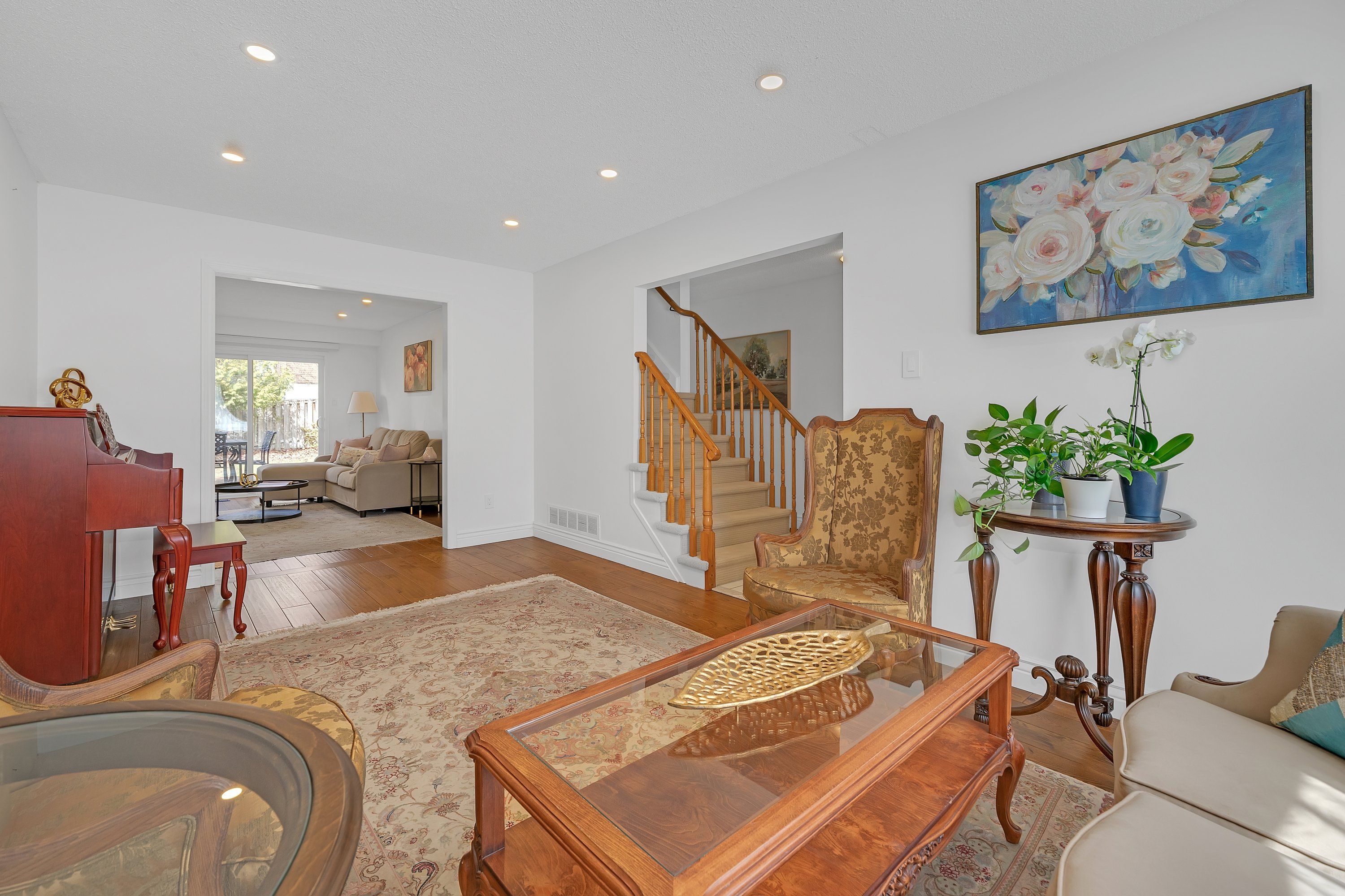 • Elegant living and dining rooms with a warm family room and fireplace.