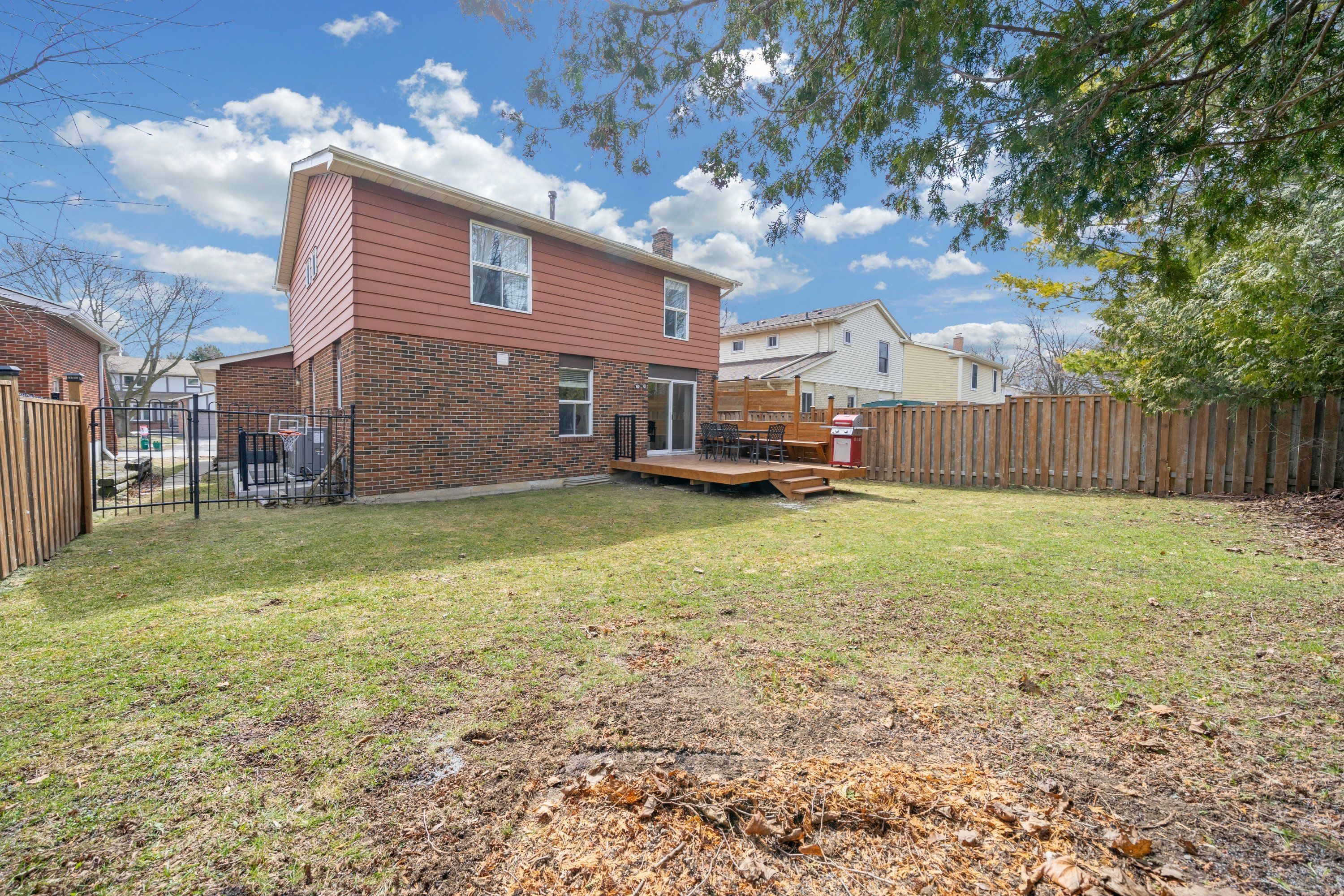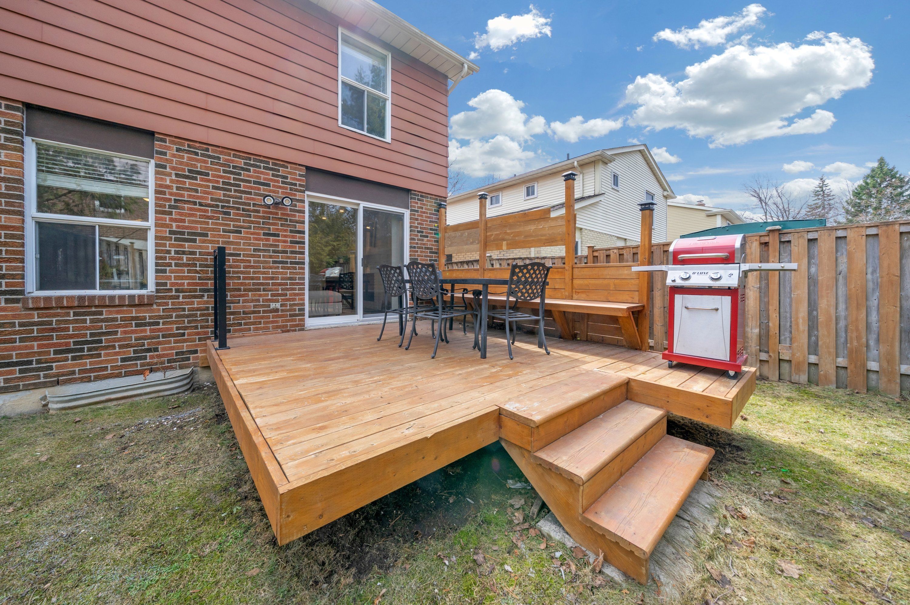 • Private backyard with a new deck and built-in seating for outdoor enjoyment.
