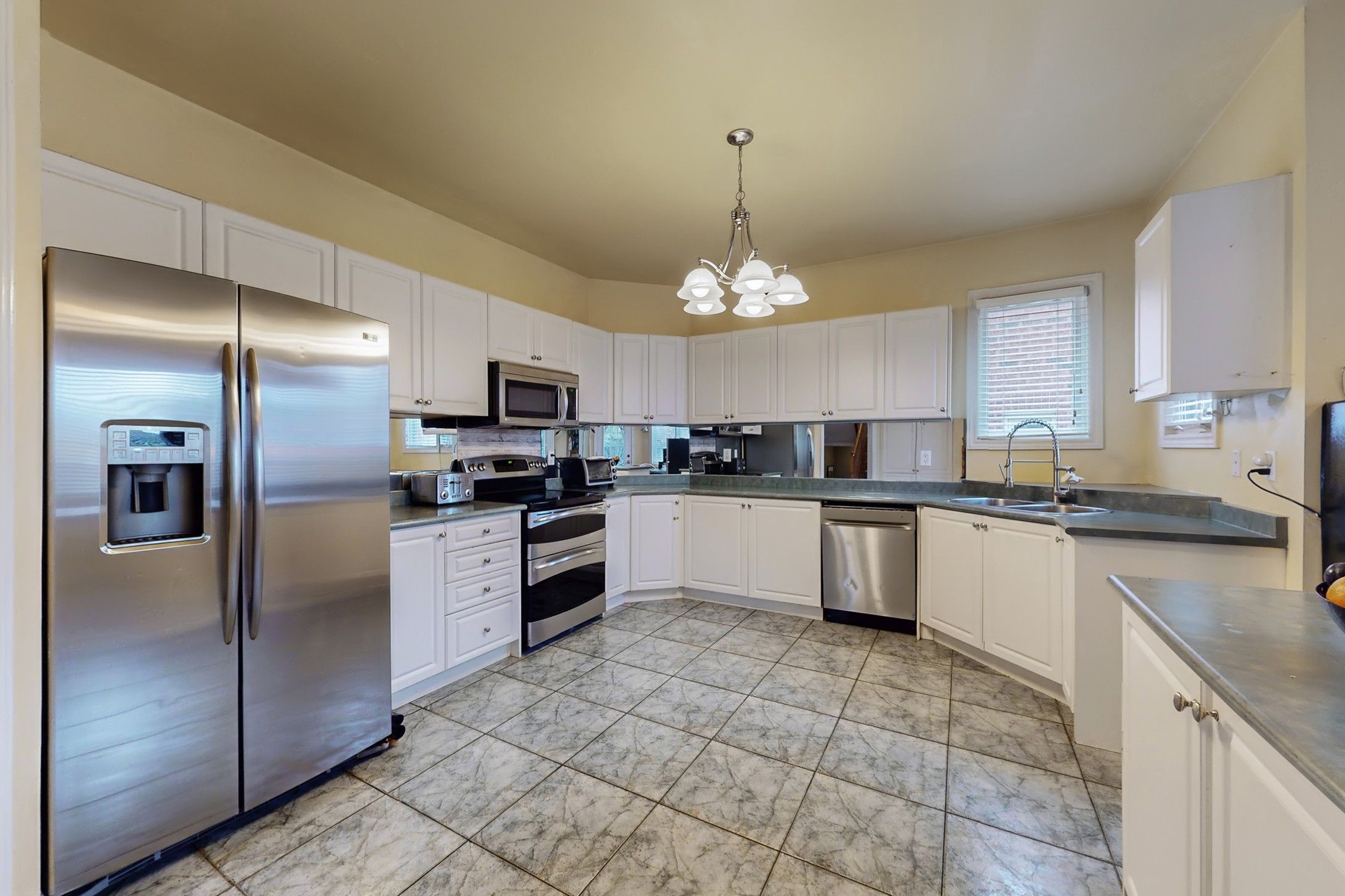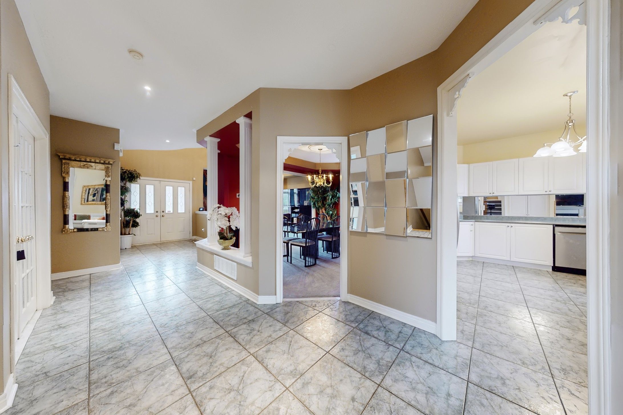 • Open-concept layout connecting living, dining, and family rooms.