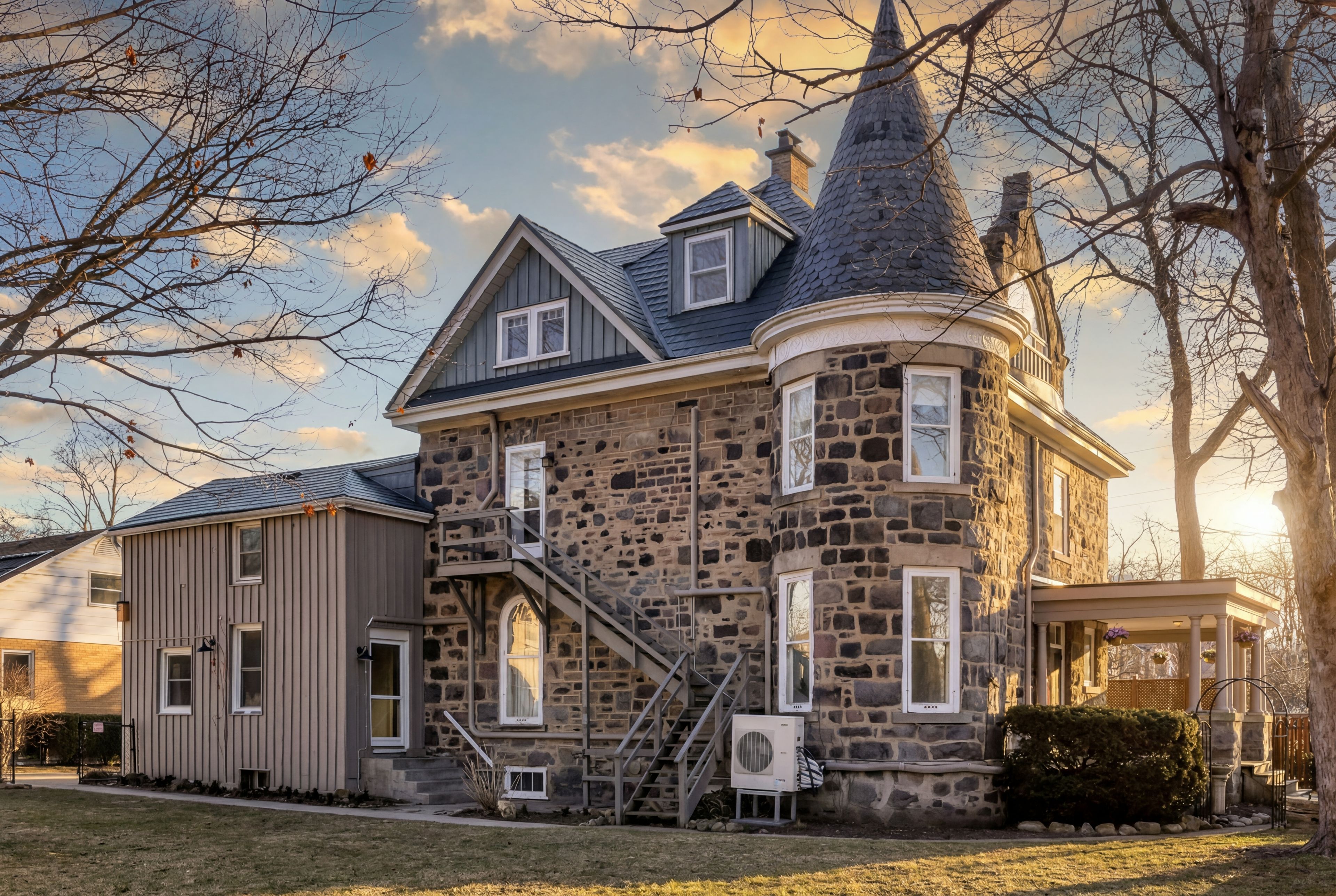 Built in 1859 by thomas and james dalgleish, master stone masons whose hands shaped much of galt's enduring character, 54 bruce st. Is a home with a story to tell. Recently added to cambridge's heritage registry, this three-storey stone residence carries the kind of presence that stops you mid-step. The arched window openings, the original woodwork, the deep stone walls; every detail speaks to a time when homes were not assembled but crafted, built from materials meant to last by hands that understood both structure and beauty. At 4,780 sq ft with 6 bedrooms and 5 bathrooms, the home offers space & substance in equal measure. Over $200,000 in thoughtful renovations since 2022 have addressed the essentials, including a full electrical upgrade replacing knob and tube, updated plumbing, new air conditioning across three floors, refinished hardwood, and a fully renovated european-style kitchen with custom cabinetry and new appliances. These are not cosmetic gestures; they are the kind of improvements that allow the next owner to settle in with confidence. Two wood-burning fireplaces anchor the main living spaces. Stained glass, pocket doors, and period detailing remain intact throughout. A self contained third floor suite, includes its own kitchen, bathroom, separate entrance, and a private sunroom off the bedroom. Whether for extended family or simply space to live and grow, it offers a level of flexibility rarely found in heritage homes. Outside, the generous lot is fully fenced with mature trees, two covered porches, and a large 2-car detached garage. A five-minute walk to galt's vibrant downtown, farmers' market, and the grand river. A heritage dossier by architect eric rodrigues, founding principal of boldera architecture, accompanies the listing, offering prospective buyers both an understanding of the home's architectural significance and a thoughtful roadmap for its next chapter. This home has endured for over 160 years. The next chapter is ready to be written.