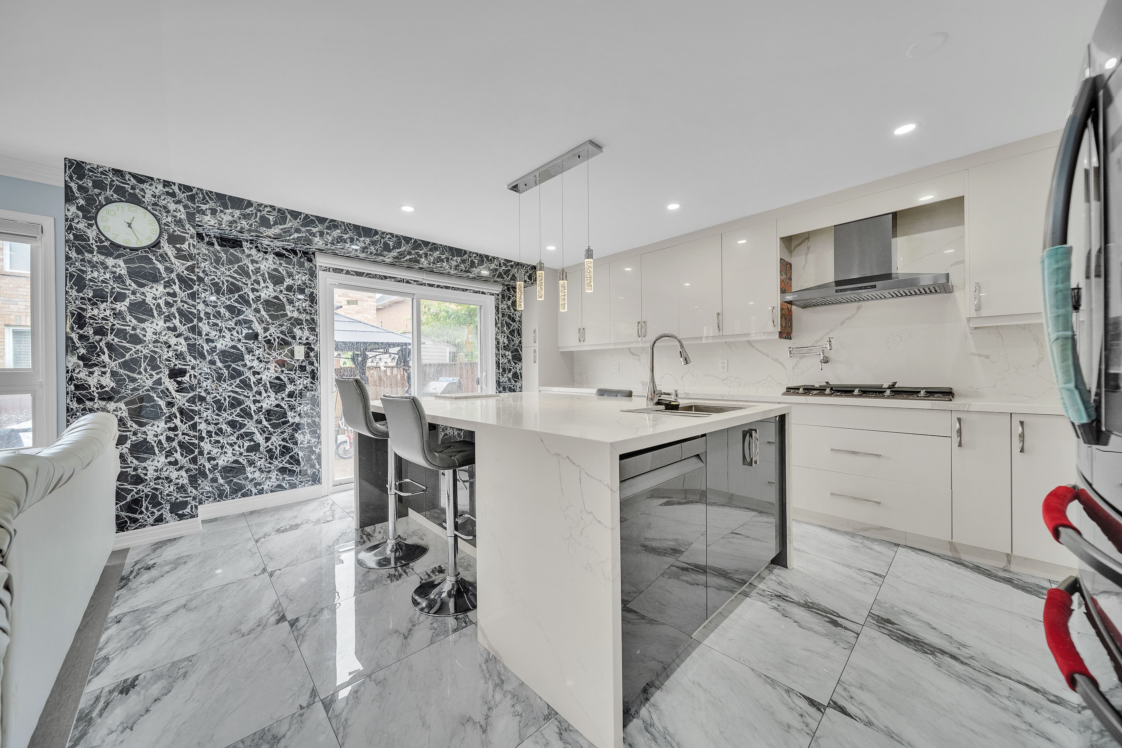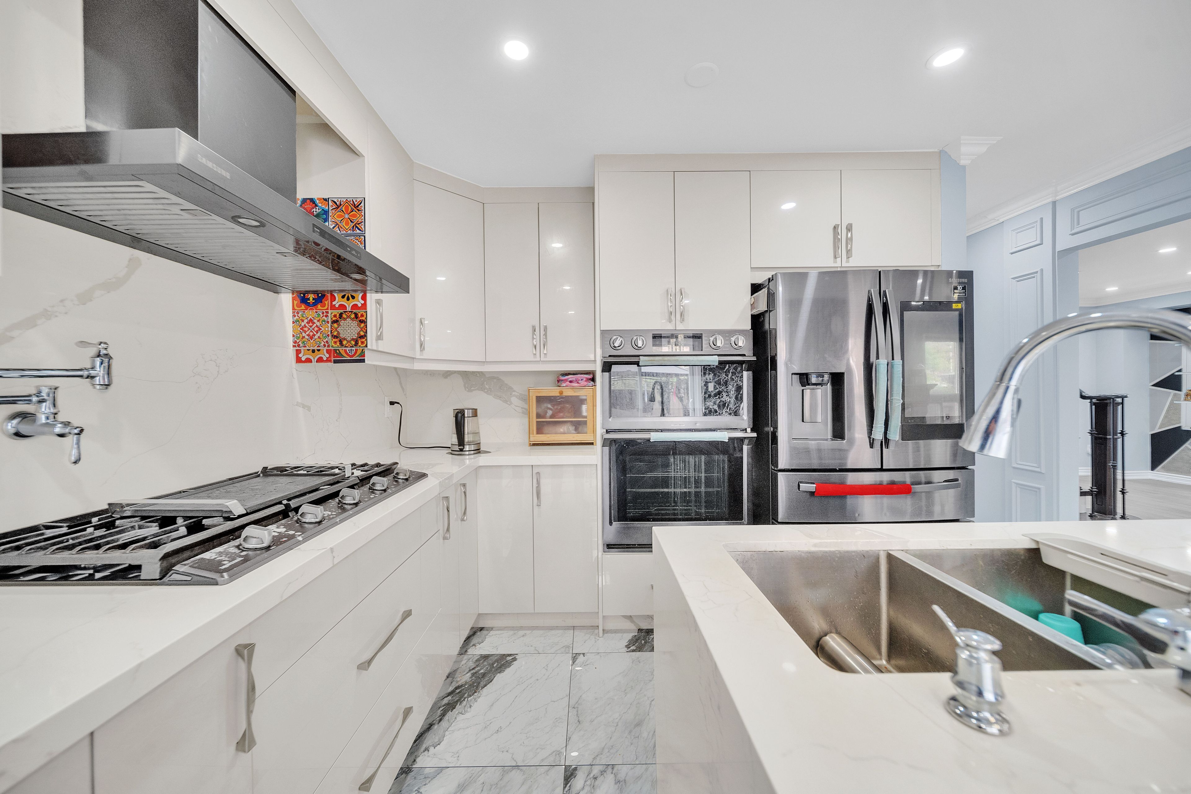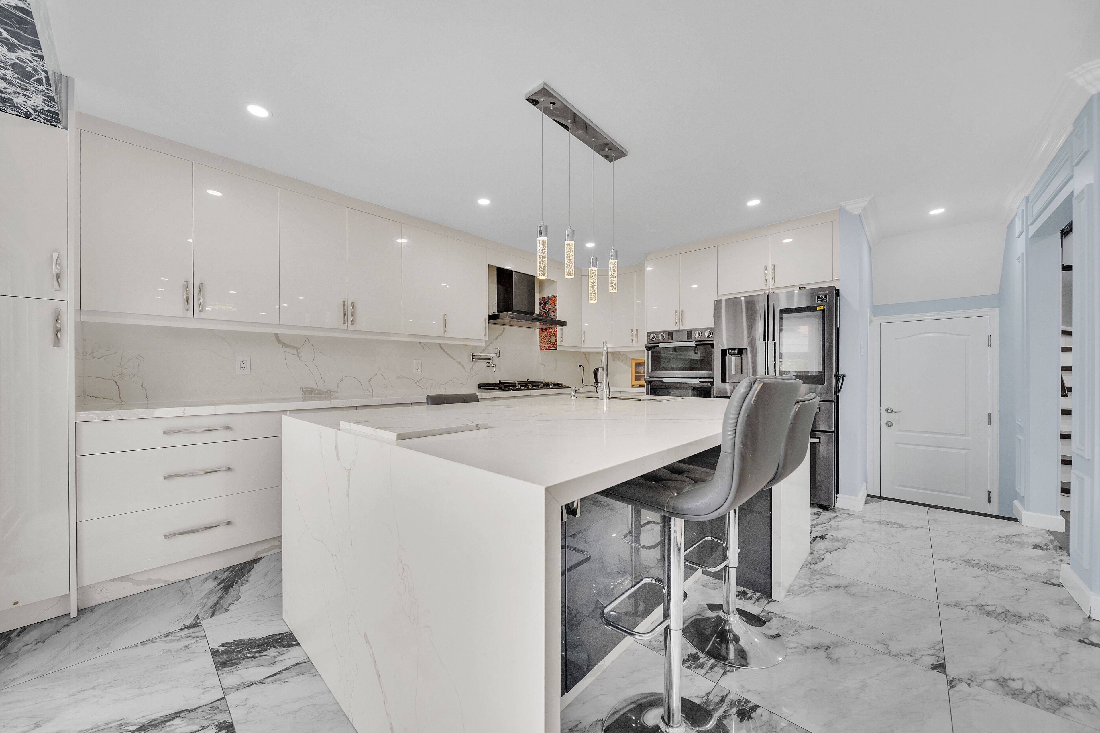 • Gourmet kitchen with ample counter space and modern finishes for cooking.