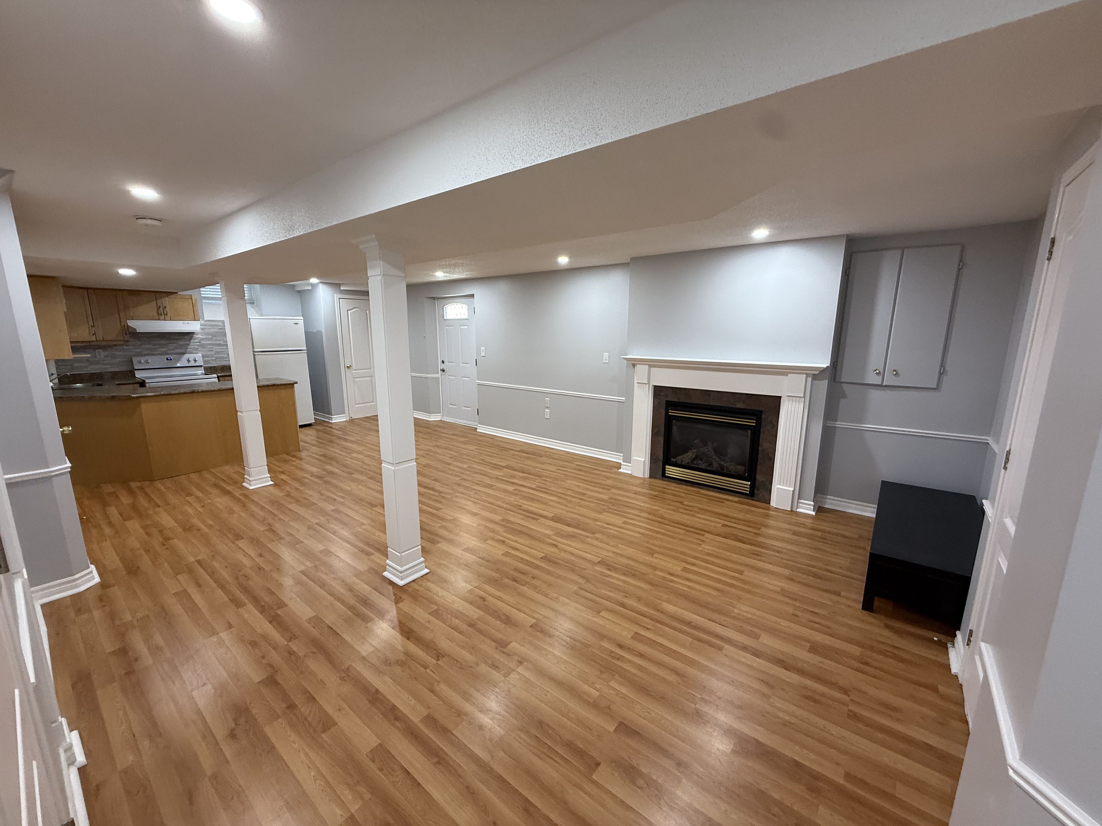 Open concept basement apartment with separate entrance on a quiet street backing onto open space. Light floors and larger windows let in a great amount of light in this clean and well maintained home. Kitchen has a lot of storage and a breakfast bar. Pot lights, wainscotting and engineered hardwood floors throughout main living/dining area add an elegant touch. Private washer/dryer and ample storage space throughout. Enjoy looking at the fireplace or working from home in your quiet den. **suitable for single tenant**