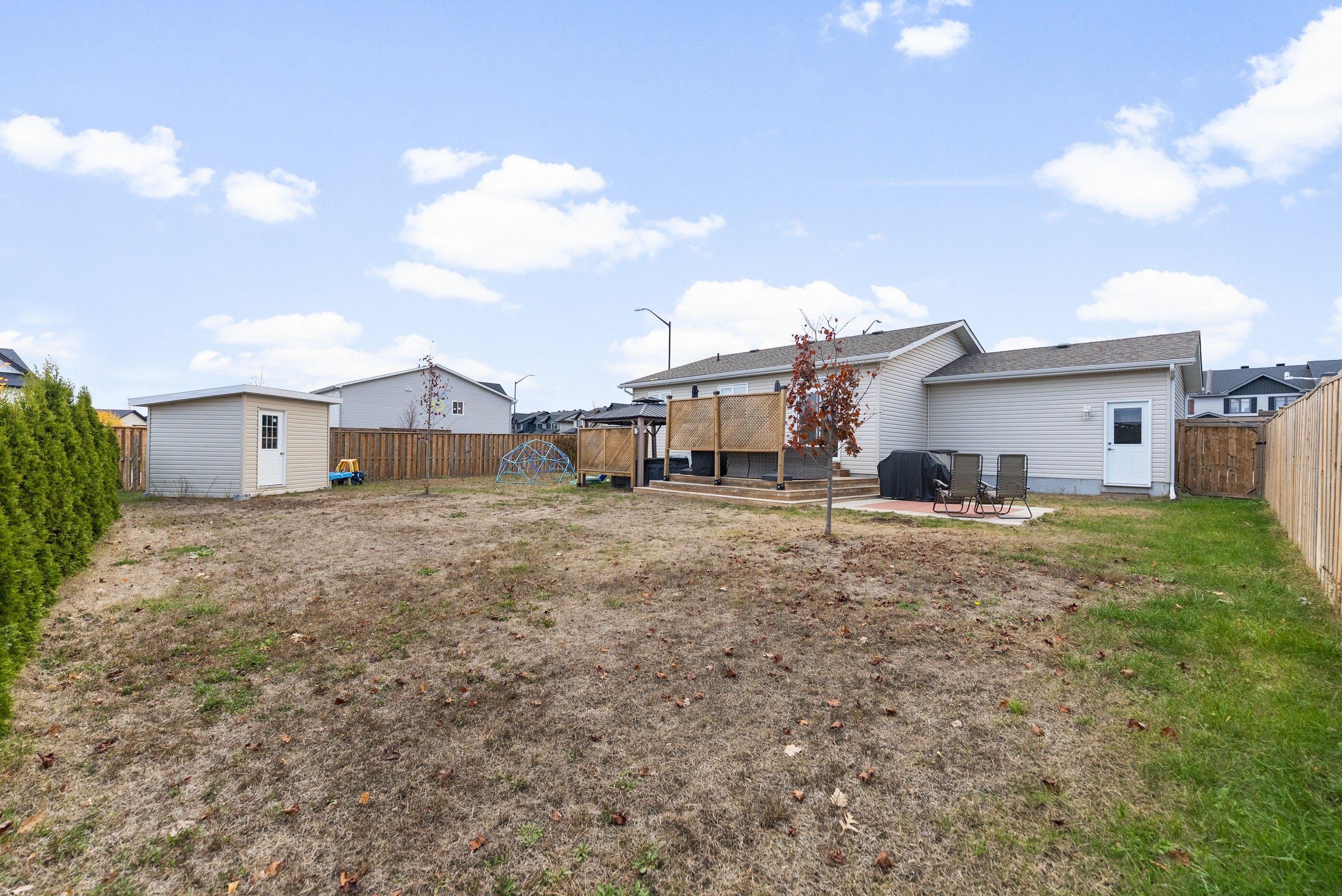 Bright and welcoming 3+1 bedroom, 2-bath home with an attached 2-car garage in a family-friendly petawawa neighbourhood. The main floor features an airy open-concept layout-living room, dining room, and kitchen-flowing through a patio door to the deck. Enjoy a private, fully fenced backyard with a hot tub under a gazebo and an automatic rain bird irrigation system. Three comfortable bedrooms and a full bath complete the main level. The finished lower level offers a spacious open-concept family room with a cozy gas fireplace, an additional bedroom, a second full bath, laundry, and great storage. Fridge, stove, dishwasher, washer, and dryer are included. Close to parks, schools, shopping, garrison petawawa, and outdoor recreation. Move-in ready-book your showing today!