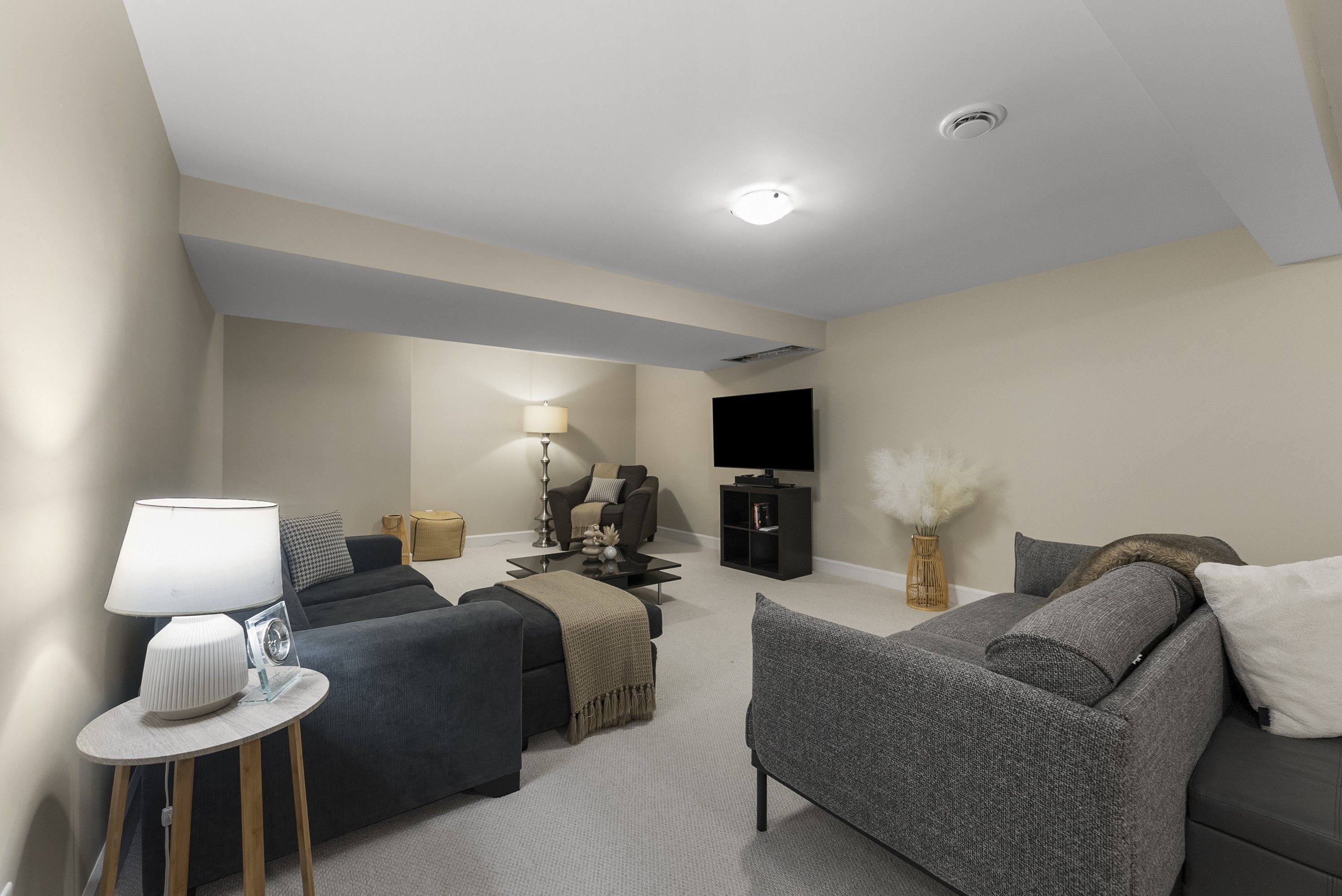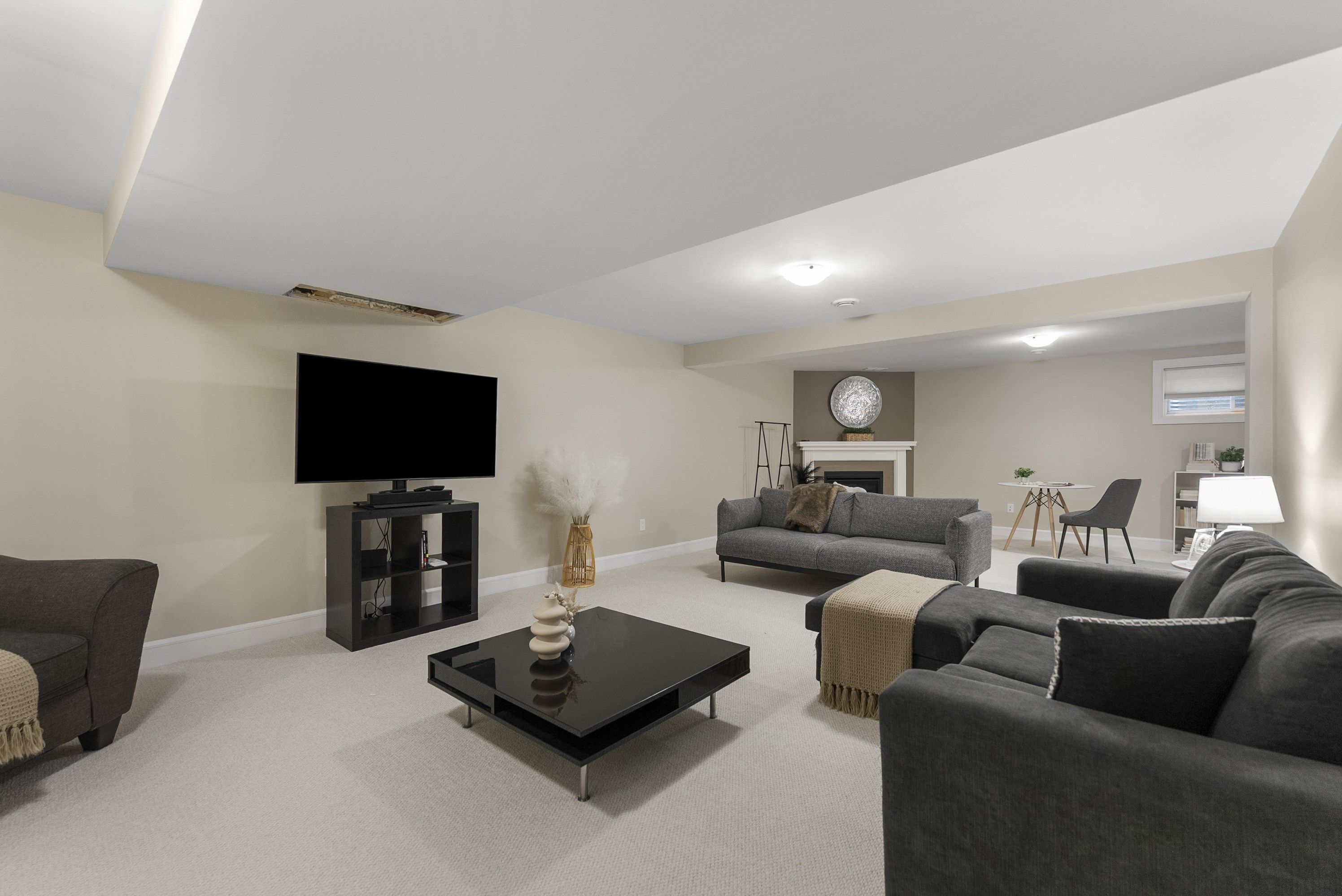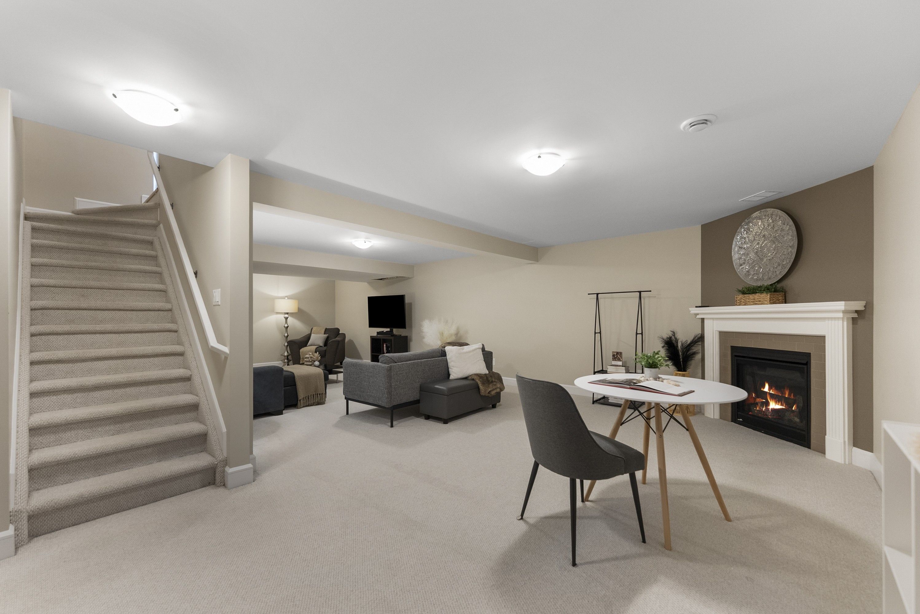 • Spacious lower level with family room, gas fireplace, and extra storage.
