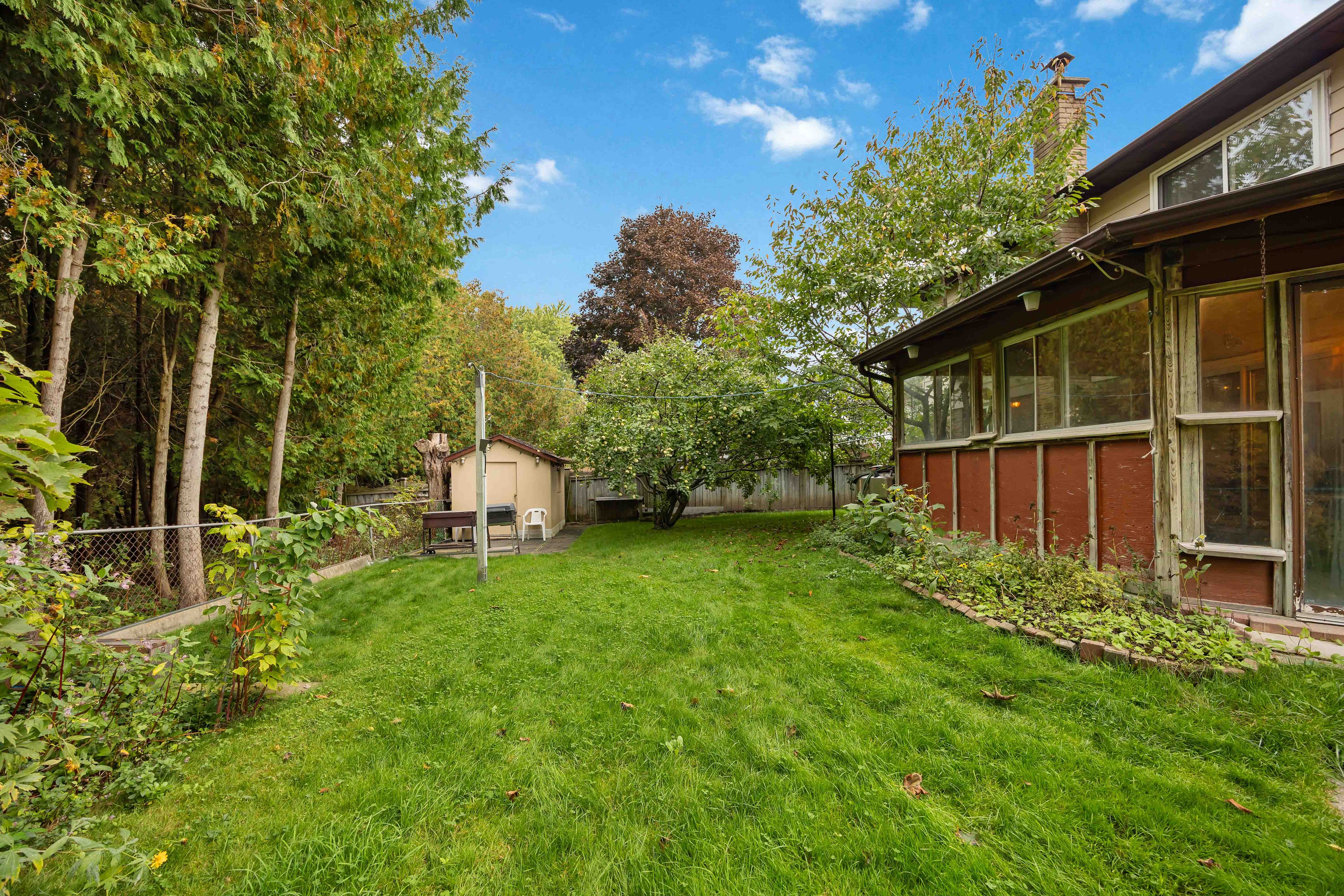 Nestled on a tranquil wooded ravine setting, this original-owner, all-brick home offers timeless appeal, quality craftsmanship, and an ideal layout for family living. The inviting main level features a bright front entry leading to elegant formal living and dining rooms with new laminate flooring and a large picture window showcasing the front gardens. The spacious eat-in kitchen includes a ceramic backsplash, pantry, and excellent cupboard and counter space-perfect for family meals and entertaining. Upstairs, discover three generous bedrooms, including a lovely primary retreat with a walk-in closet, updated 3-piece ensuite, and serene backyard views. The lower level offers a cozy family room with a built-in bookcase, wood-burning fireplace, and sliding glass walkout to a sunroom overlooking the private backyard. Enjoy easy access to the interlocking patio, mature gardens, and handy garden shed. The finished basement expands your living space with a large recreation room featuring a dry bar, a cold cellar, a utility/workshop area, and plenty of storage. A convenient laundry room with a separate side entrance completes this versatile home. Situated in a mature, family-friendly neighbourhood-just steps to parks, schools, transit, and all major amenities-this warm and welcoming property offers comfort, space, and nature right at your doorstep. Don't miss your chance to call 54 chester crescent home - where pride of ownership shines throughout!
