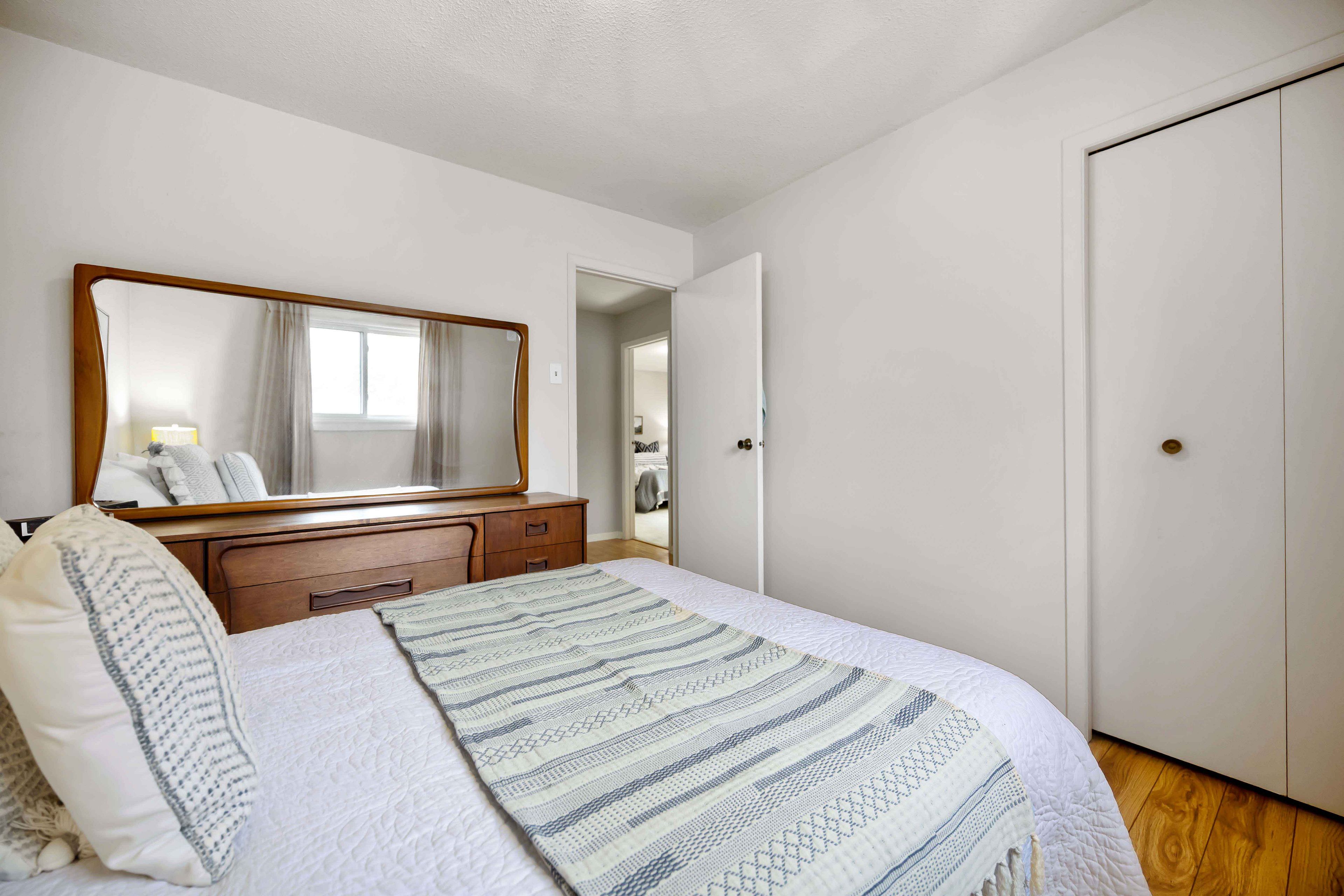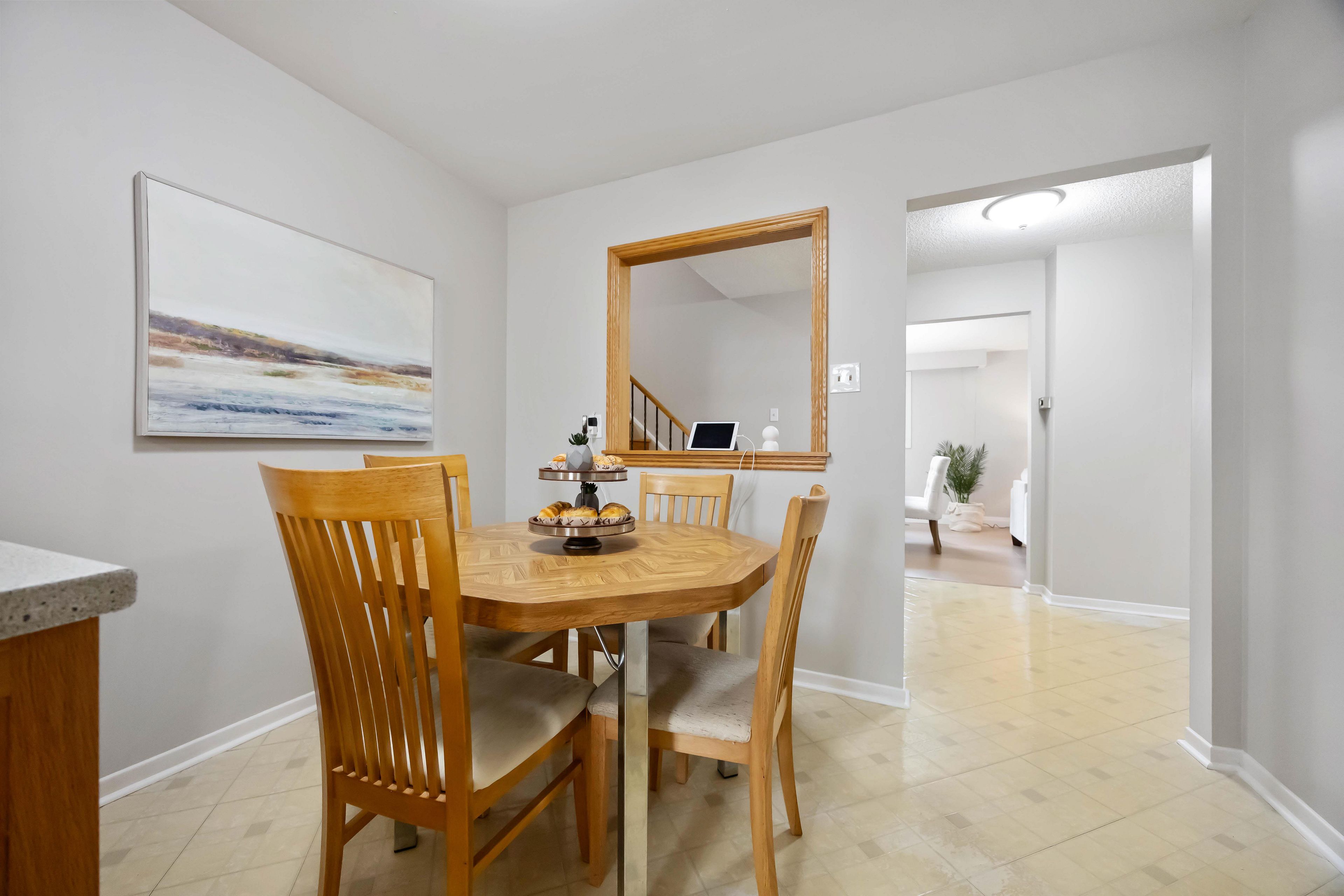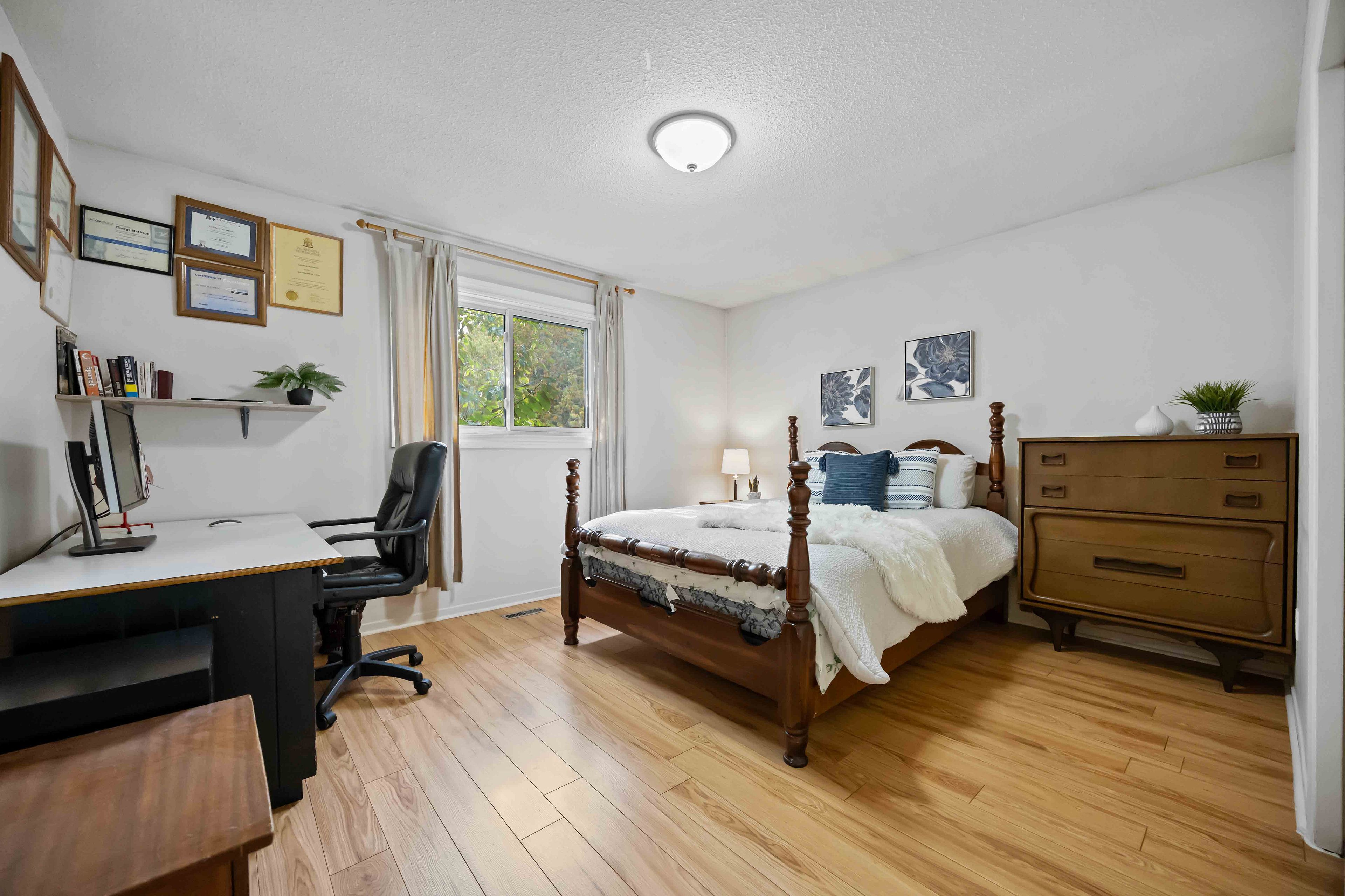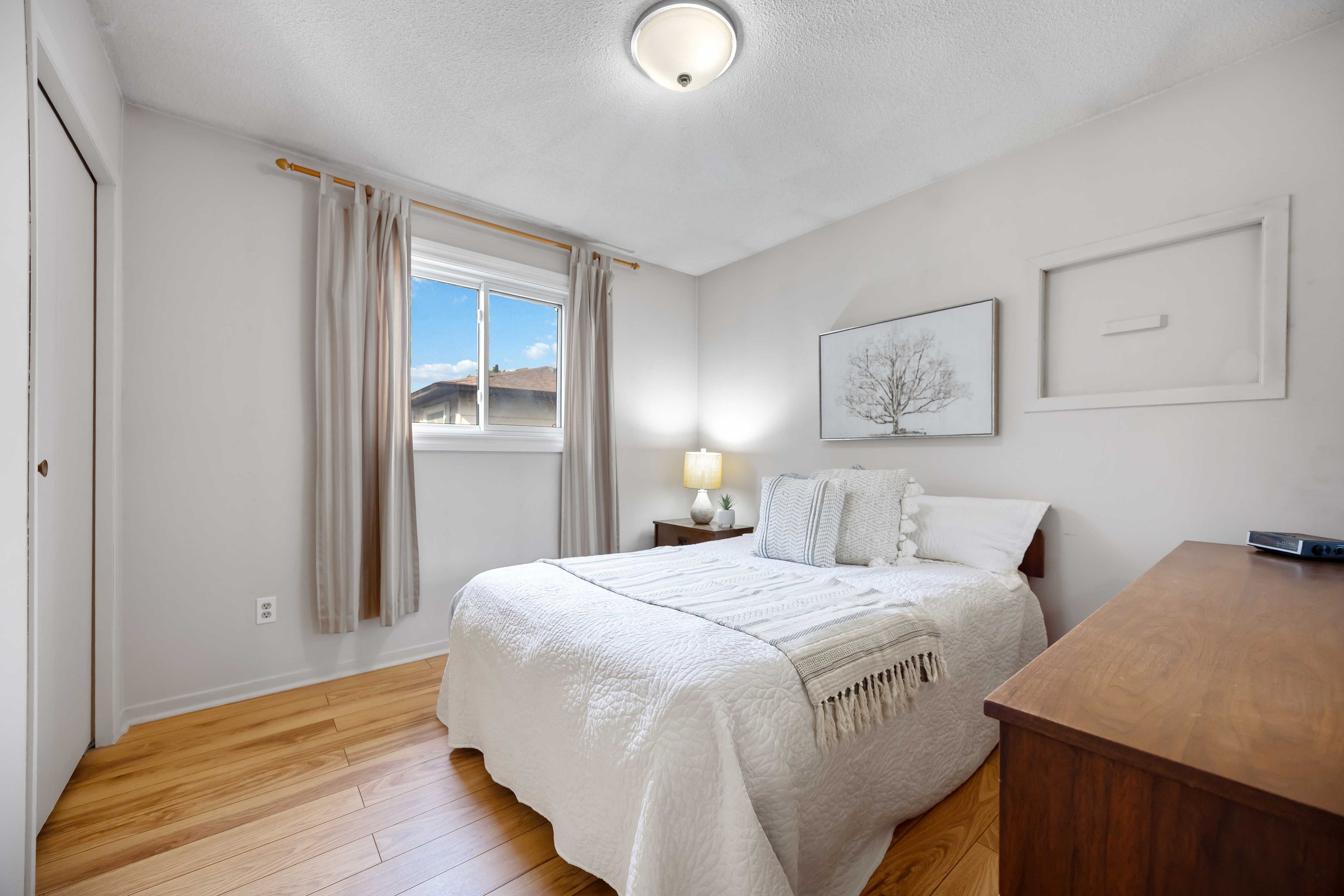 Nestled on a tranquil wooded ravine setting, this original-owner, all-brick home offers timeless appeal, quality craftsmanship, and an ideal layout for family living. The inviting main level features a bright front entry leading to elegant formal living and dining rooms with new laminate flooring and a large picture window showcasing the front gardens. The spacious eat-in kitchen includes a ceramic backsplash, pantry, and excellent cupboard and counter space-perfect for family meals and entertaining. Upstairs, discover three generous bedrooms, including a lovely primary retreat with a walk-in closet, updated 3-piece ensuite, and serene backyard views. The lower level offers a cozy family room with a built-in bookcase, wood-burning fireplace, and sliding glass walkout to a sunroom overlooking the private backyard. Enjoy easy access to the interlocking patio, mature gardens, and handy garden shed. The finished basement expands your living space with a large recreation room featuring a dry bar, a cold cellar, a utility/workshop area, and plenty of storage. A convenient laundry room with a separate side entrance completes this versatile home. Situated in a mature, family-friendly neighbourhood-just steps to parks, schools, transit, and all major amenities-this warm and welcoming property offers comfort, space, and nature right at your doorstep. Don't miss your chance to call 54 chester crescent home - where pride of ownership shines throughout!
