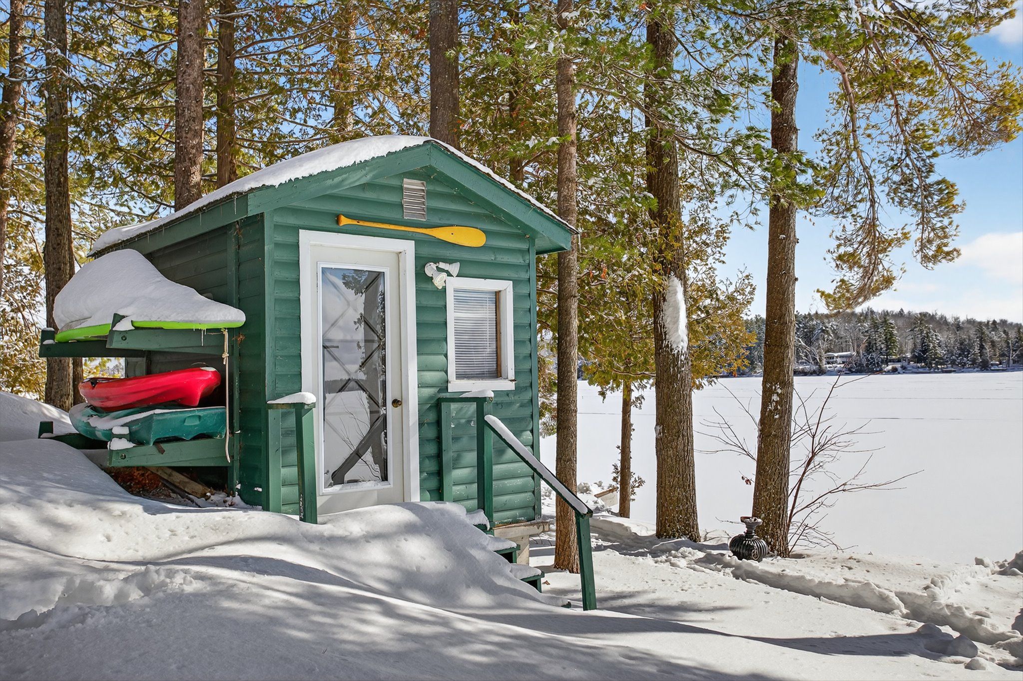 Classy crystal lake. This turn-key, custom icf 4-bedroom, 3-bathroom waterfront home was completed in 2007 and may just have everything you're looking for. Fully winterized and furnished with top-tier products throughout its 2500 sq ft of living space. A fabulous 0. 64 acre lot with exceptional privacy and directly across the road is a private 67 acre forest to explore. A gently sloping pathway leads to a fabulous waterfront setting with a touch of hard-pack sandy beach - yet deep diving off the dock and 105 feet of owned shoreline w/a lovely lakeside change room w/power. Recent upgrades include; landscape stonework, a concrete woodfired pizza oven, an outdoor salt water hot tub, a 5000 lb steel boat lift, a pwc lift, a new dock, a 2-tier sun deck, and custom wood furniture by artemano. Big lake views with a full se exposure. All season sunrises, spectacular moonscapes, and 7 pm sun on the dock in the summer- yet only steps away from shade. The open-concept kitchen w/corian countertops looks directly into an expansive dining and living room setting. Soaring 16ft cathedral ceilings and a natural stone, wood-burning fireplace really set the tone for this spectacular build which creates lots of natural light. Crystal is a spring-fed rock & pine glacial lake with low cottage density. Explore its many bays and over 30 kms of stunning shoreline. Excellent fishing. Easy access to the 5 points crown land multi-use recreational trail system. On water marina. Kinmount and its amenities are 30 mins away. Around 45 mins to bobcaygeon/fenelon falls/minden. 1 hr to sir sam's ski hill. Good cell and internet options. 2. 5 hrs from the gta. This stellar all-inclusive property has too many features to list here. The outstanding attention to detail and the pride of ownership is evident. Above average privacy on a dead-end year-round municipal road that includes a detached garage with an upstairs 3-season games room. See the virtual tour.