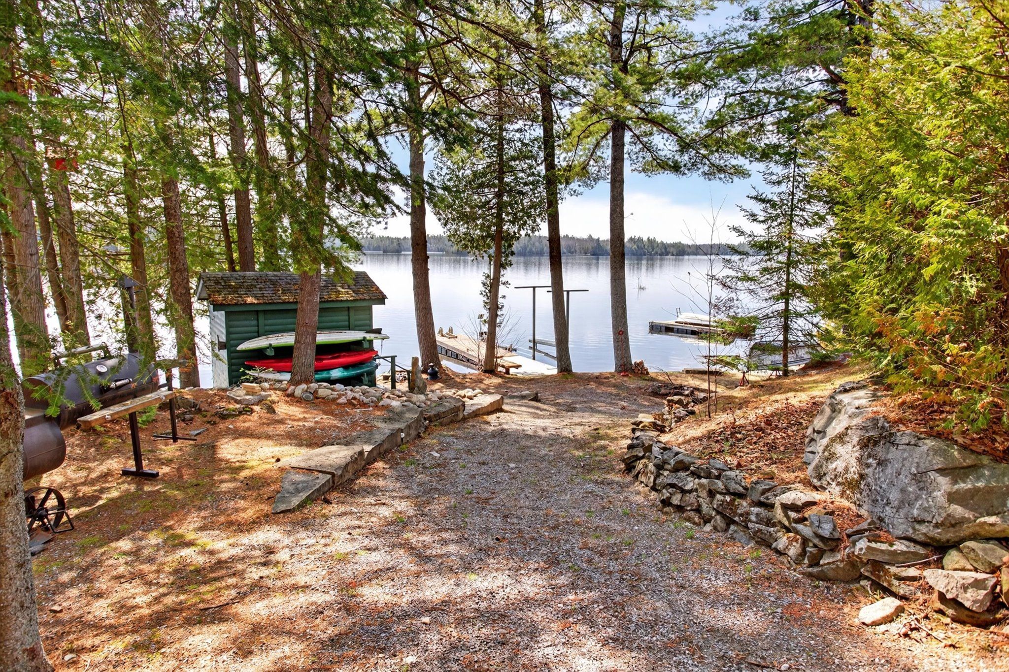 Classy crystal lake. This turn-key, custom icf 4-bedroom, 3-bathroom waterfront home was completed in 2007 and may just have everything you're looking for. Fully winterized and furnished with top-tier products throughout its 2500 sq ft of living space. A fabulous 0. 64 acre lot with exceptional privacy and directly across the road is a private 67 acre forest to explore. A gently sloping pathway leads to a fabulous waterfront setting with a touch of hard-pack sandy beach - yet deep diving off the dock and 105 feet of owned shoreline w/a lovely lakeside change room w/power. Recent upgrades include; landscape stonework, a concrete woodfired pizza oven, an outdoor salt water hot tub, a 5000 lb steel boat lift, a pwc lift, a new dock, a 2-tier sun deck, and custom wood furniture by artemano. Big lake views with a full se exposure. All season sunrises, spectacular moonscapes, and 7 pm sun on the dock in the summer- yet only steps away from shade. The open-concept kitchen w/corian countertops looks directly into an expansive dining and living room setting. Soaring 16ft cathedral ceilings and a natural stone, wood-burning fireplace really set the tone for this spectacular build which creates lots of natural light. Crystal is a spring-fed rock & pine glacial lake with low cottage density. Explore its many bays and over 30 kms of stunning shoreline. Excellent fishing. Easy access to the 5 points crown land multi-use recreational trail system. On water marina. Kinmount and its amenities are 30 mins away. Around 45 mins to bobcaygeon/fenelon falls/minden. 1 hr to sir sam's ski hill. Good cell and internet options. 2. 5 hrs from the gta. This stellar all-inclusive property has too many features to list here. The outstanding attention to detail and the pride of ownership is evident. Above average privacy on a dead-end year-round municipal road that includes a detached garage with an upstairs 3-season games room. See the virtual tour.
