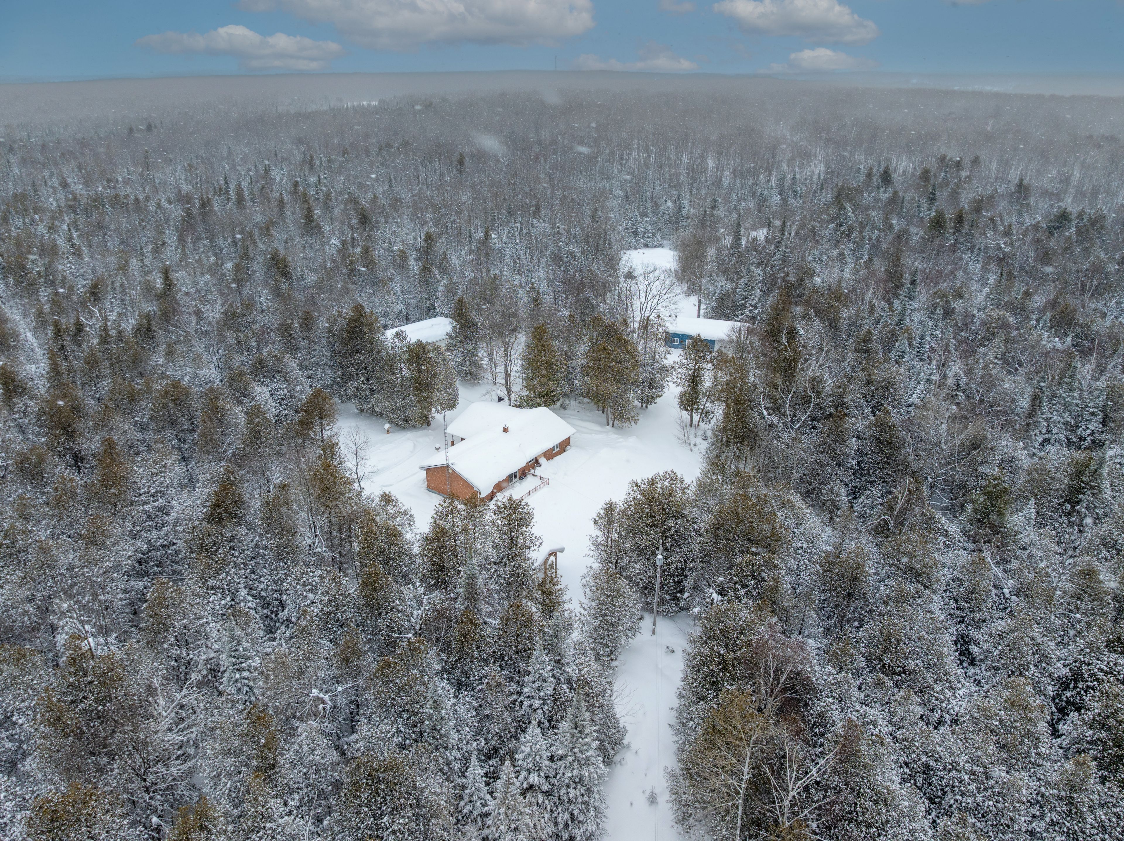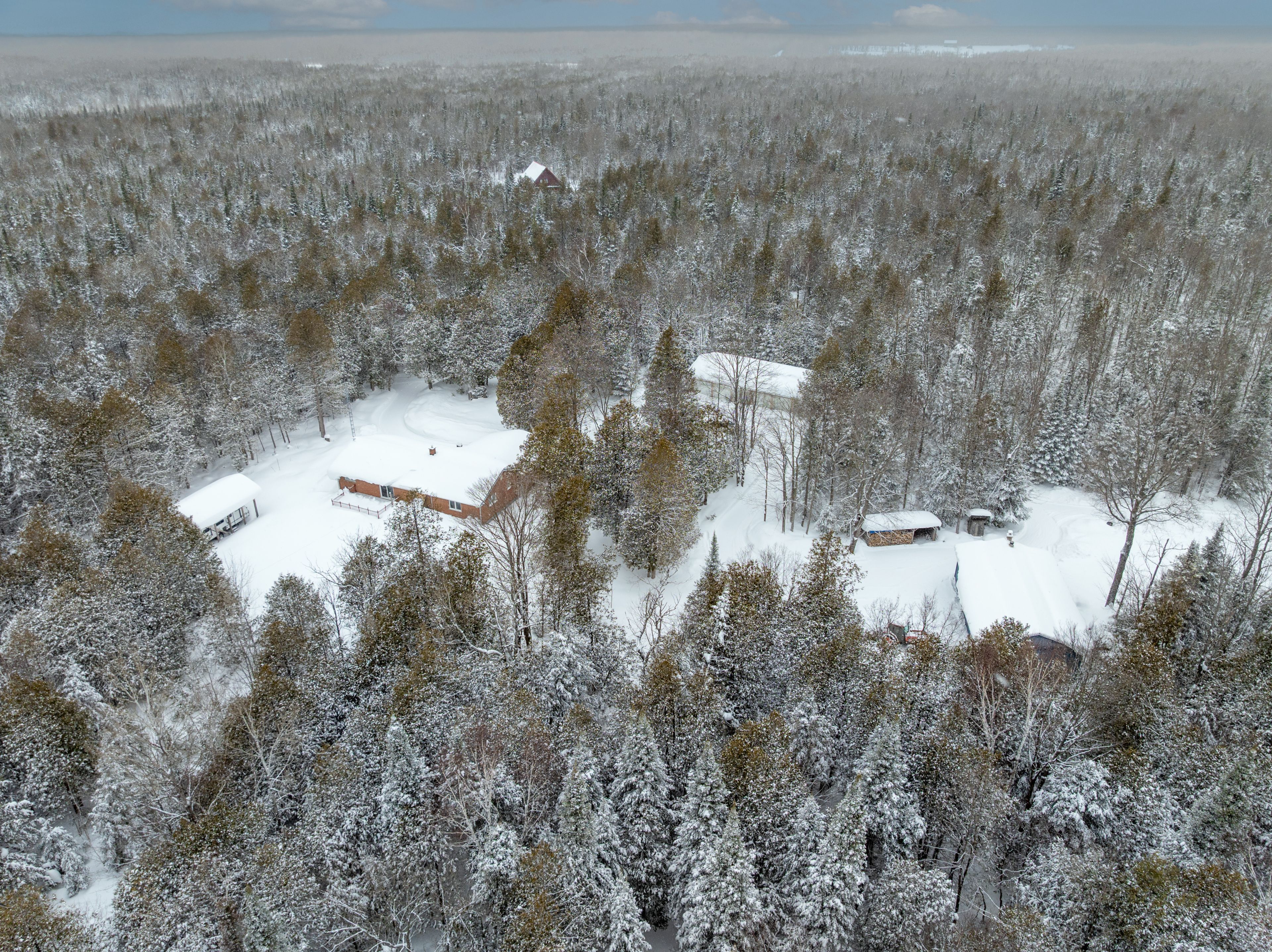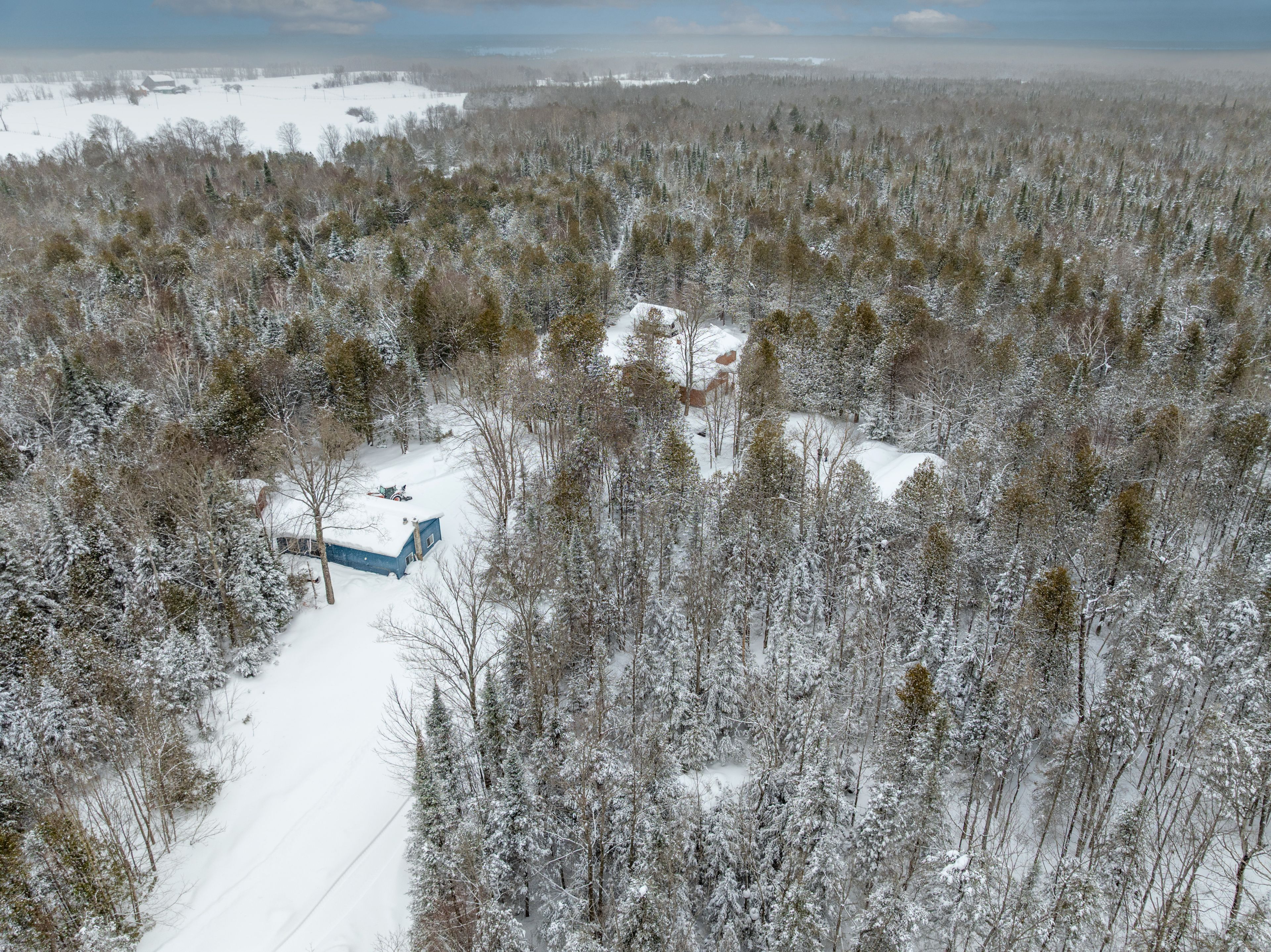 Set on an impressive 50-acre property just 12 minutes from wiarton, this versatile bungalow offers the perfect blend of rural privacy, natural beauty, and functional outbuildings. A long, fully treed laneway welcomes you in, creating a peaceful approach to the home and setting the tone for the quiet country lifestyle that awaits. With an extensive trail system winding throughout the property and a picturesque pond to enjoy, the land invites year-round exploration, recreation, and relaxation. The home features a comfortable bungalow layout and includes an attached two-car garage for everyday convenience. For those needing additional storage or workspace, the property also boasts a 59' x 20' detached six-car garage along with a 42' x 23' heated shop complete with water service. In an area known for all-season outdoor sports and hobbies, the extensive infrastructure here will definitely accommodate all of your vehicles and equipment. Outdoor enthusiasts and gardeners will appreciate the thoughtfully developed grounds. Approximately 30 elderberry bushes have been planted, complemented by raised garden beds ready for seasonal harvests. A greenhouse helps extend the growing season, while a traditional root cellar offers the perfect space for storing homegrown produce year-round. Comfort and efficiency are supported by three heating options: a propane furnace, a heat pump, and a wood stove, providing flexibility and peace of mind in every season. With expansive acreage, mature forest, established trails, and versatile infrastructure, this property presents a rare opportunity to enjoy country living with exceptional space to live, work, and explore.
