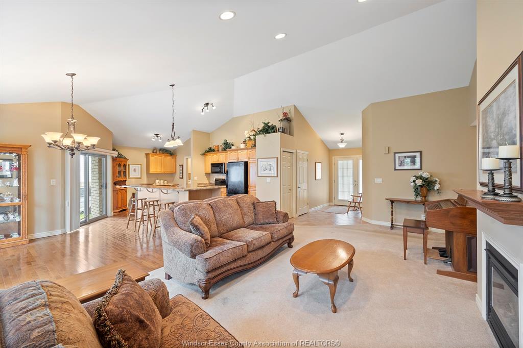 • Bright living/dining area with gas fireplace and surround sound.