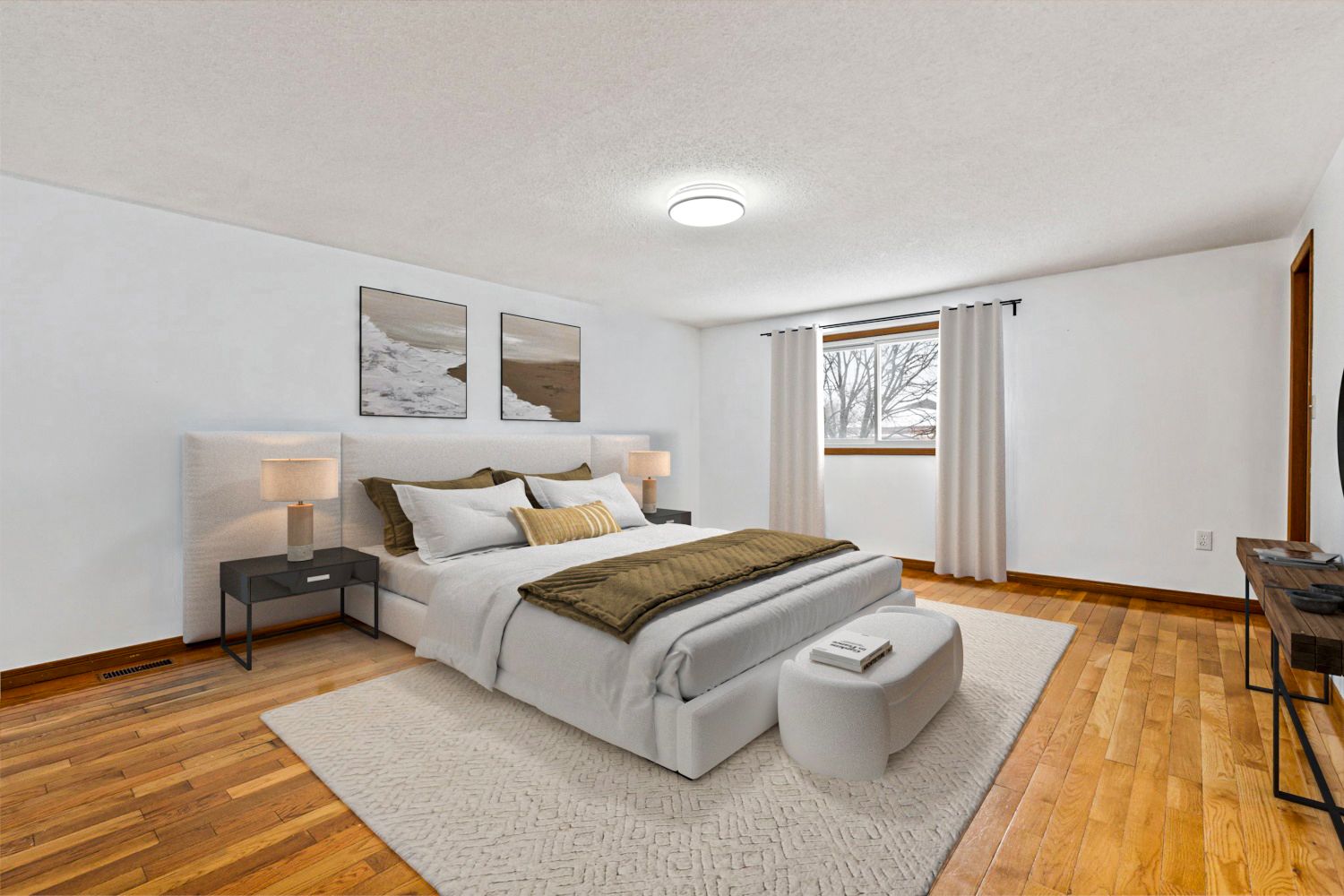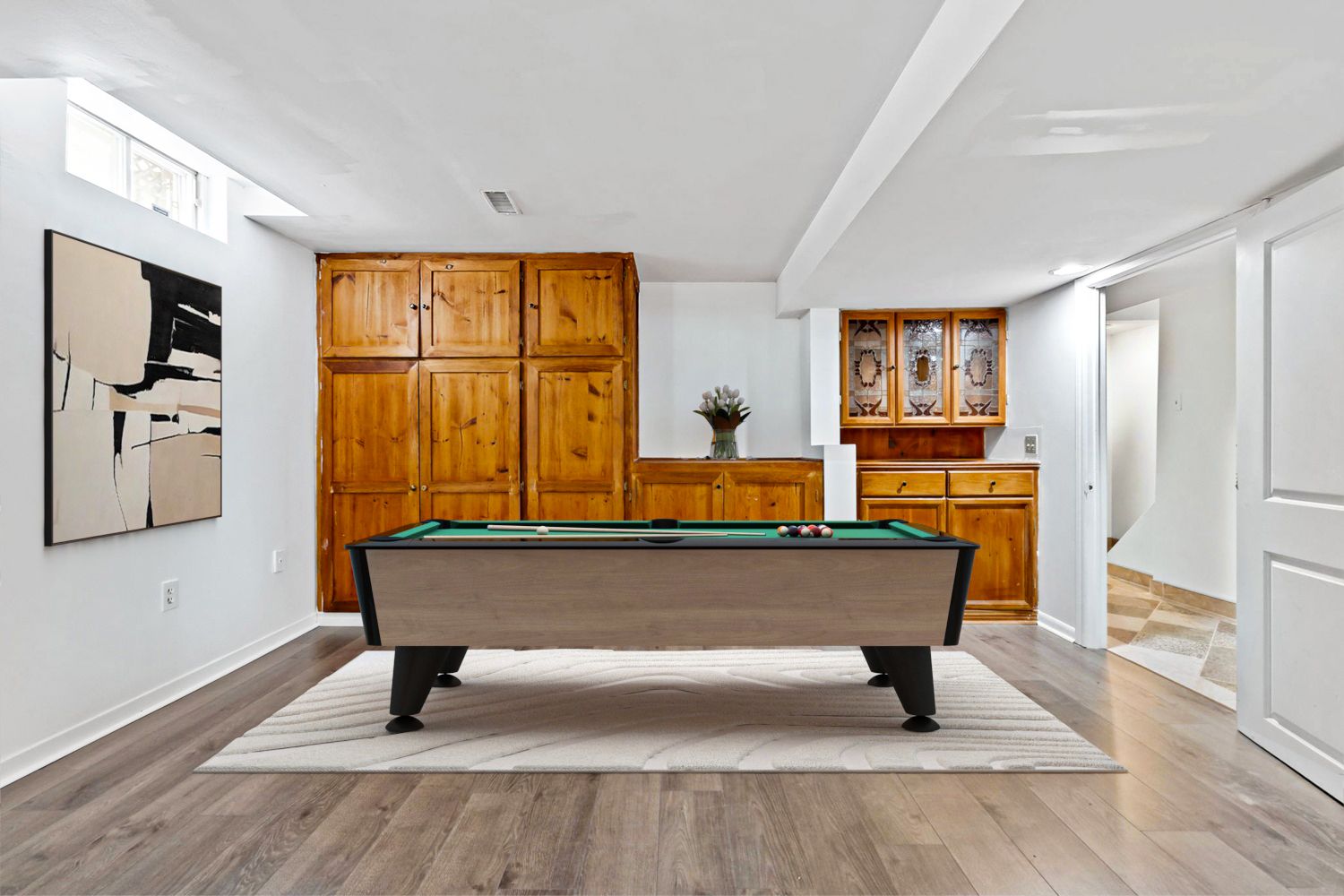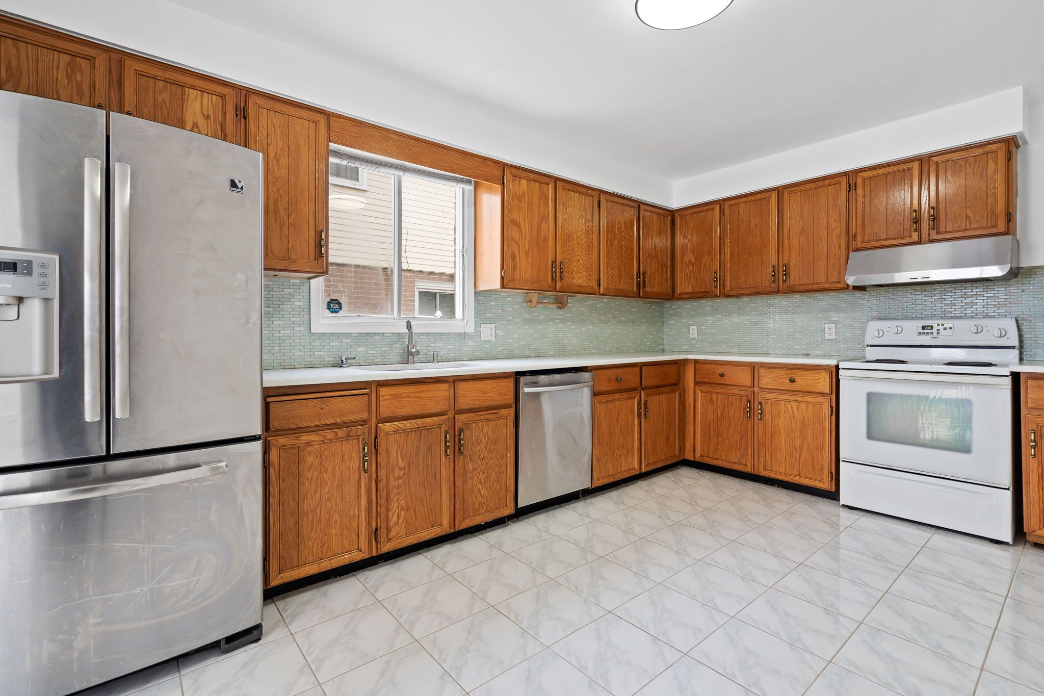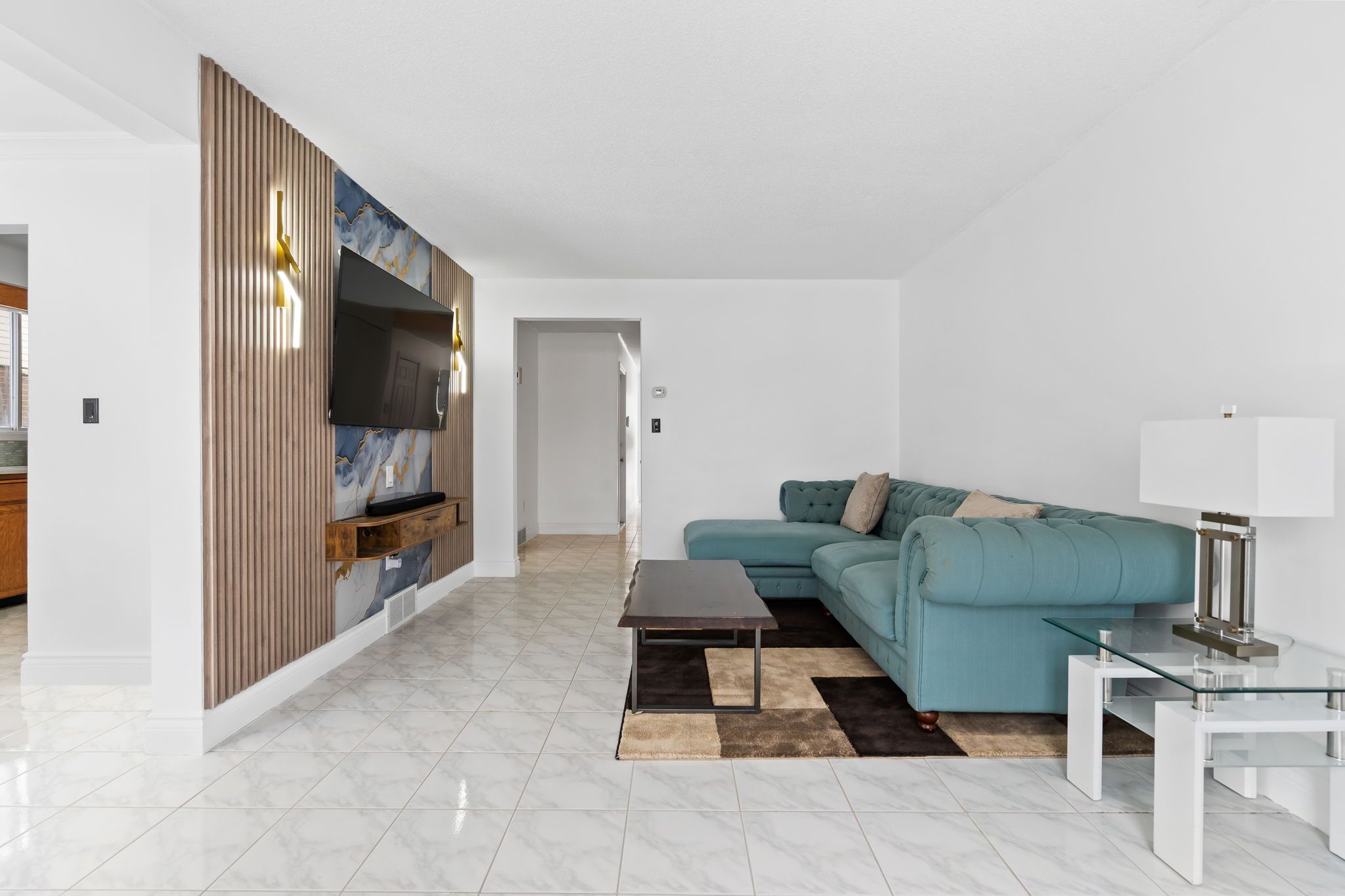 • Bright living area with polished tile flooring and modern features.