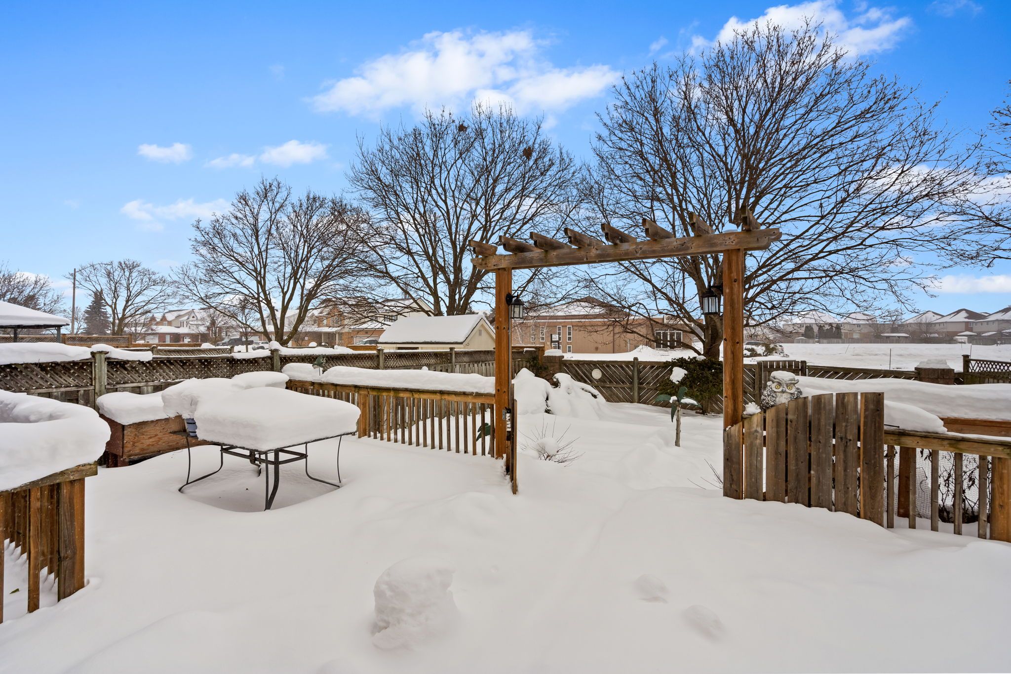 • Spacious fenced-in backyard with no rear neighbours for privacy.
